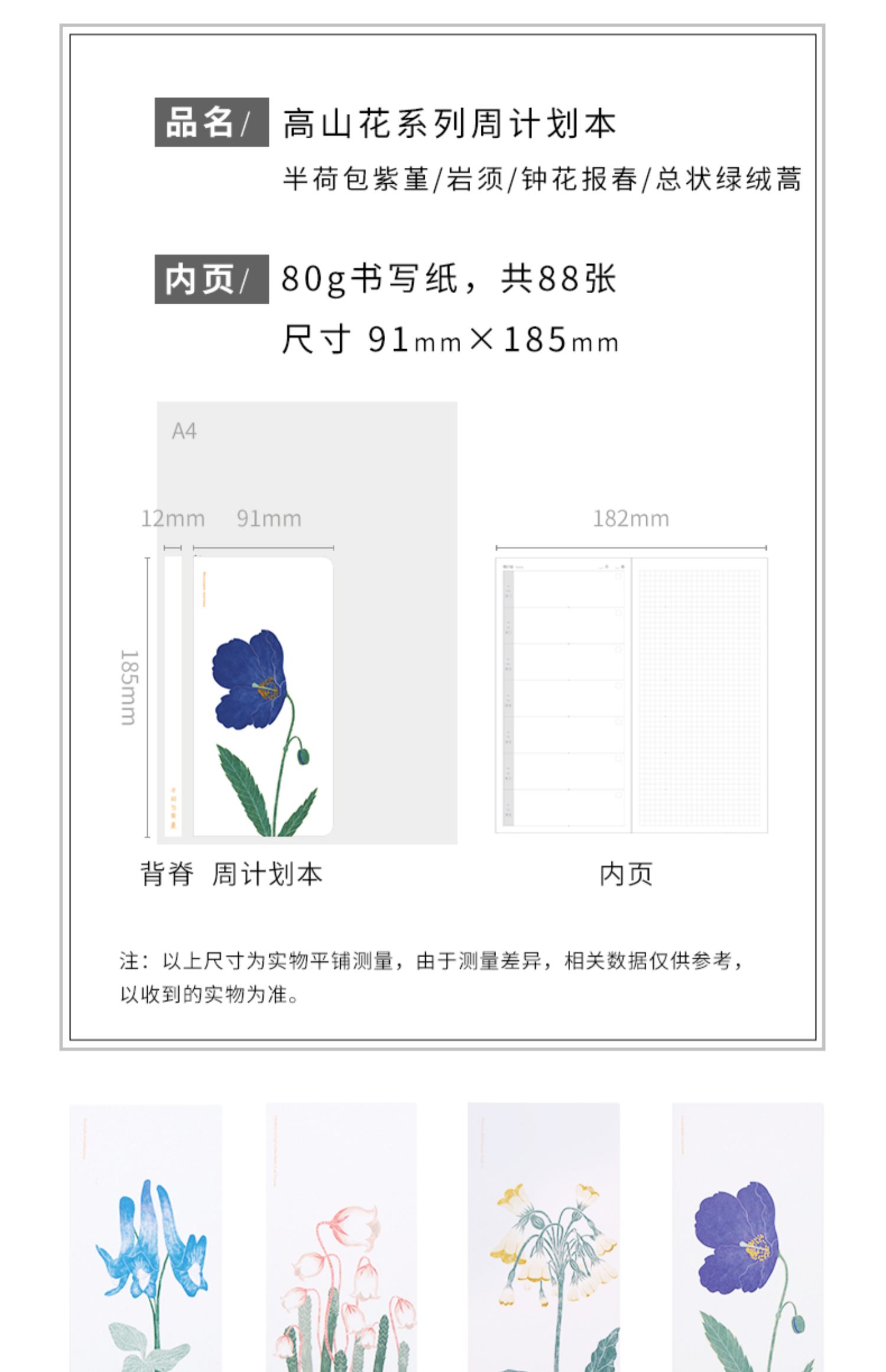 【kinbor】高山花系列日程本,记录你旅行工作的点点滴滴,让你充满回忆的气氛,现价秒杀8元包邮到家~!