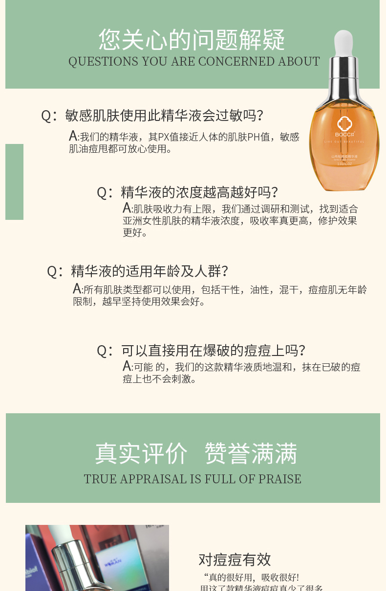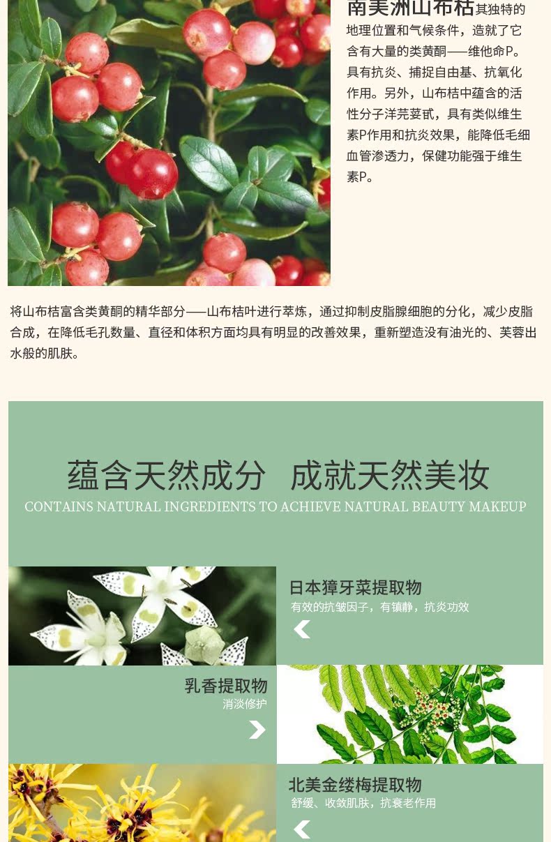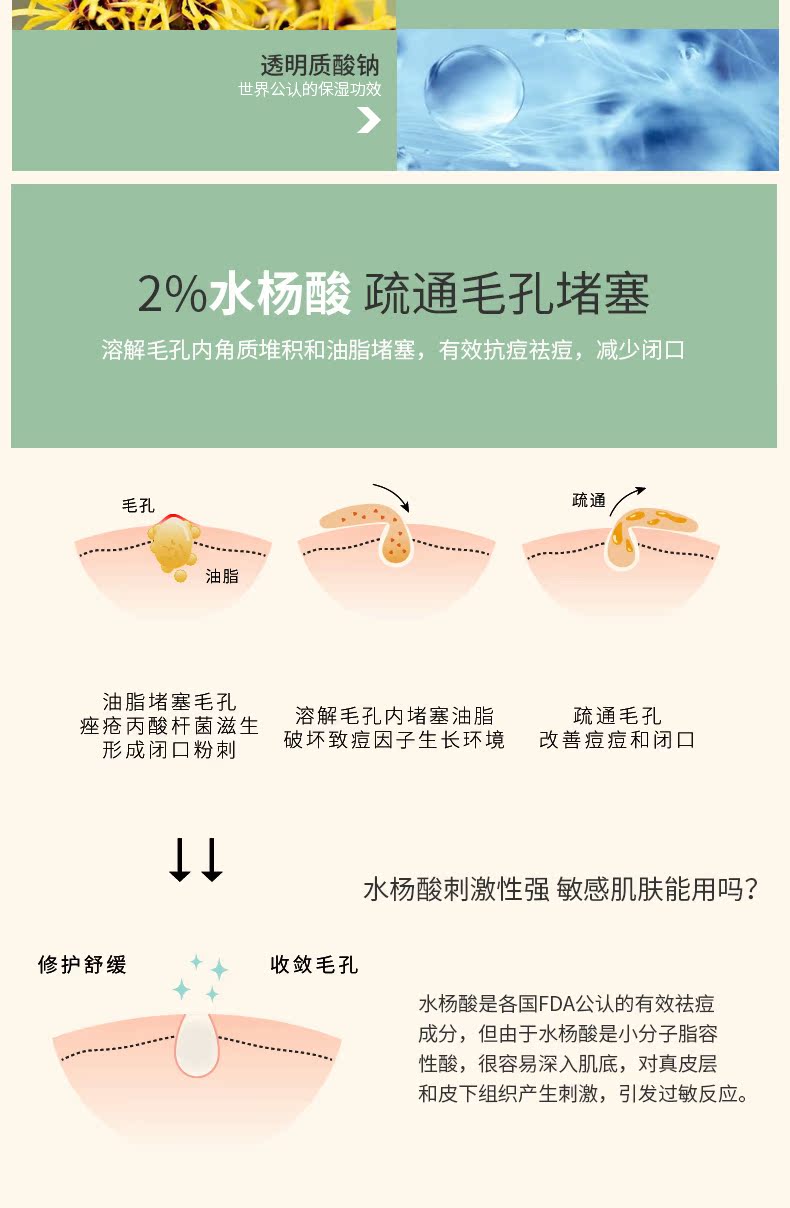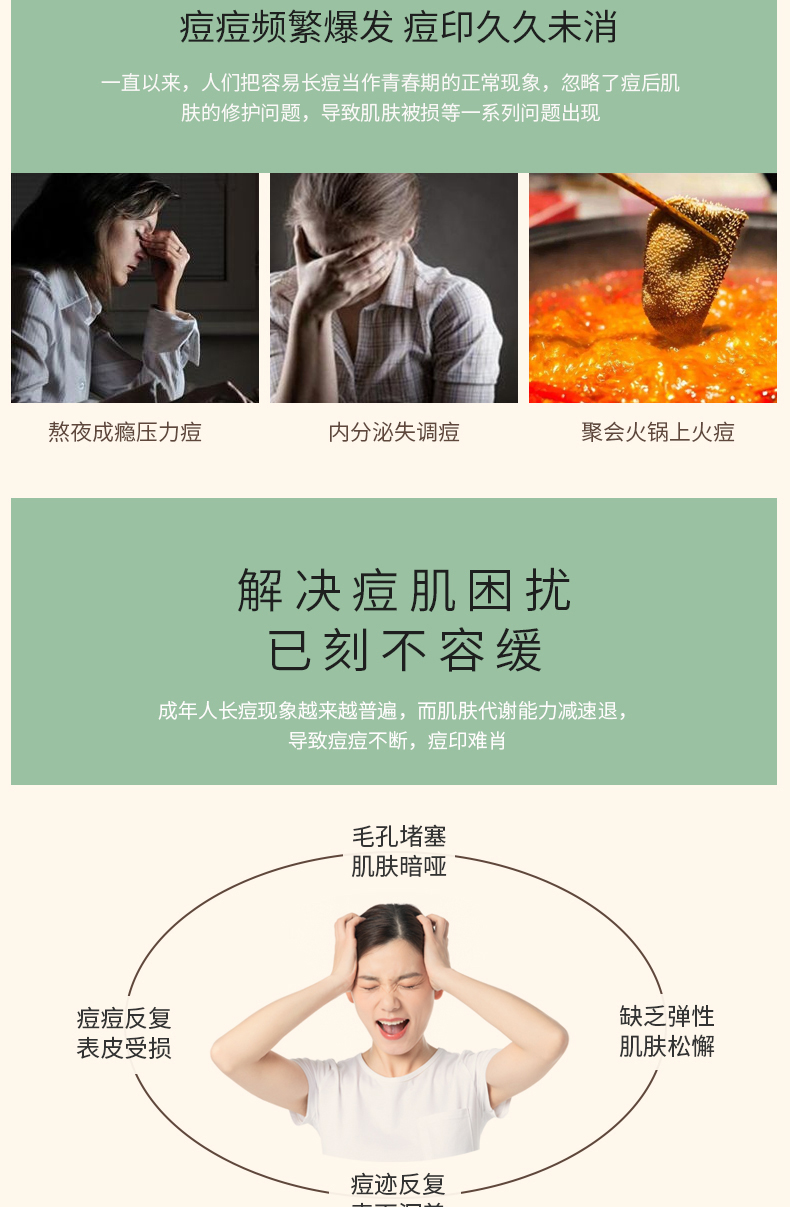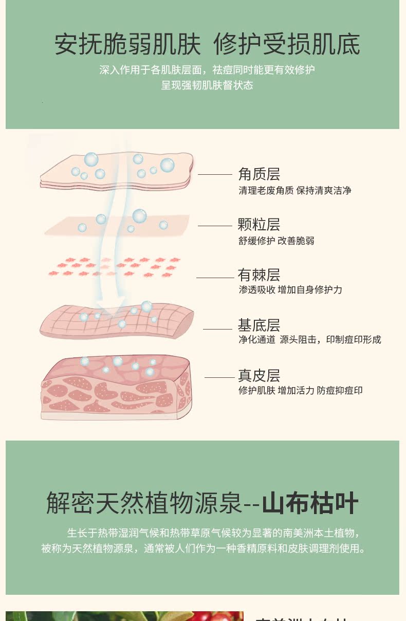 修护皮肤屏障功能增强皮肤代谢能力,萃取高浓度植物原液,层层深润肌底均衡水油,快速淡痘印,深入作用于各肌肤层面,祛痘同时能更有效修护,呈现强韧肌肤的状态。