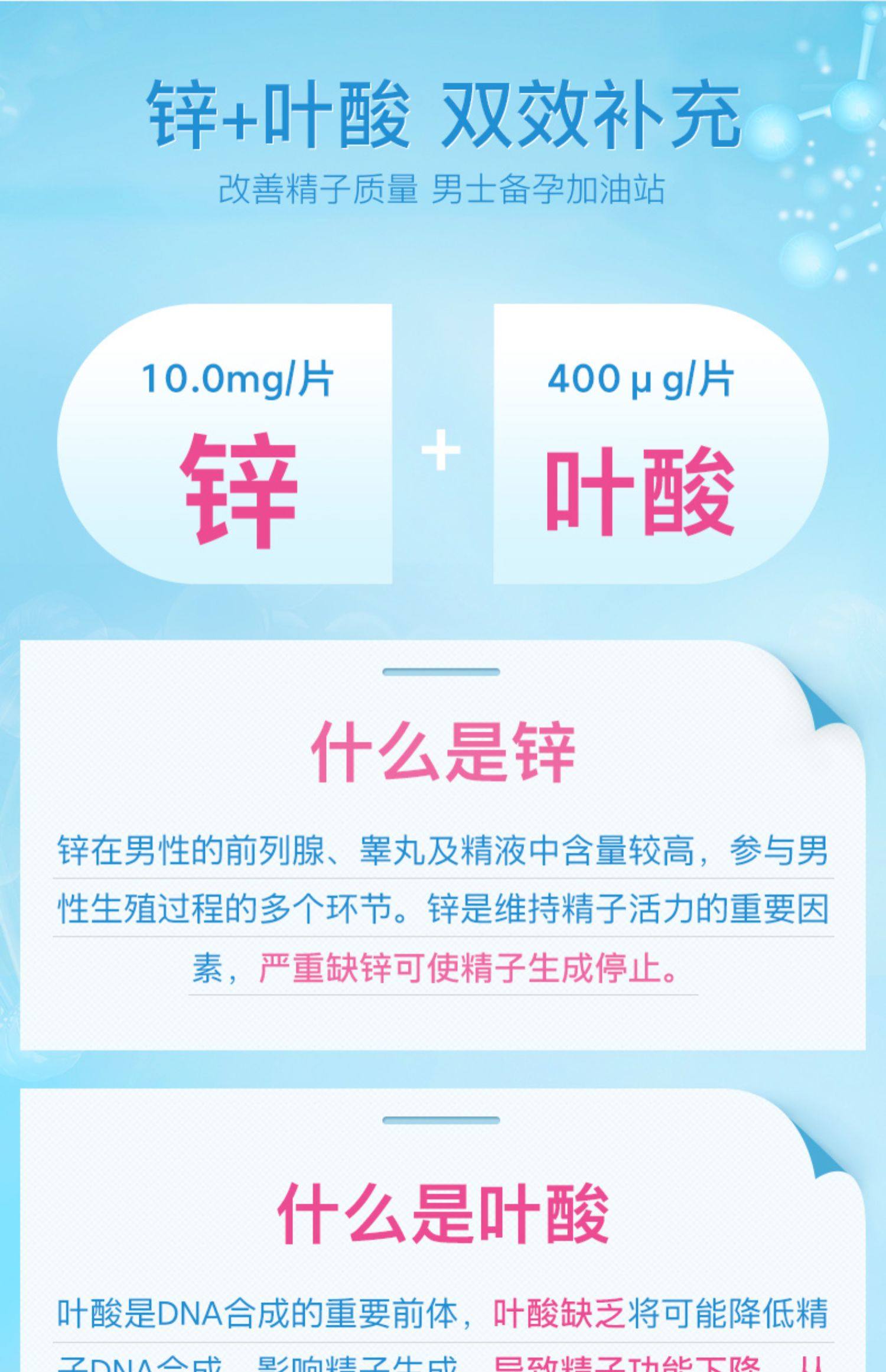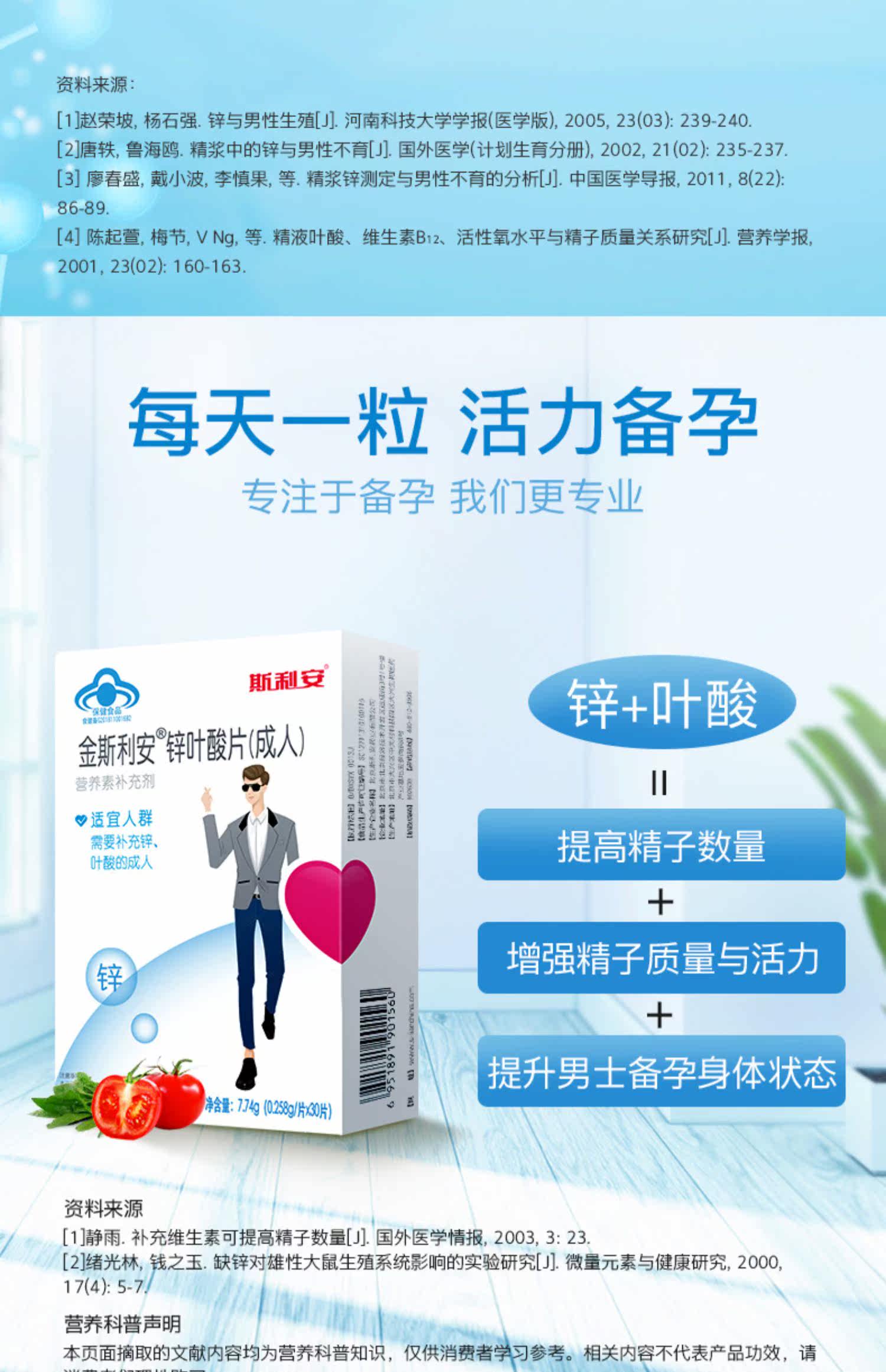 提高精力,活力备孕,金斯利安锌叶酸片,男性备孕专用补充剂