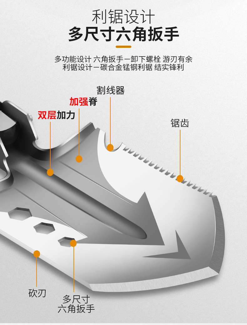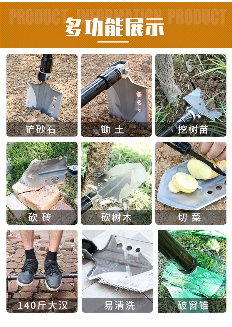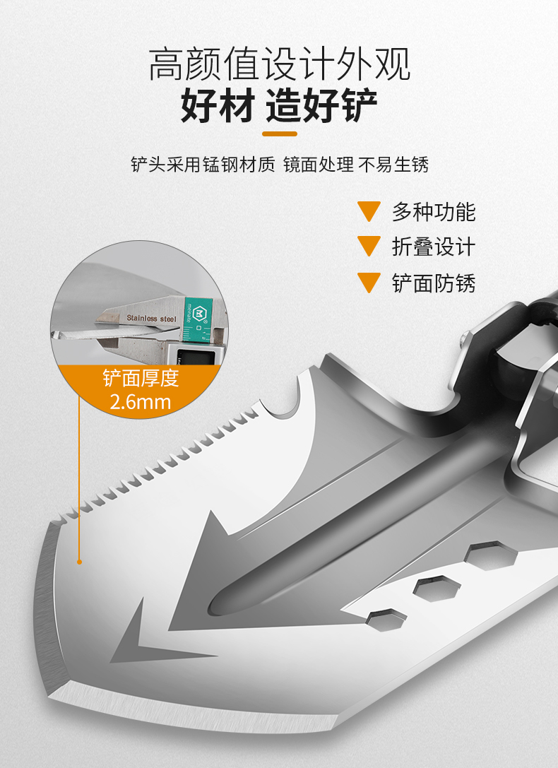 高硬度特种钢户外小手铲,小巧,户外便携,,侧面开刃,旋转变身,轻松实现功能转换,可拆卸,可折叠,收纳方便,随身携带,多功能设计!