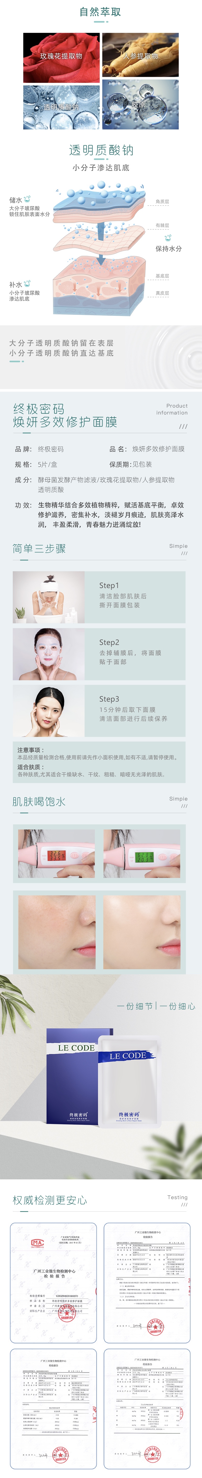 【限时秒杀】一盒五片装,焕颜多效修复面膜,富含生物精华,快速渗达基地肌肤,令肌肤充满弹性,水嫩透亮,淡退岁月痕迹,让你做一个靓丽女神!