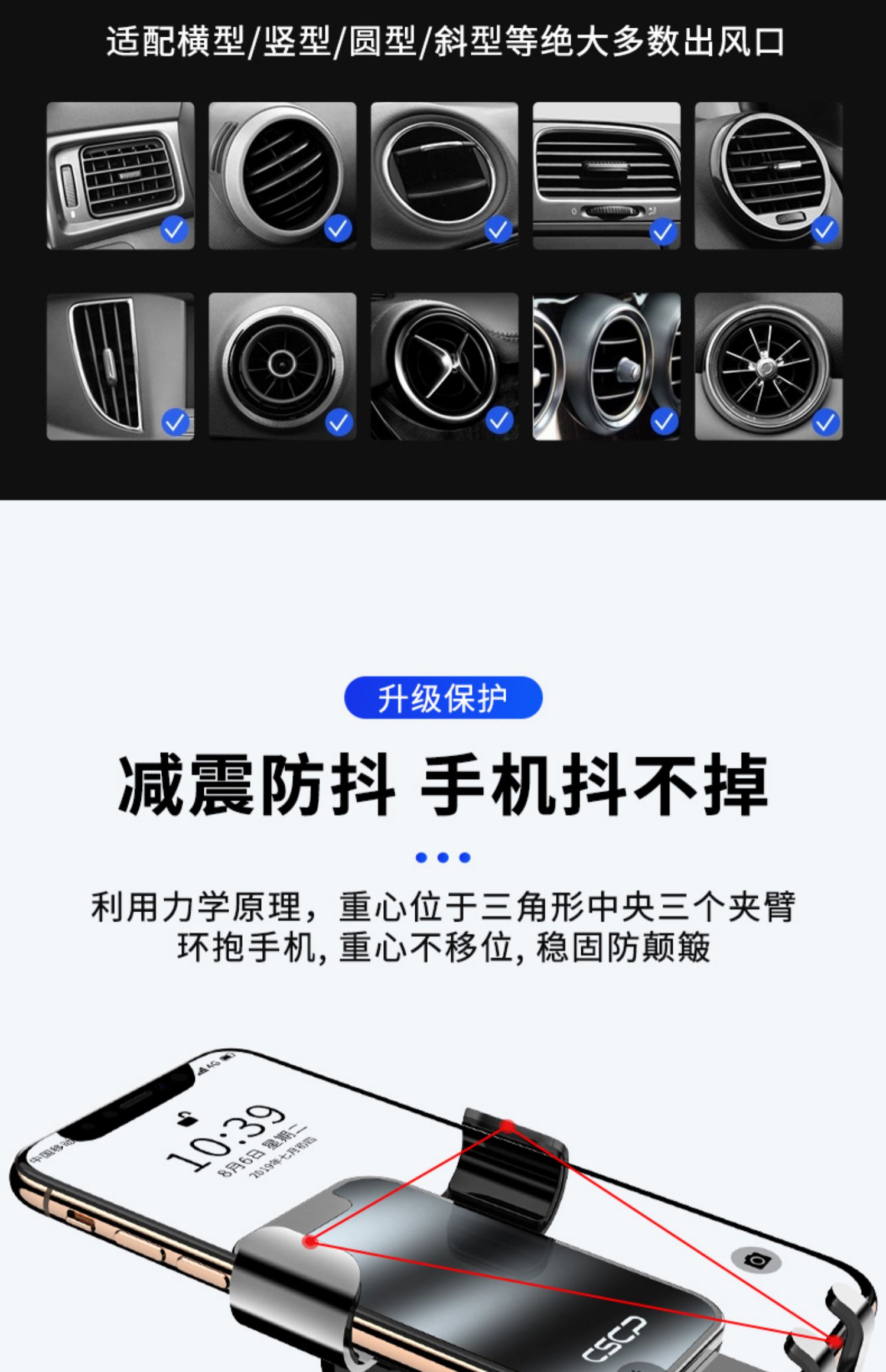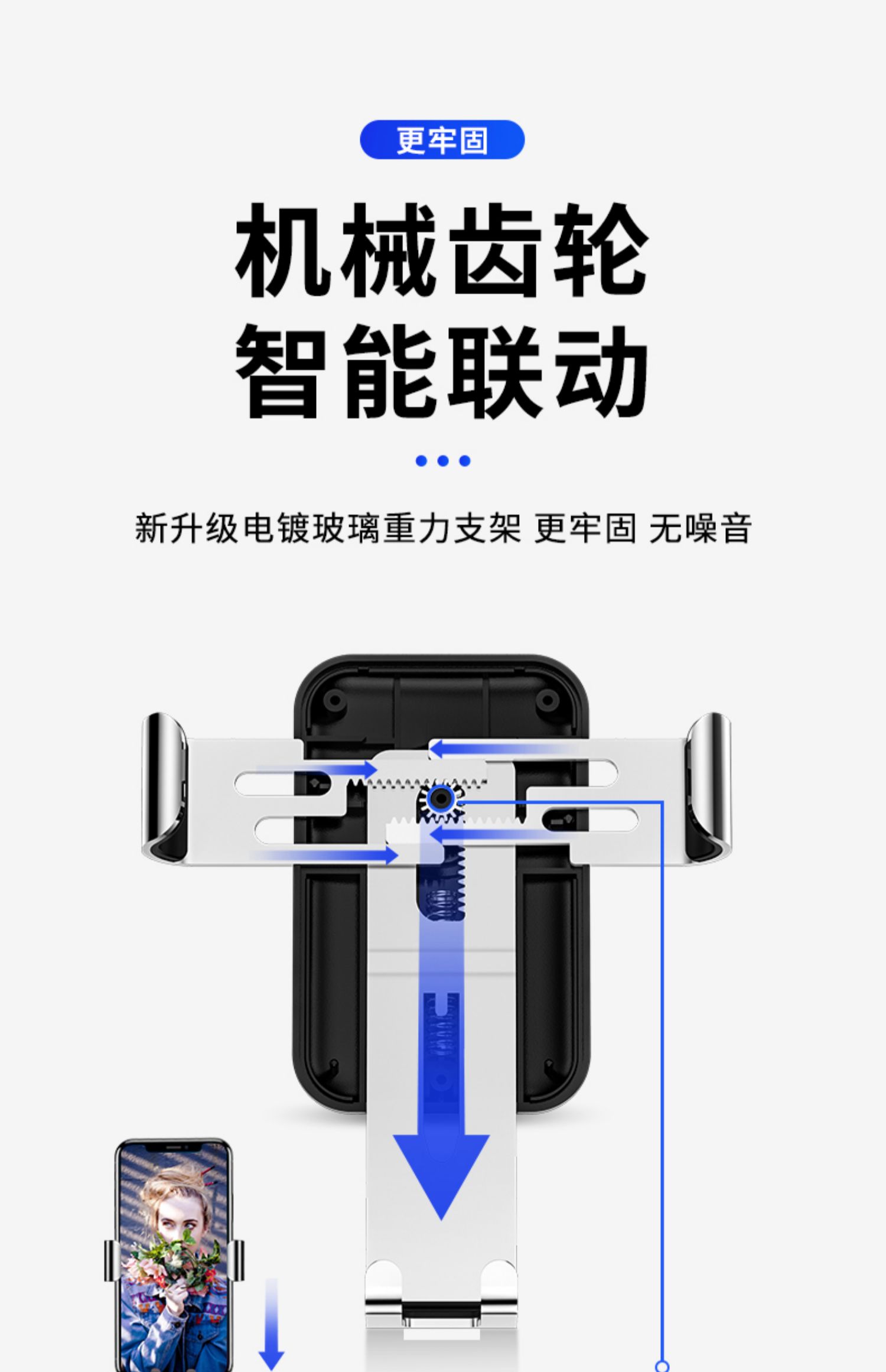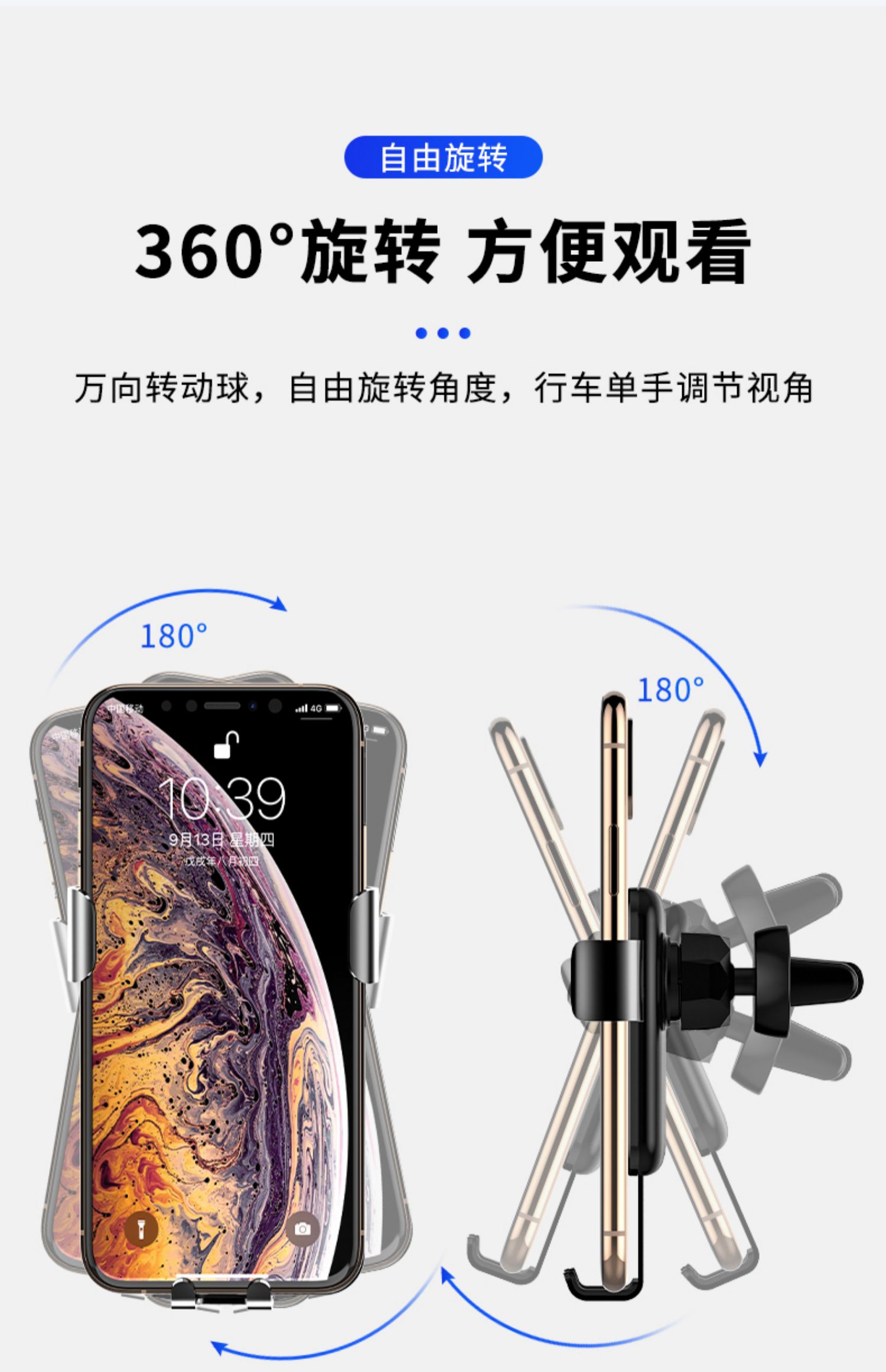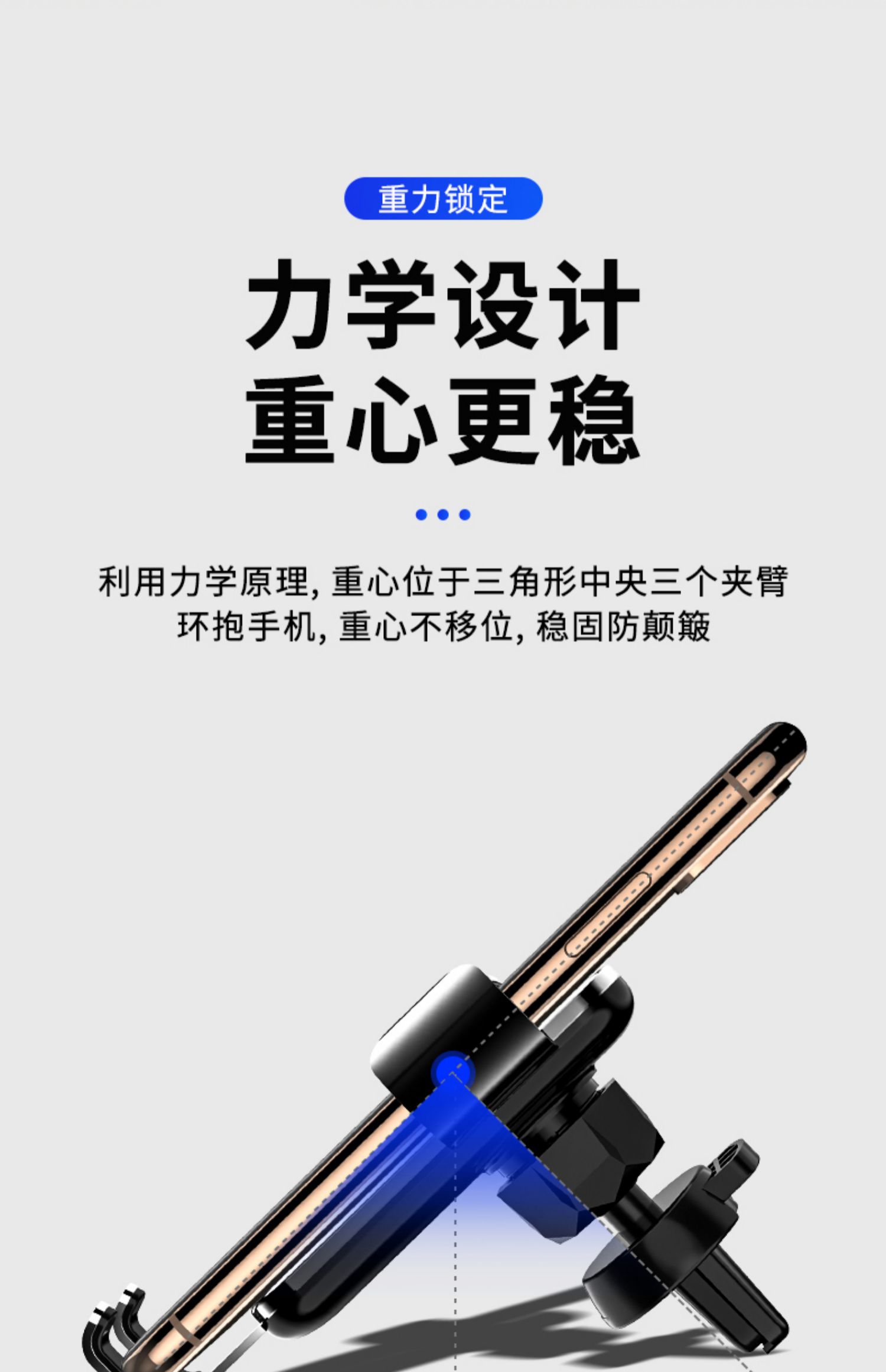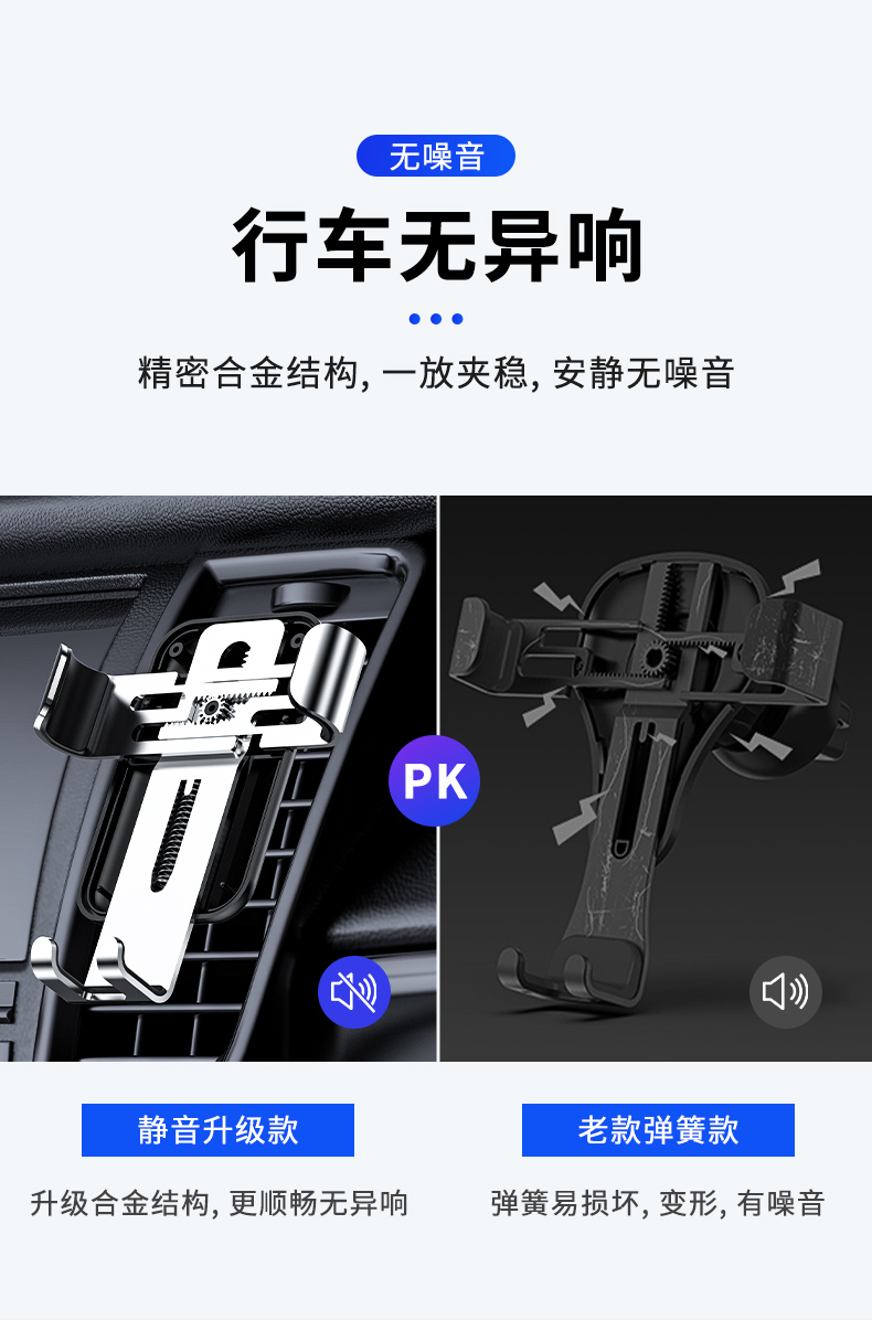 创意车载重力感应支架手机架,航空和金+电镀玻璃,可360°自由旋转,单手取放,适用于所有手机!双重联动,五点承重,三角设计,稳固加倍,一个字:稳!【赠运费险】