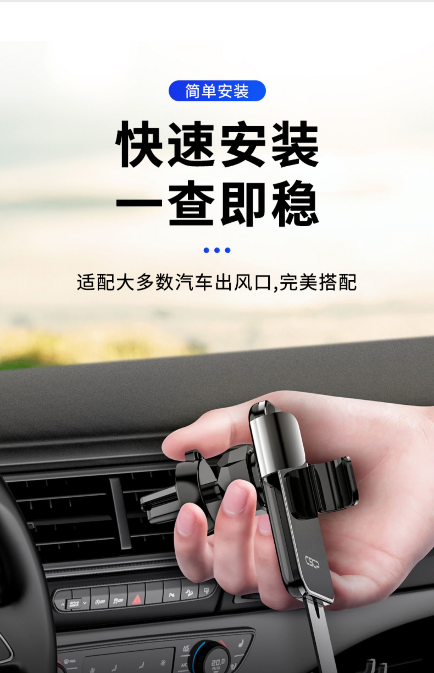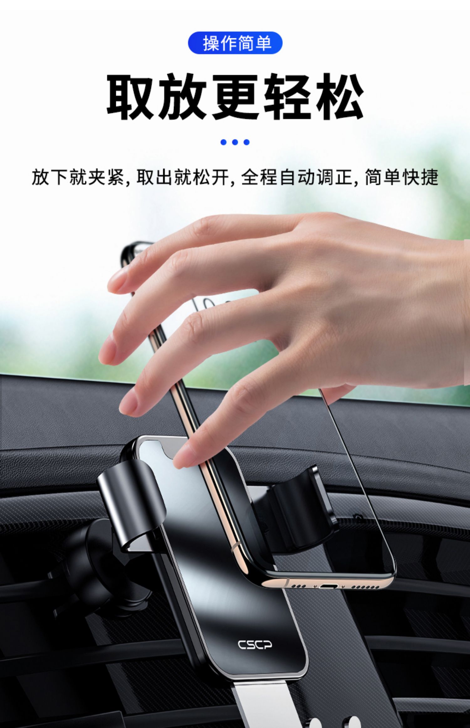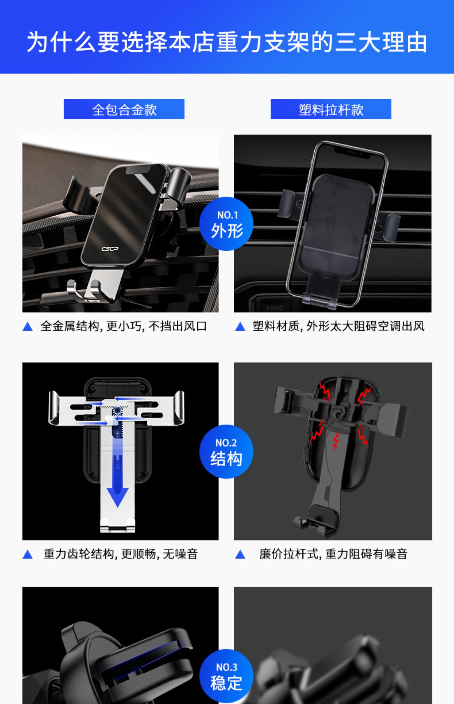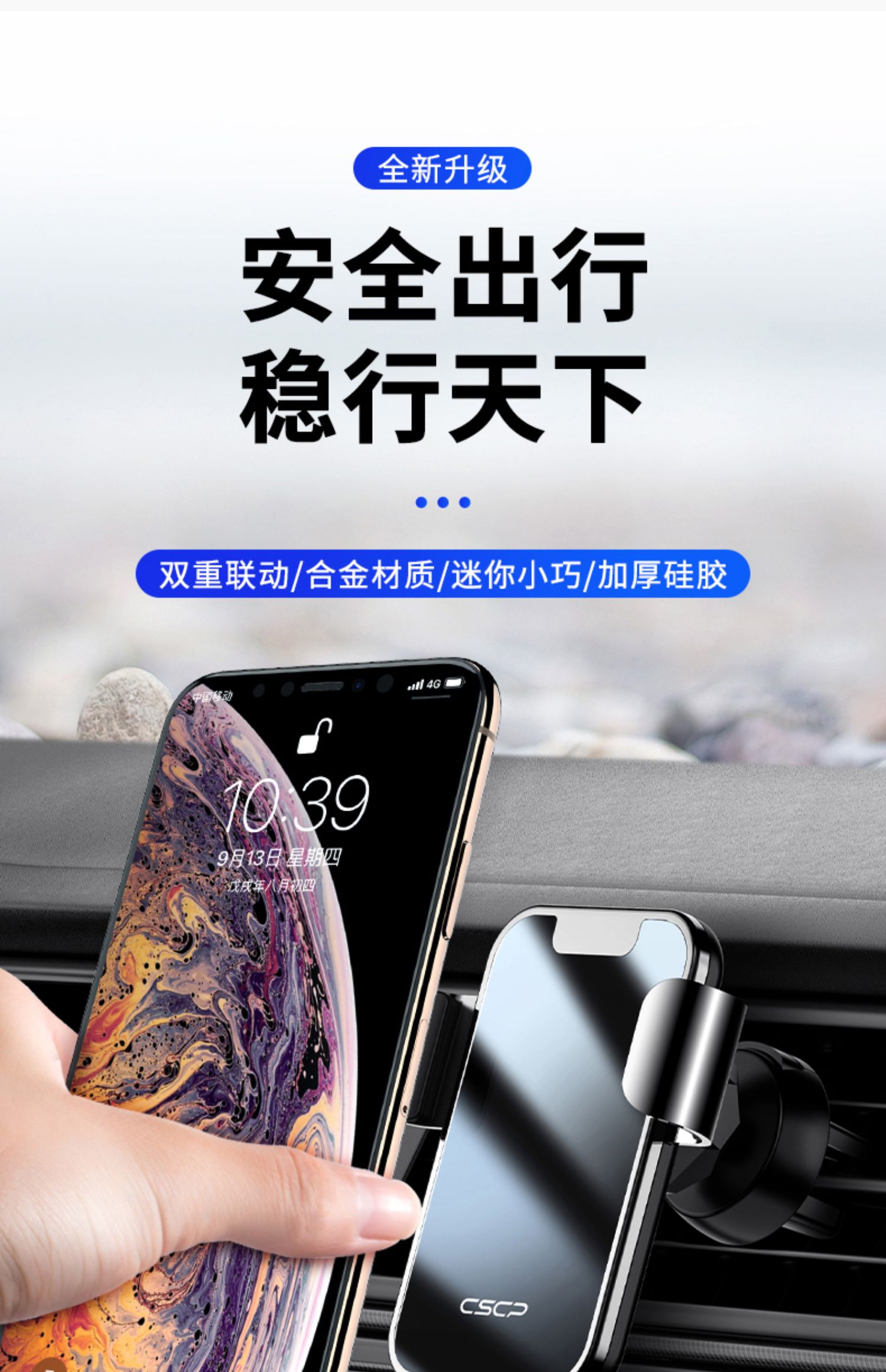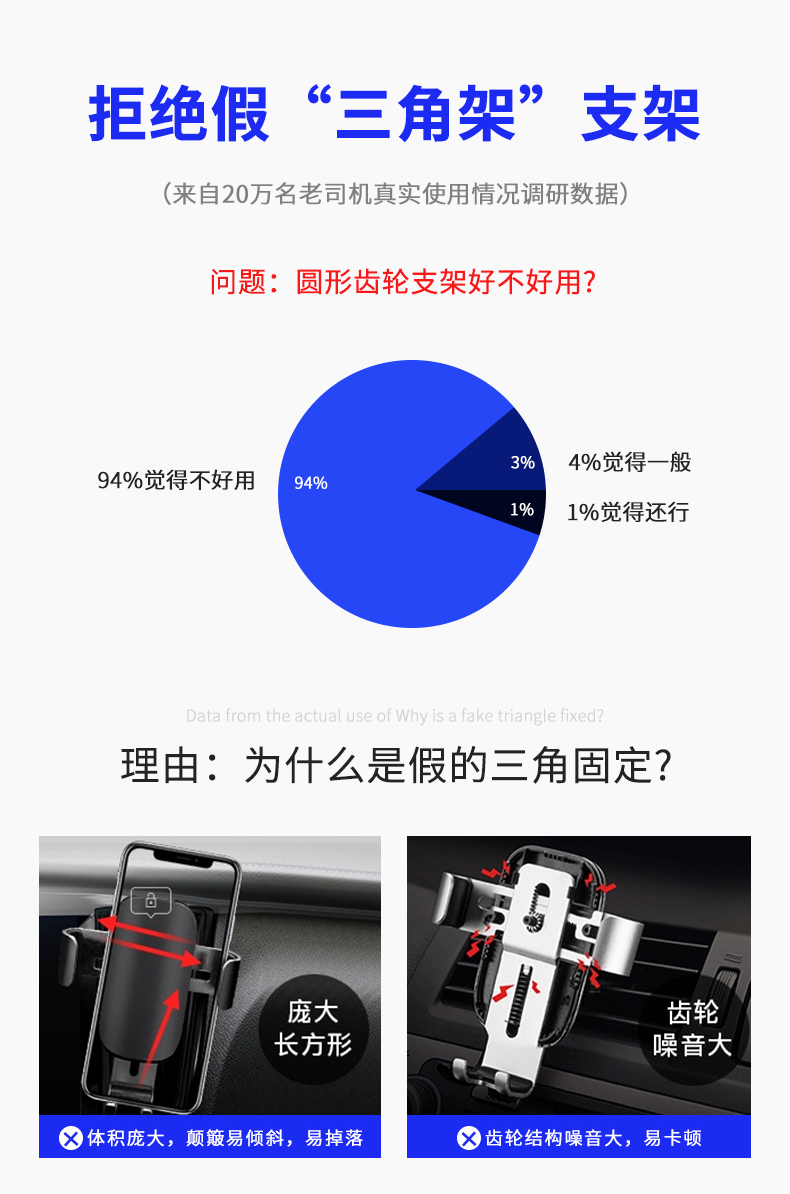 创意车载重力感应支架手机架,航空和金+电镀玻璃,可360°自由旋转,单手取放,适用于所有手机!双重联动,五点承重,三角设计,稳固加倍,一个字:稳!【赠运费险】