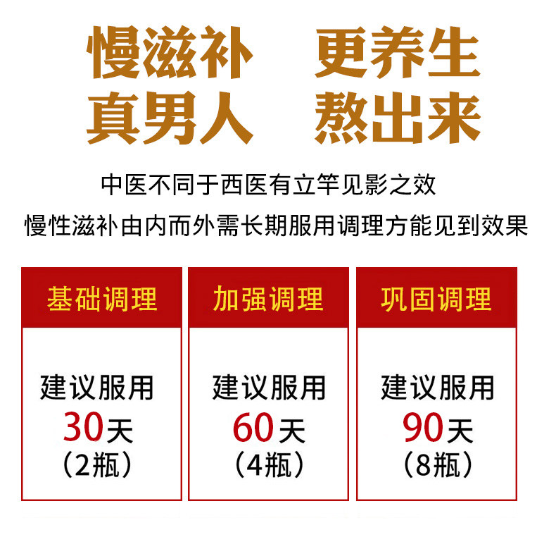 腰膝酸软、阳痿早泄、性欲减退、遗精、性机能疲弱衰退,缓解疲劳,增强身体素质,延缓衰老,前列腺炎等症。精神不振者、抵抗力低下【男人的神器】