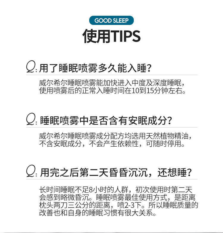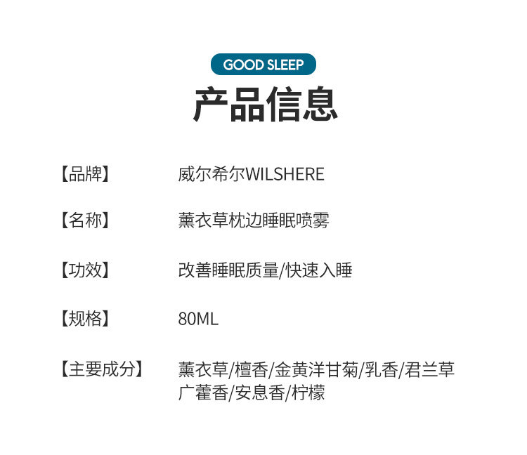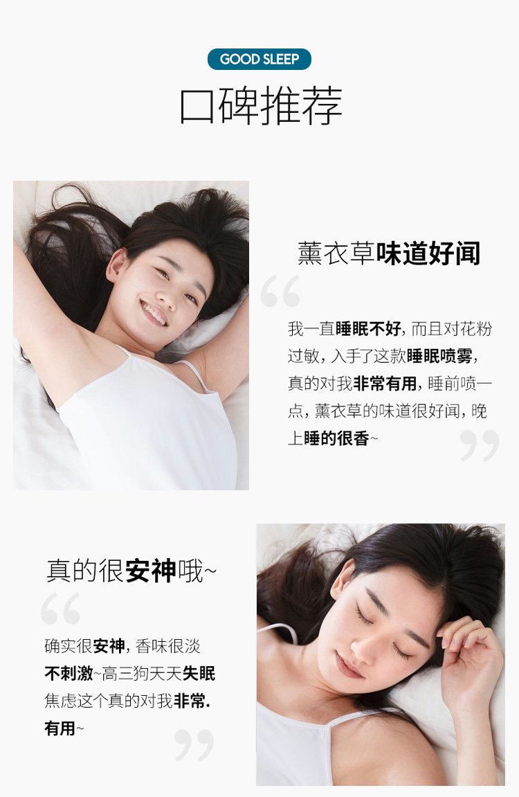 天然植物薰衣草精油,无化学添加剂,安全无副作用,轻轻一喷,能舒缓压力、放松心情,褪去睡前的紧张烦闷,提高睡眠质量,拯救失眠族,睡前使用,缓解情绪,放松身心轻轻一喷享受安睡一整晚!