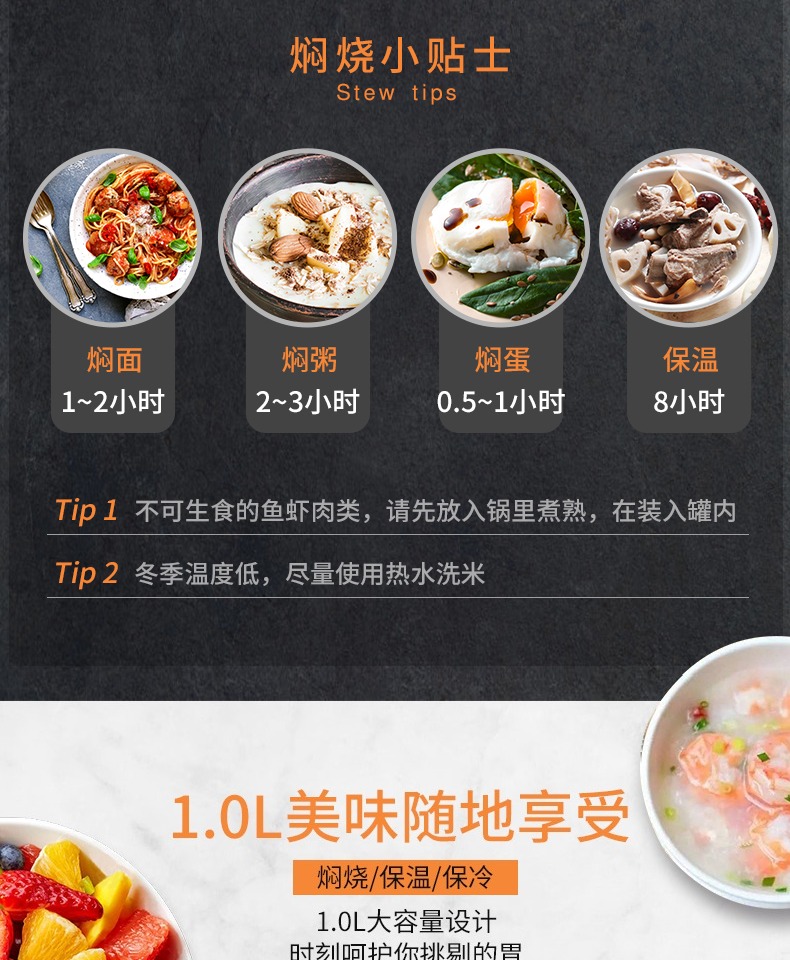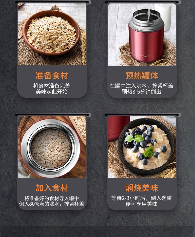 焖烧杯原创设计,食品级安全材质,保暖保冷两用,不用火不用电,长效保温,生米都煮成熟饭啦,我的天,真的是太神奇了,买它