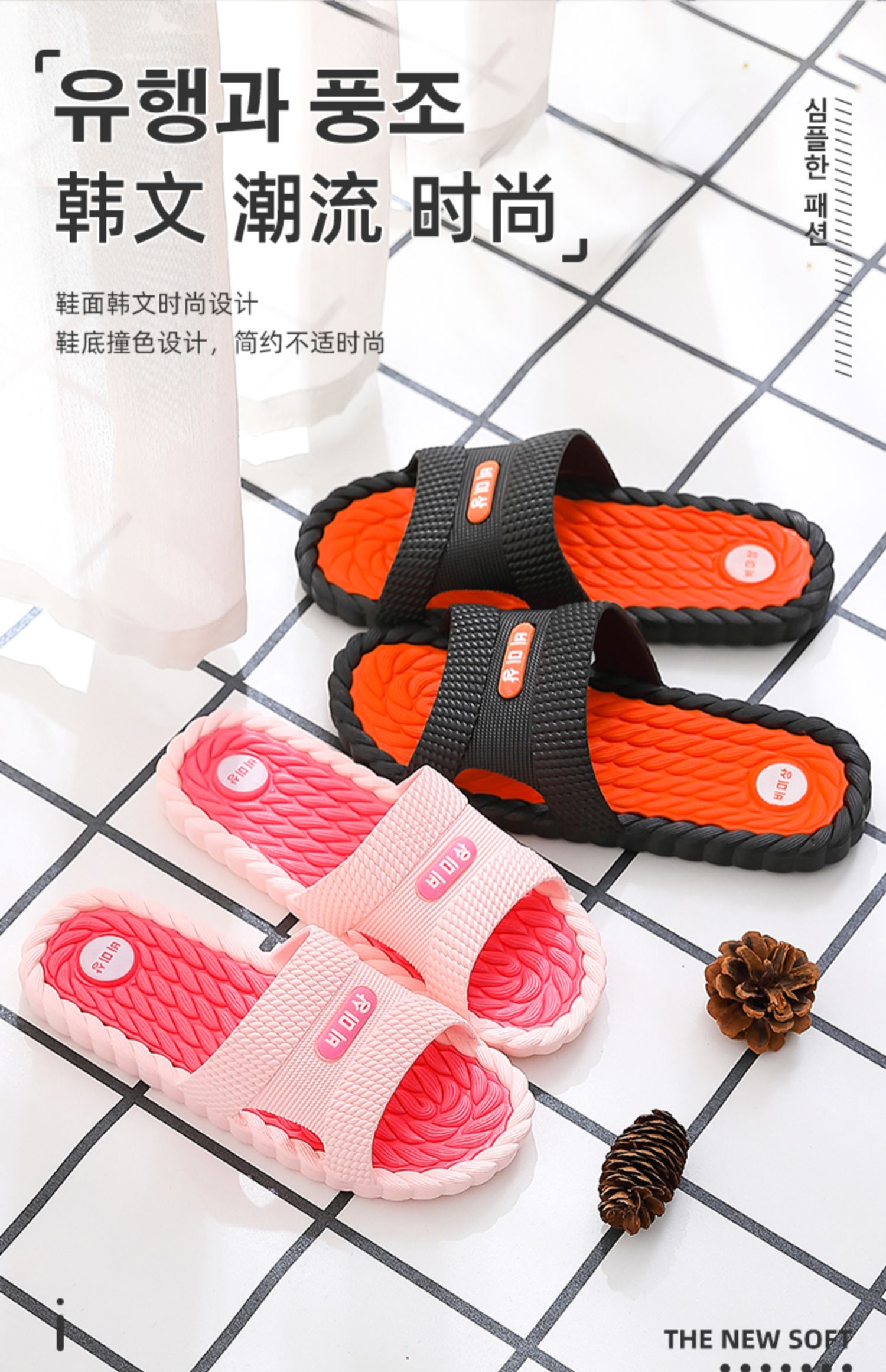 人体工学按摩凉拖鞋。与脚掌接触面少,减少汗渍囤积,舒适透气。漏水导流设计,快速干燥,现在促销更实惠。
