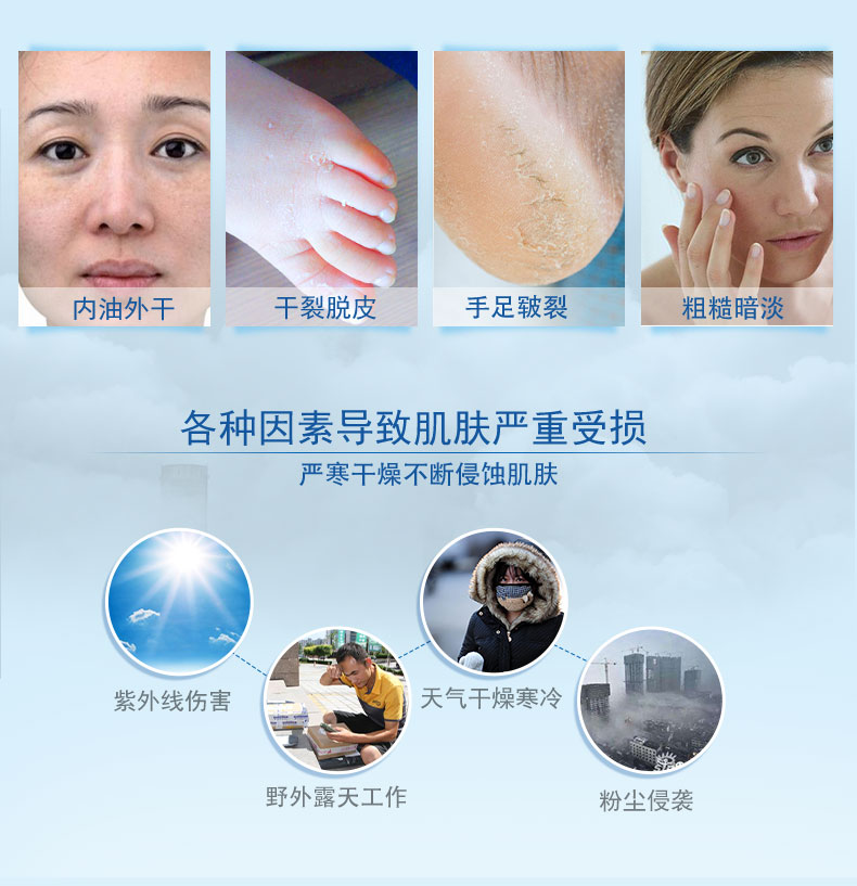 蕴含丰富甘油、凡士林等滋润成分,修护皮肤干裂冻裂,防止皮肤干燥,清爽不油腻,全身可用,人手必备~呵护每寸肌肤