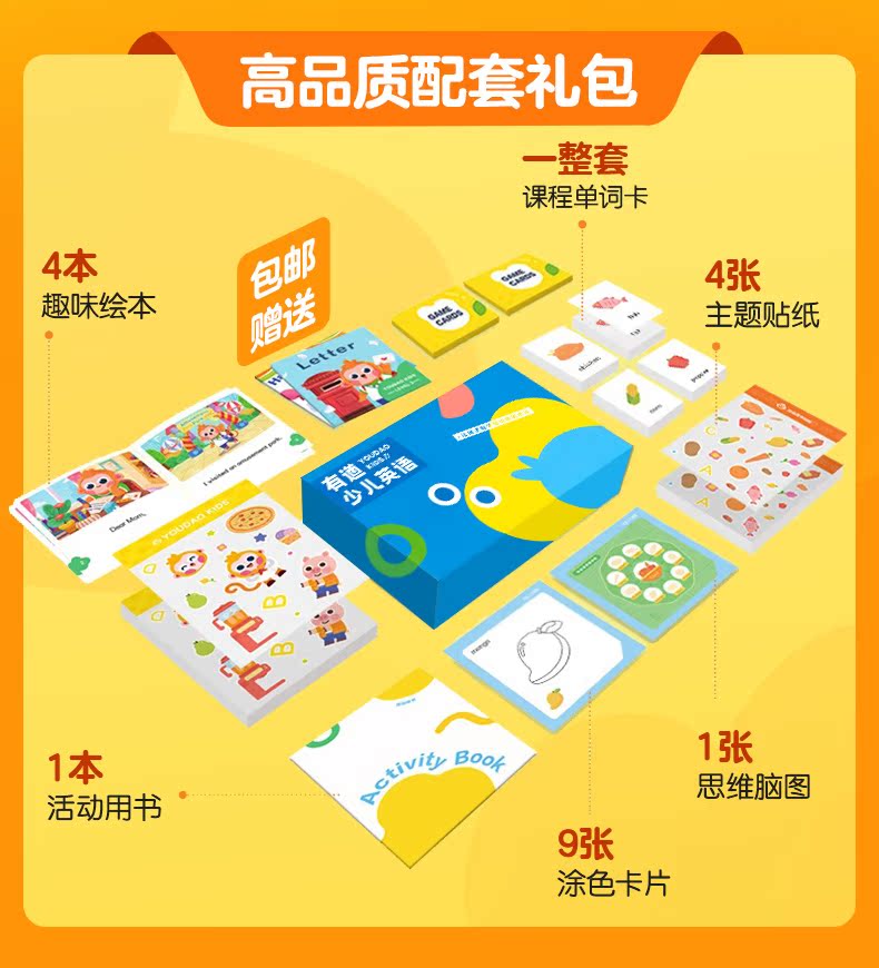 适合2-8岁宝宝,英语启蒙课5节,北美外教AI互动+辅导实物礼包,下单联系店铺领取兑换码,按步骤激活再发实物礼包。