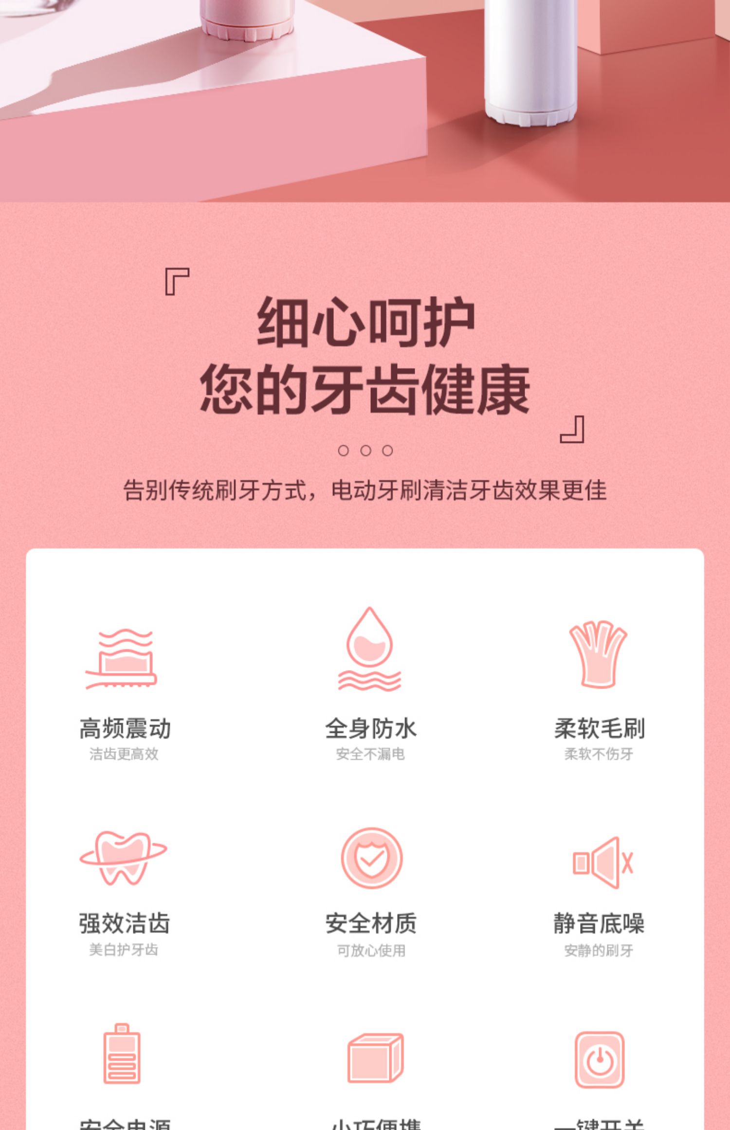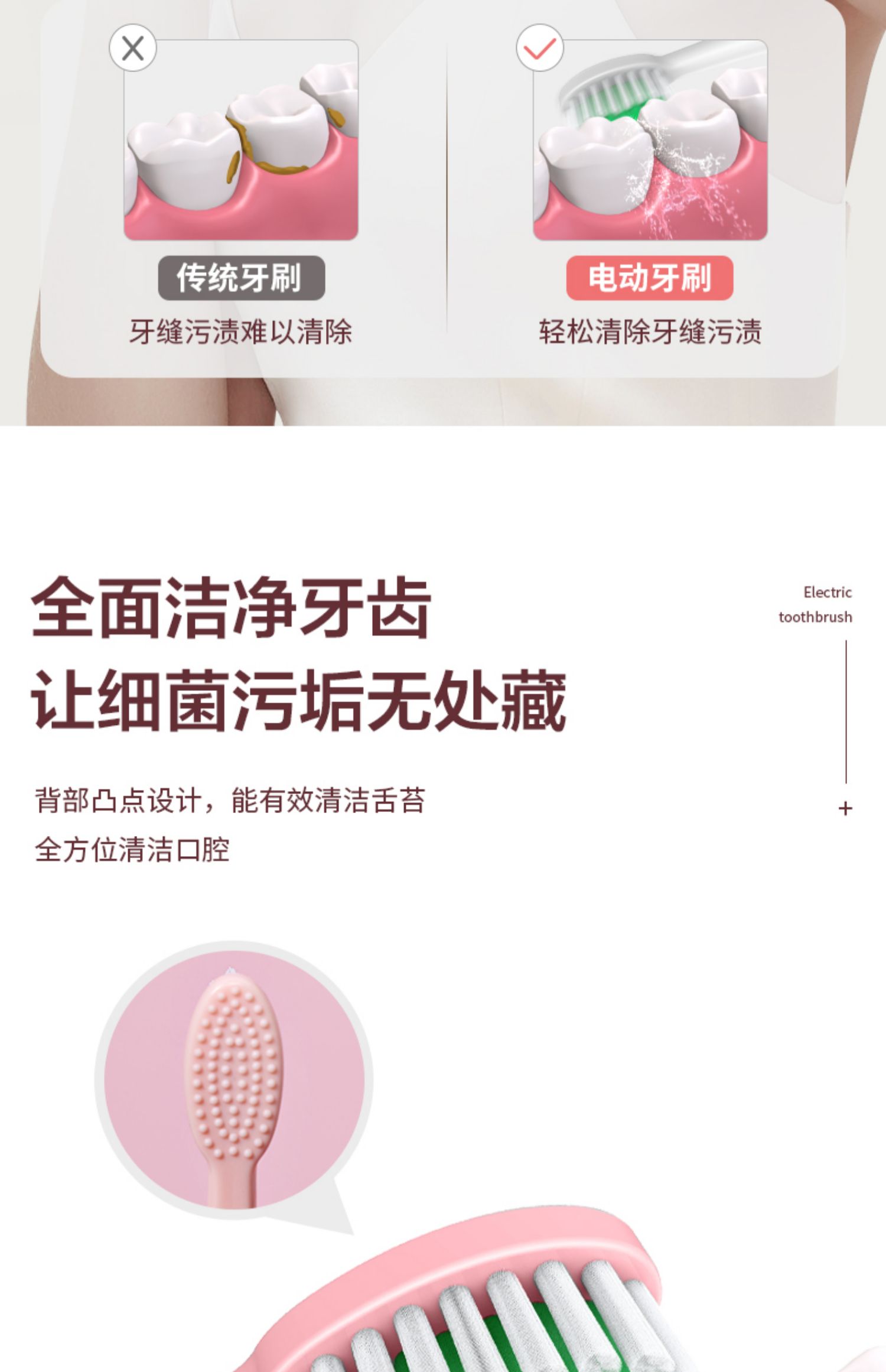 闭着眼都要入的电动牙刷,共三个刷头,超强清洁能力,深入齿缝,超软杜邦刷毛,不伤牙龈,两种模式,智能记忆功能,记住你的频率,用心呵护牙齿健康!赠运费险