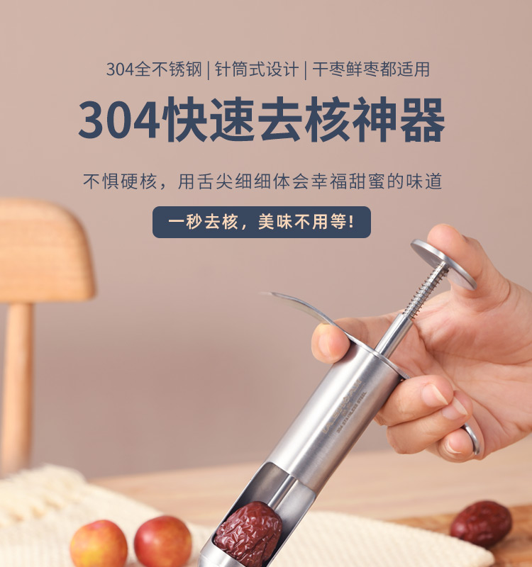去枣核神器大枣去壳胡工具,304全不锈钢材质,弹簧回弹轻松省力,轻轻一压,快速去核【赠运费险】