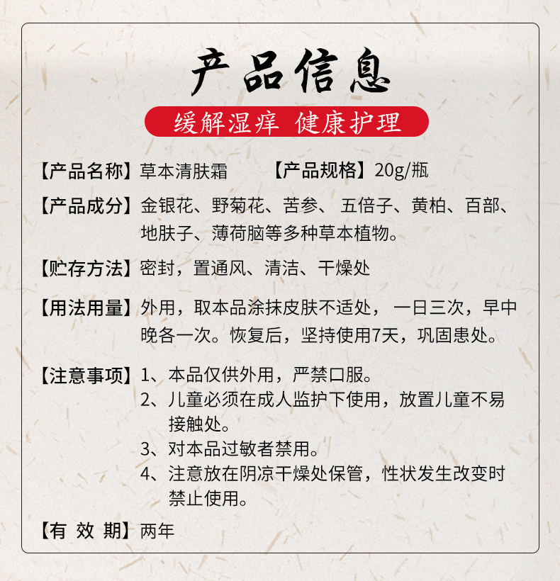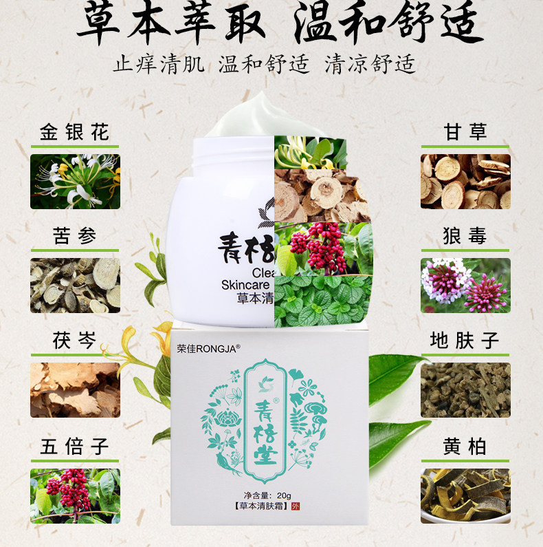 【荣佳】青梧堂草本清肤霜20g,本草配方,天然安全,温和不刺激,解决修复皮肤各种不适瘙痒难耐等症状