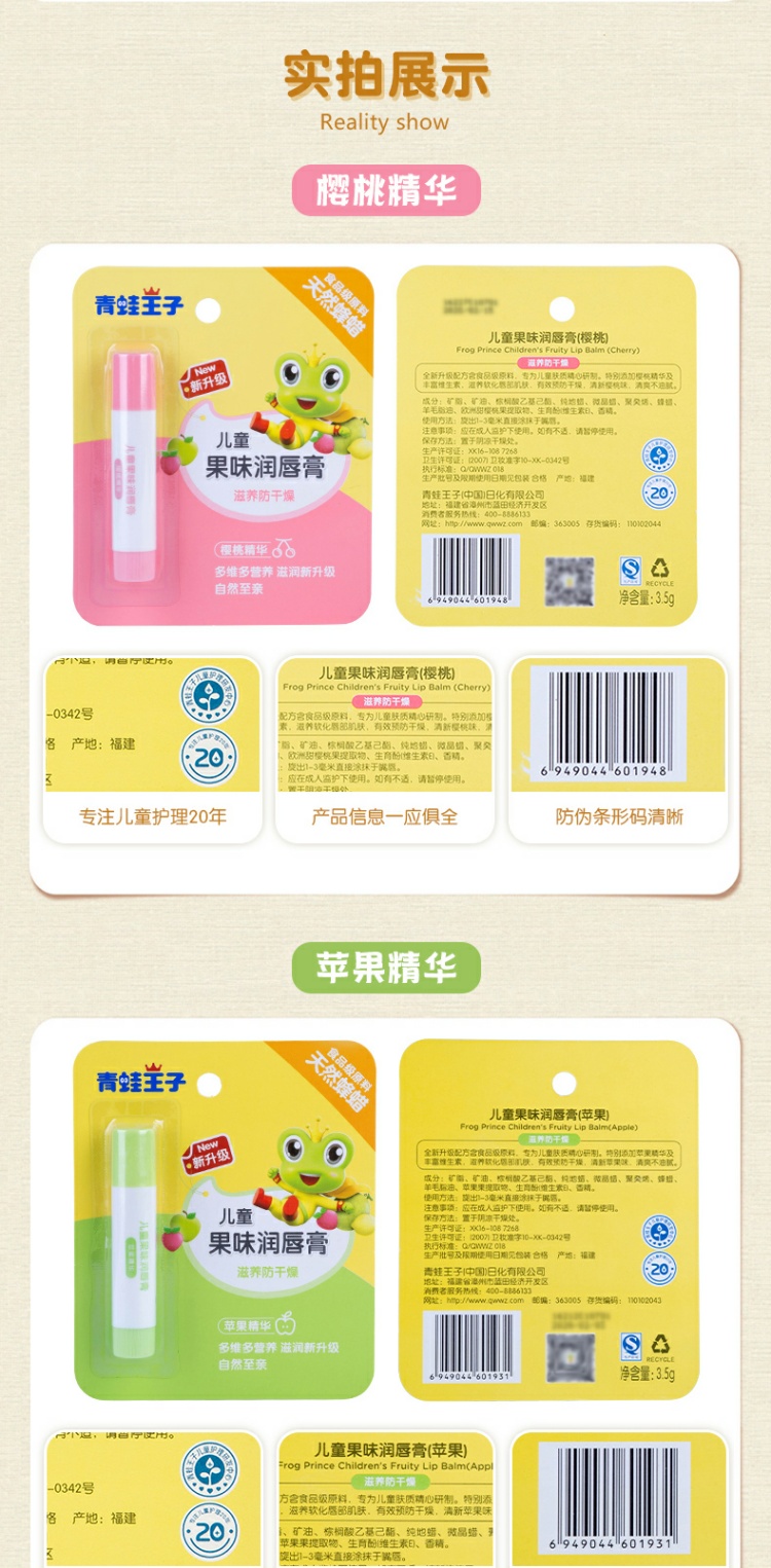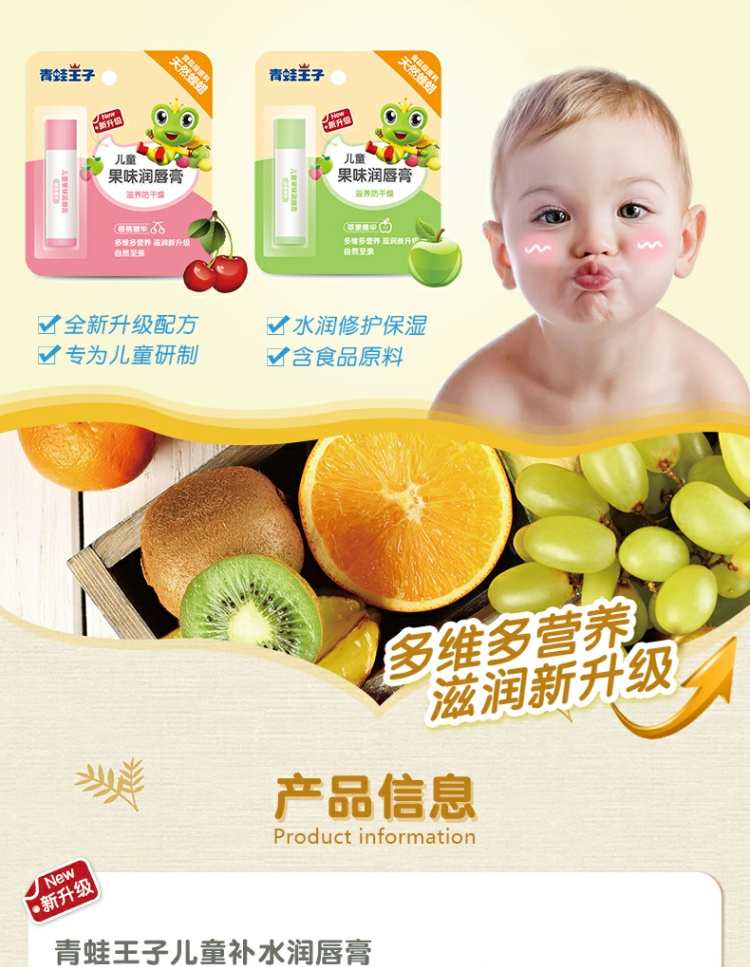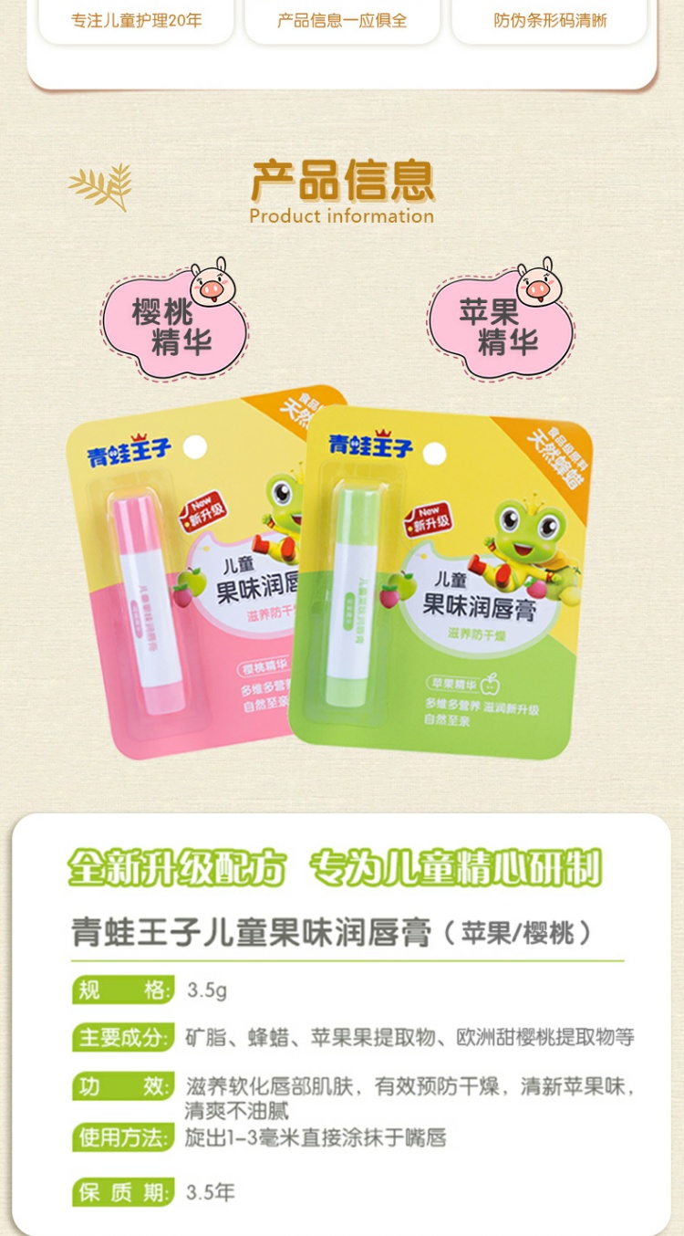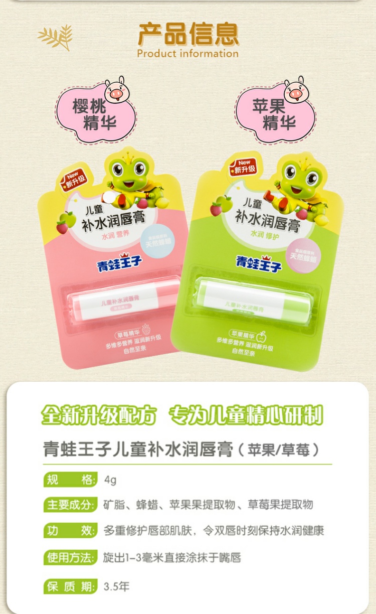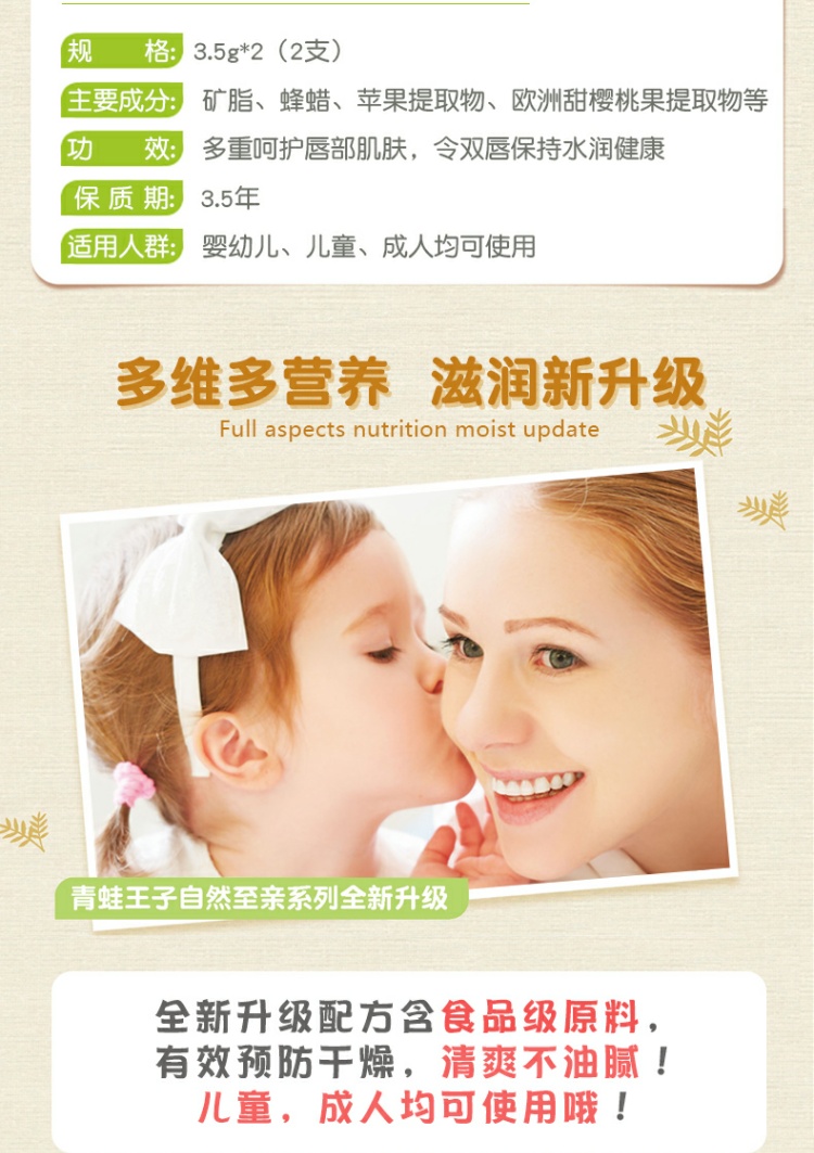 【实惠两支装】青蛙王子品牌!到手9.8元,全新升级配方,天然水果植物萃取!食品级原料,专为儿童研制,健康环保,滋养防干燥,水润保湿,温和滋润,呵护宝宝柔嫩双唇,成人儿童都可以用哦!囤货