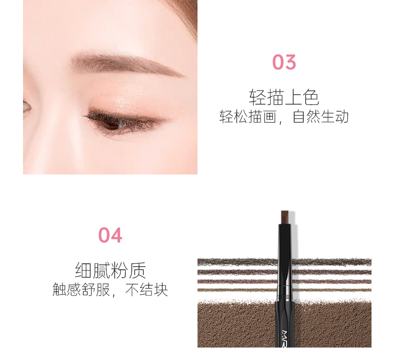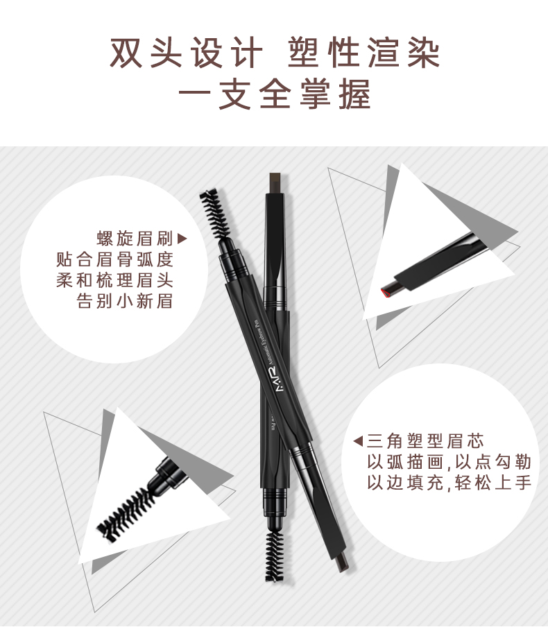 六角多切面,轻松描绘多种粗细线条,轻松上手,自然有型,勾勒自然立体眉形,一笔两用,美丽眼妆即刻打造,创新三角笔刷,点线面结合,便于贴合眉骨,随心勾勒精致眉形。【赠运费险】