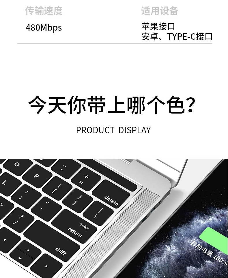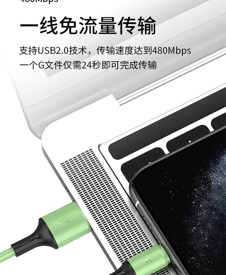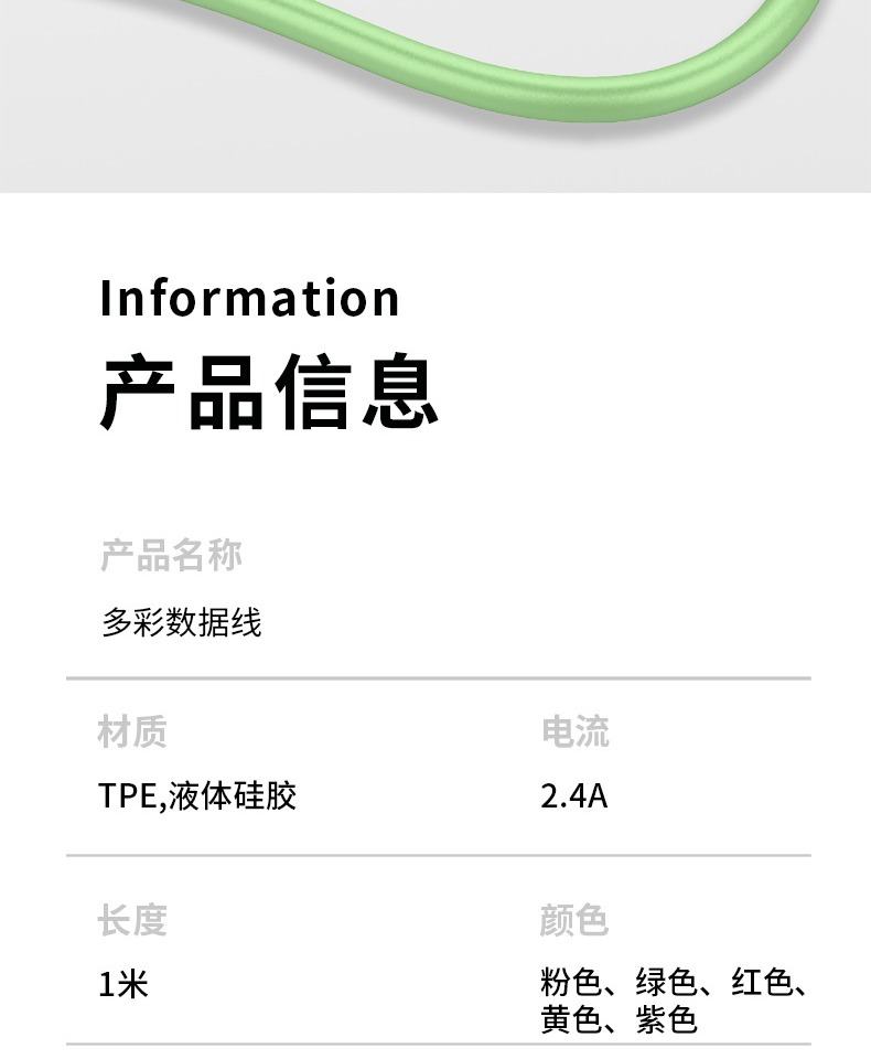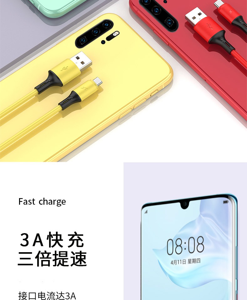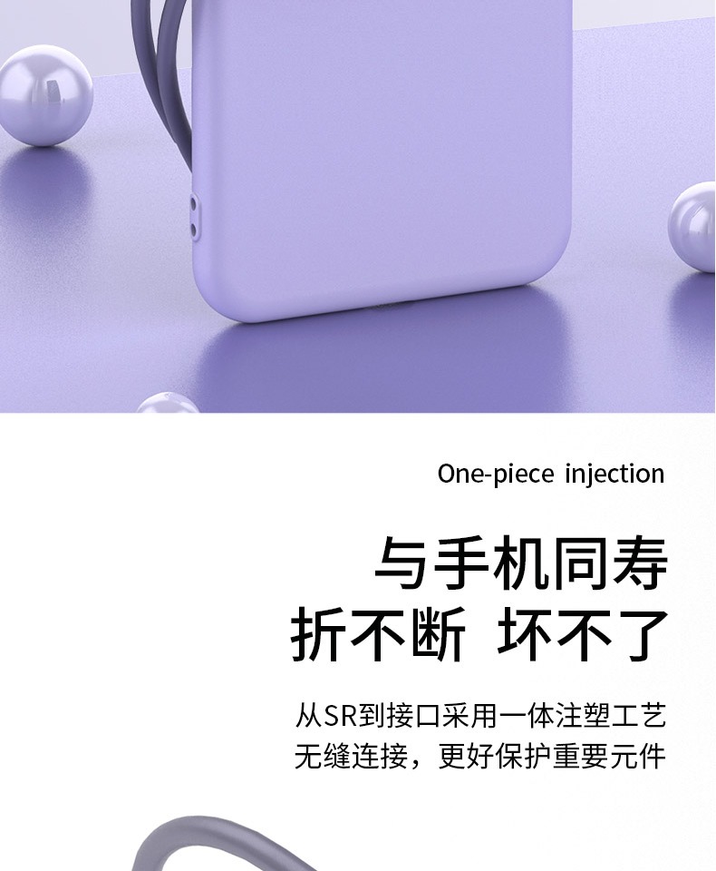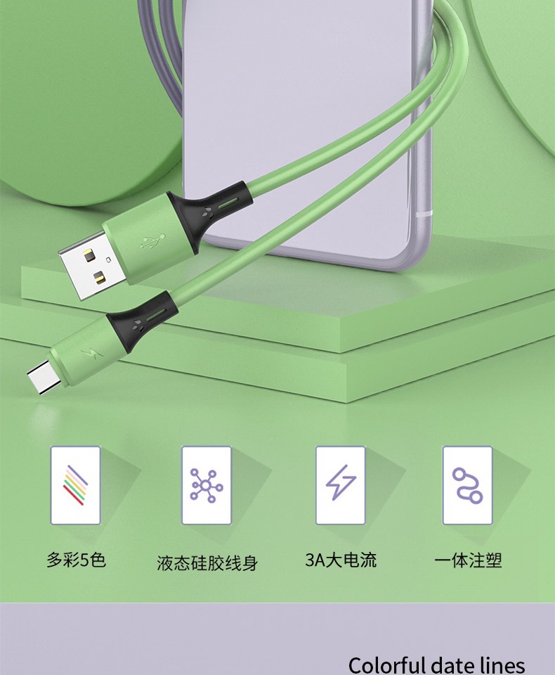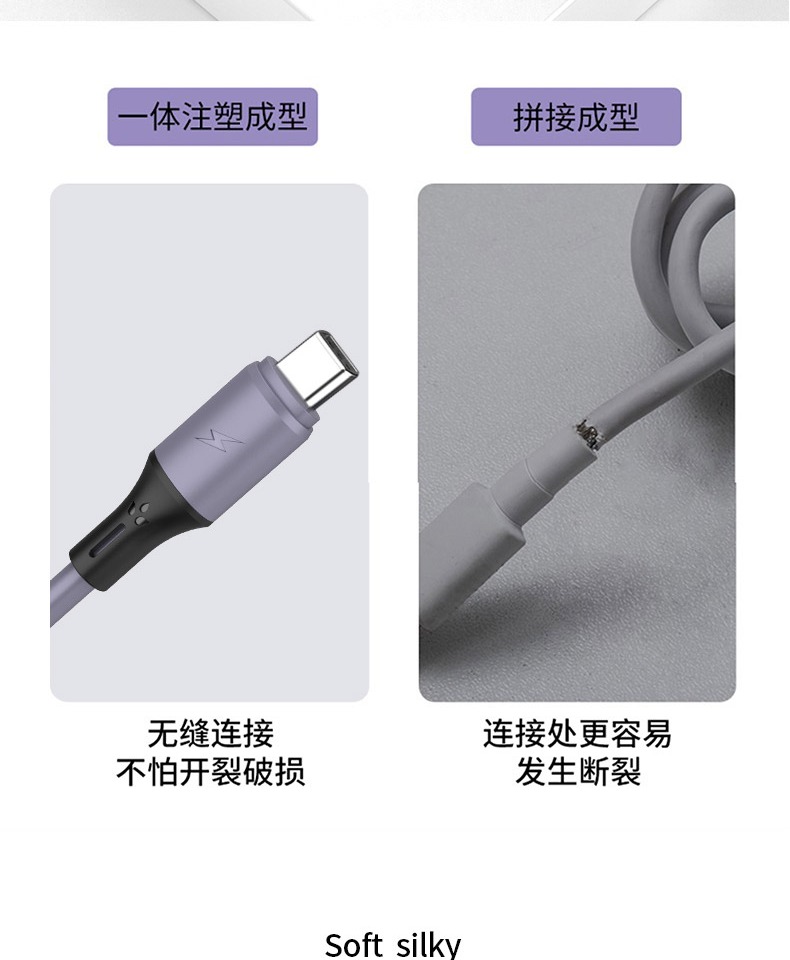 液体硅胶材质,3A快充精选优质进口材质,坚韧耐用,纯铜线芯提速99高效输出,效率大幅提升,让等待不再漫长,充电更省时!