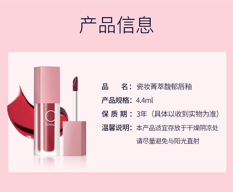 瓷妆丝绒雾面哑光不易掉色唇釉