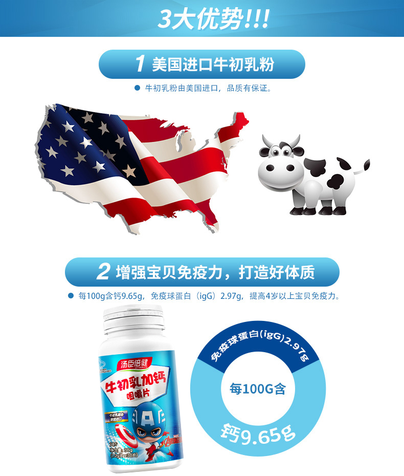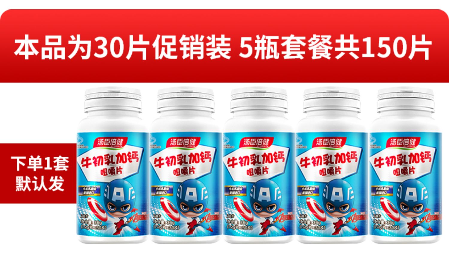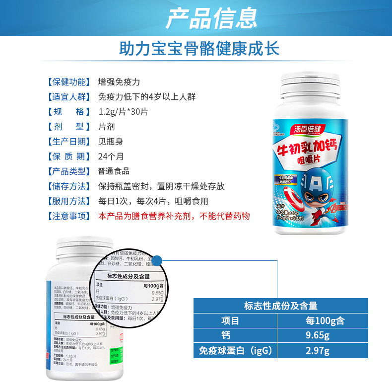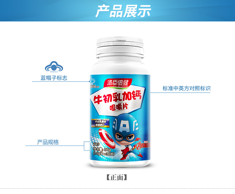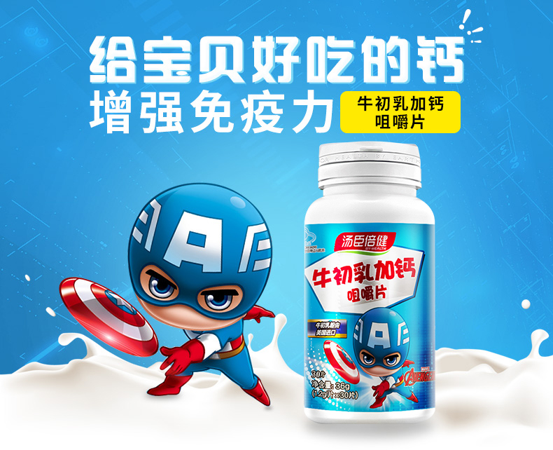 【牛初乳加钙30粒*5瓶】汤臣倍健美国进口牛初乳,儿童补钙,给宝贝好吃的钙,增强免疫力,小熊造型纯纯奶味,宝宝值得拥有~!