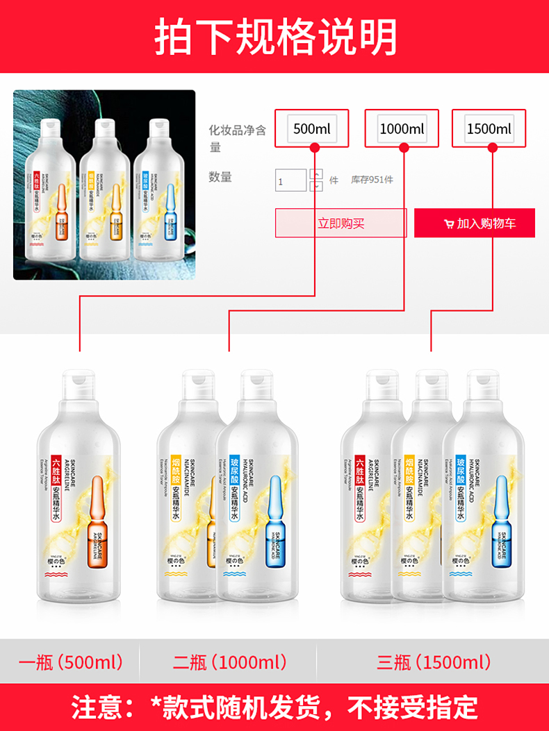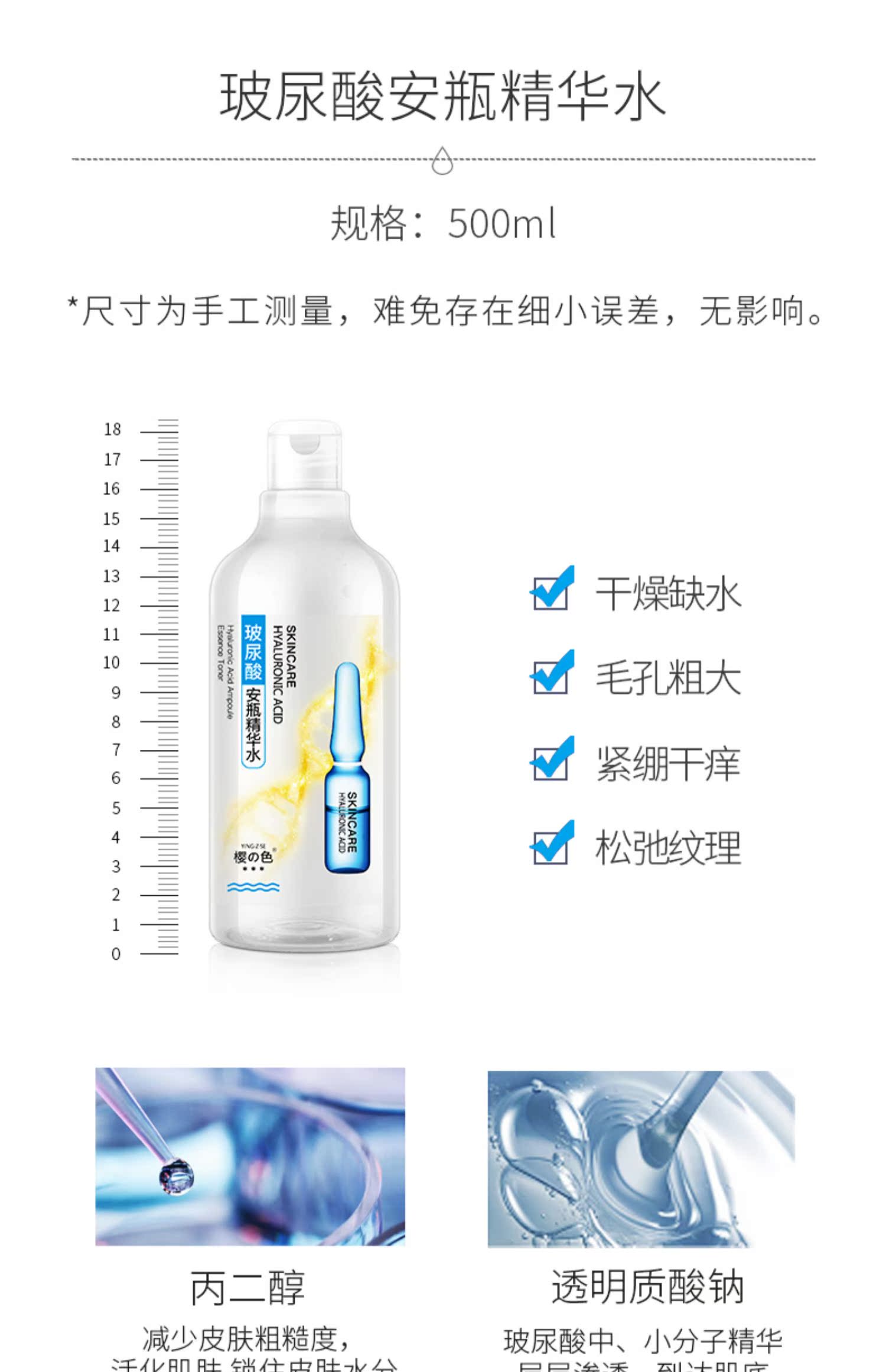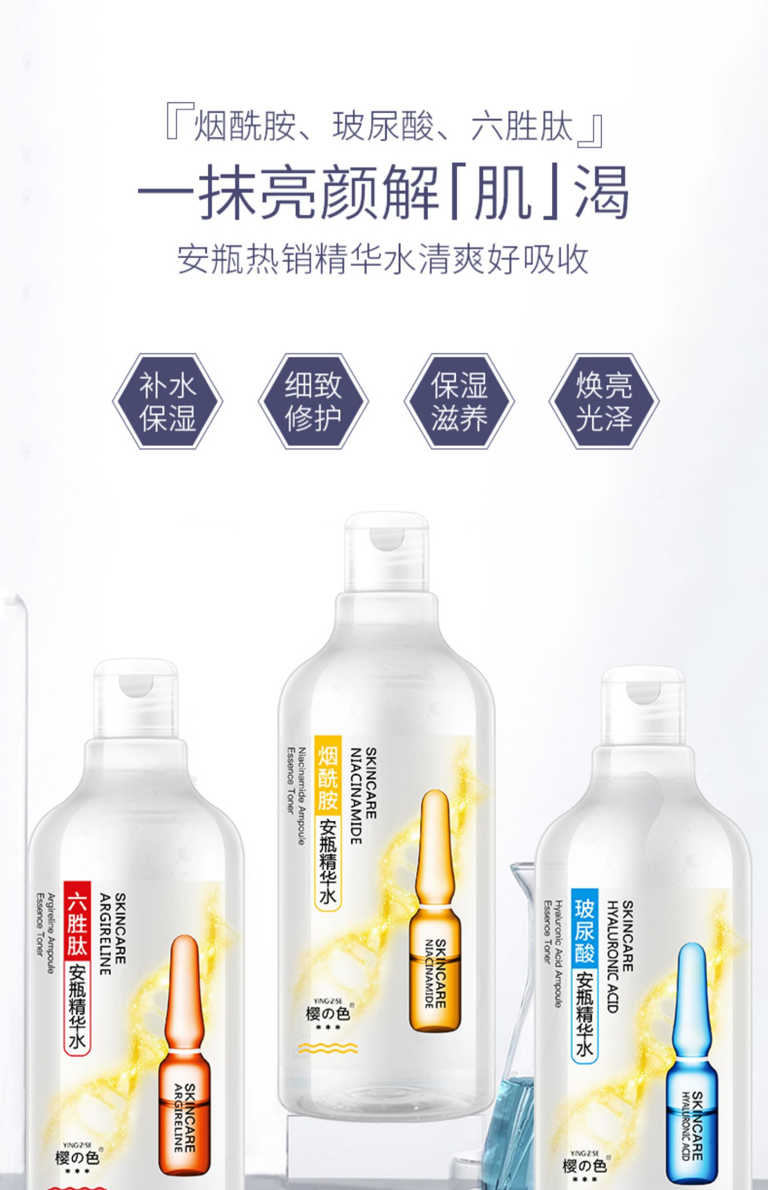 【玻尿酸、烟酰胺、六胜肽各500ML】500ML大容量,抖音网红,小红书明星种草款,补水保湿,清爽好吸收。温和配方,补水更安全!