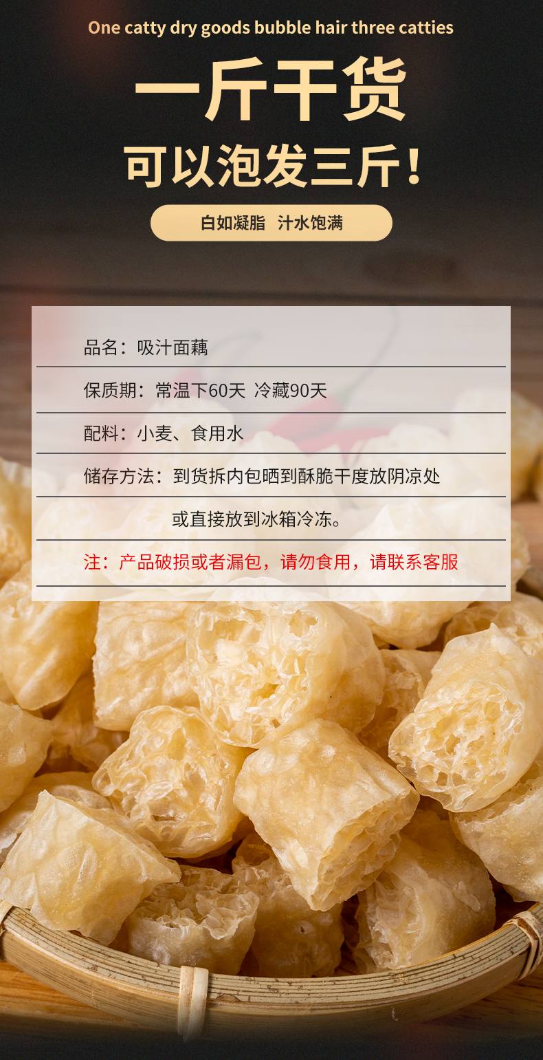 【吃货达人不可缺少的美食】【一斤泡发3斤】500g可吃八餐左右,吸汁面藕面筋!鲜香低脂,营养美味~可搭配老干妈、芝麻酱、等食用,爽口爆汁,更多网红吃法去抖音快手搜索面藕解锁更多吃法【赠运费险】