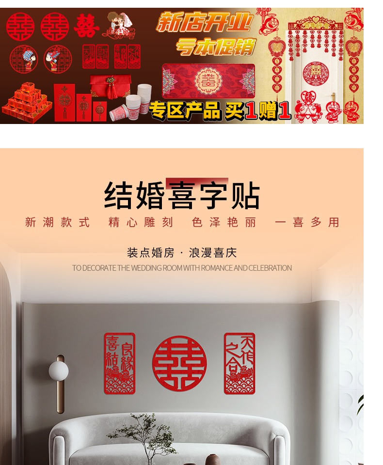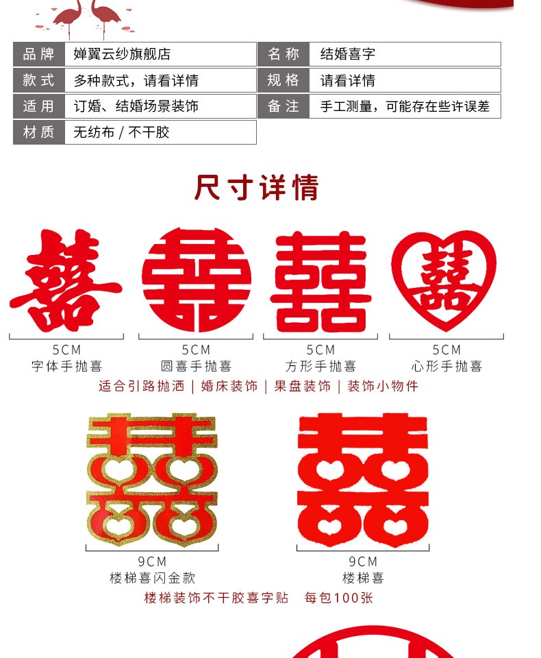 结婚迷你手抛喜字,创意婚房布置卧室客厅,装饰婚礼果盘喜楼体小喜子,新婚房布,置场景布置,装饰用品,5包100个!