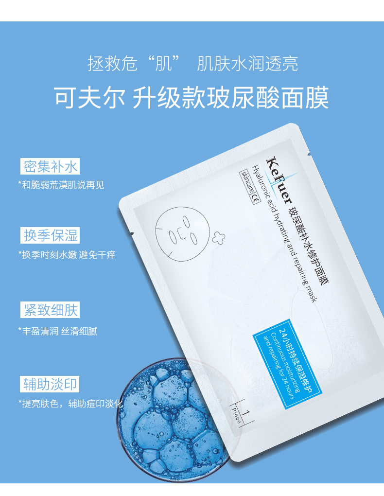 【下单再送2片面膜】玻尿酸补水面膜含进口玻尿酸、烟酰胺、积雪草等成分,保湿+修护一步到位;有效舒缓泛红、改善痘印、密集补水,改善肤色拯救危肌肤!
