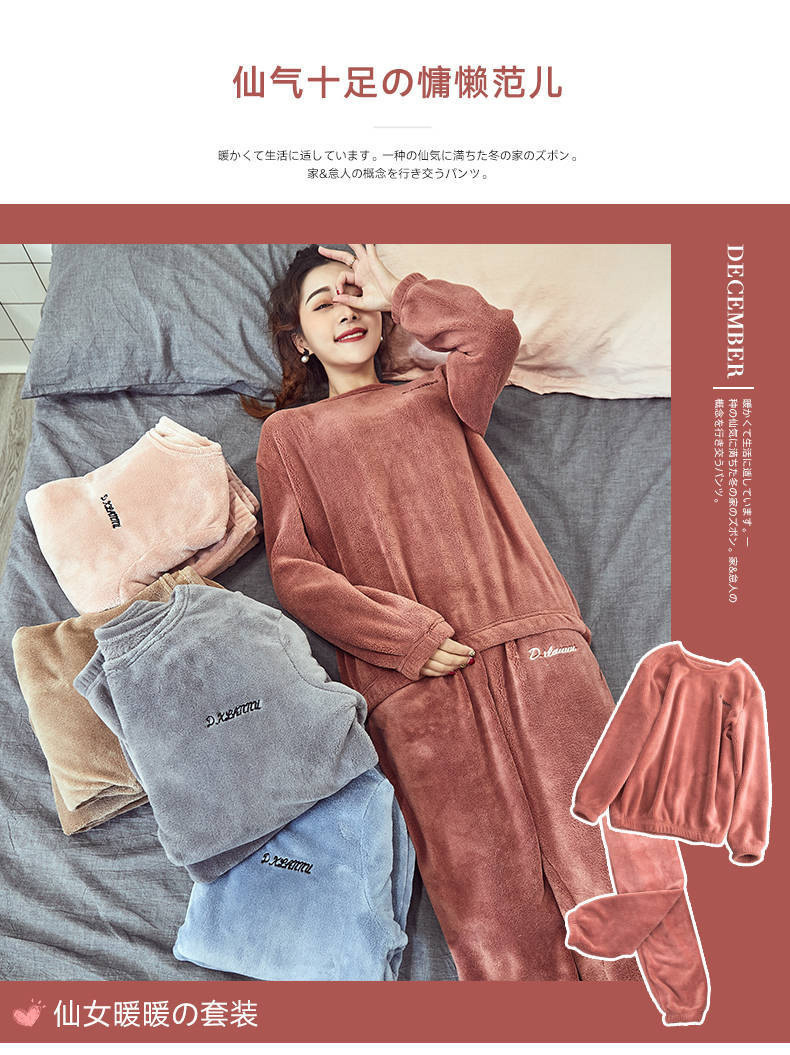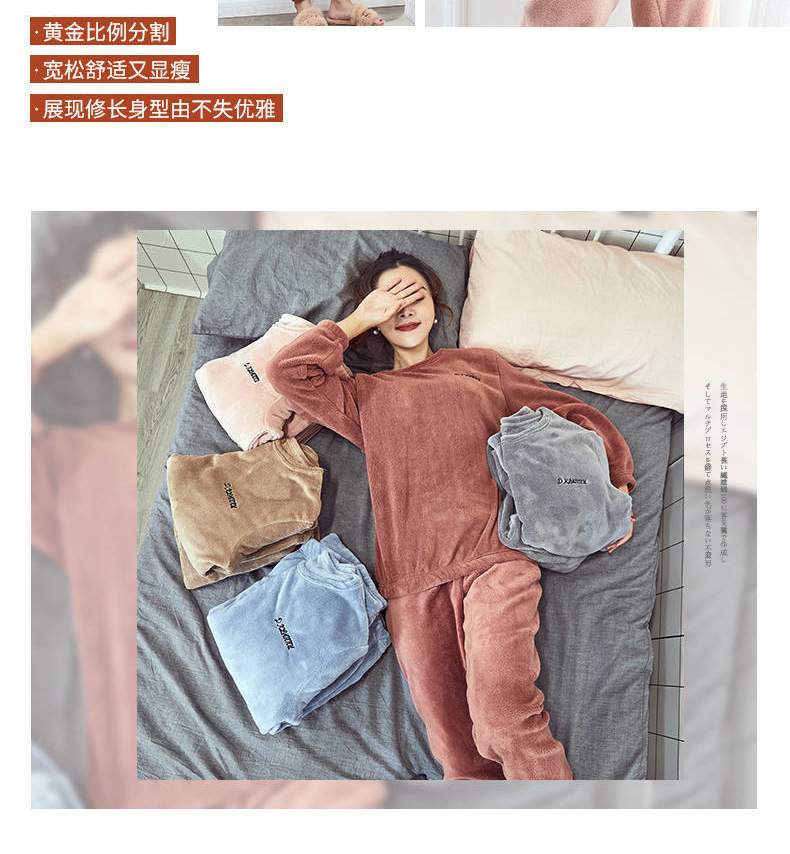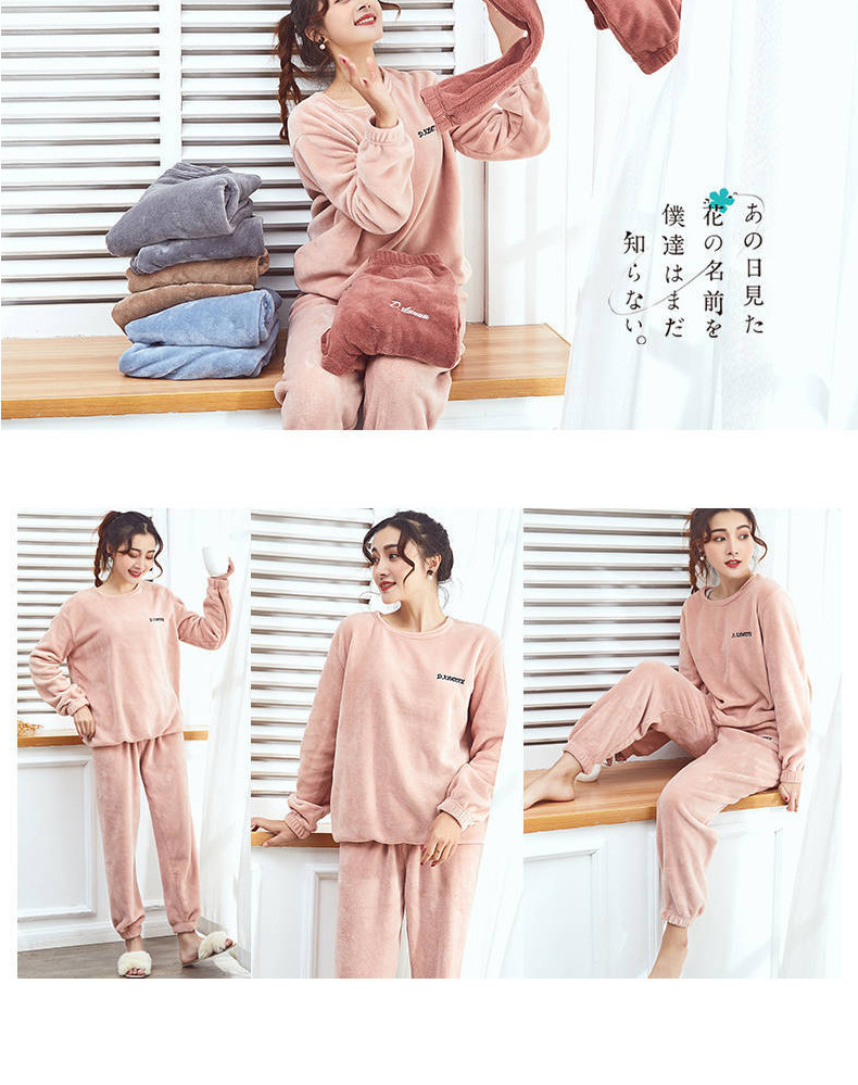 【2件套】珊瑚绒纯色舒适保暖家居服套装