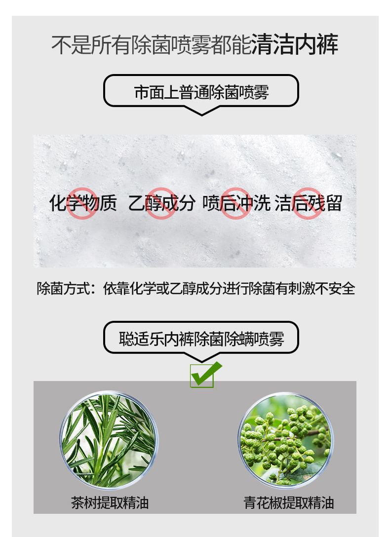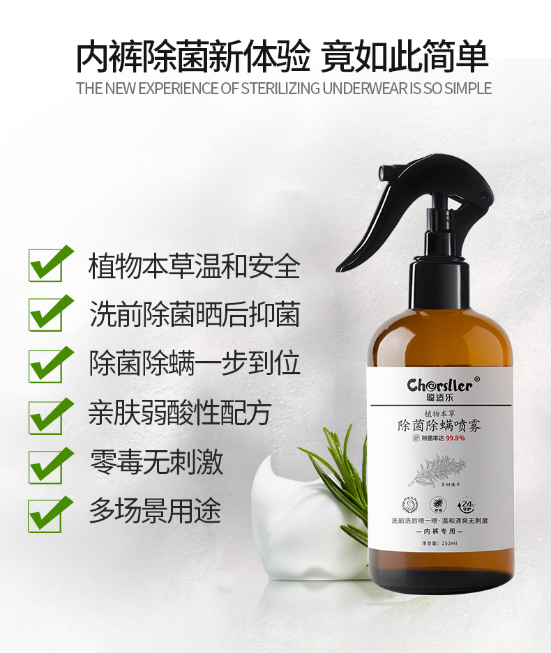 【新品特惠】聪适乐内裤专用衣物喷雾,除菌抑菌,除螨去味,17种植物精粹,无毒、无添加、无刺激,母婴安心用,除菌达99.9,温和有效除菌,守护身体健康!【七天无理由】