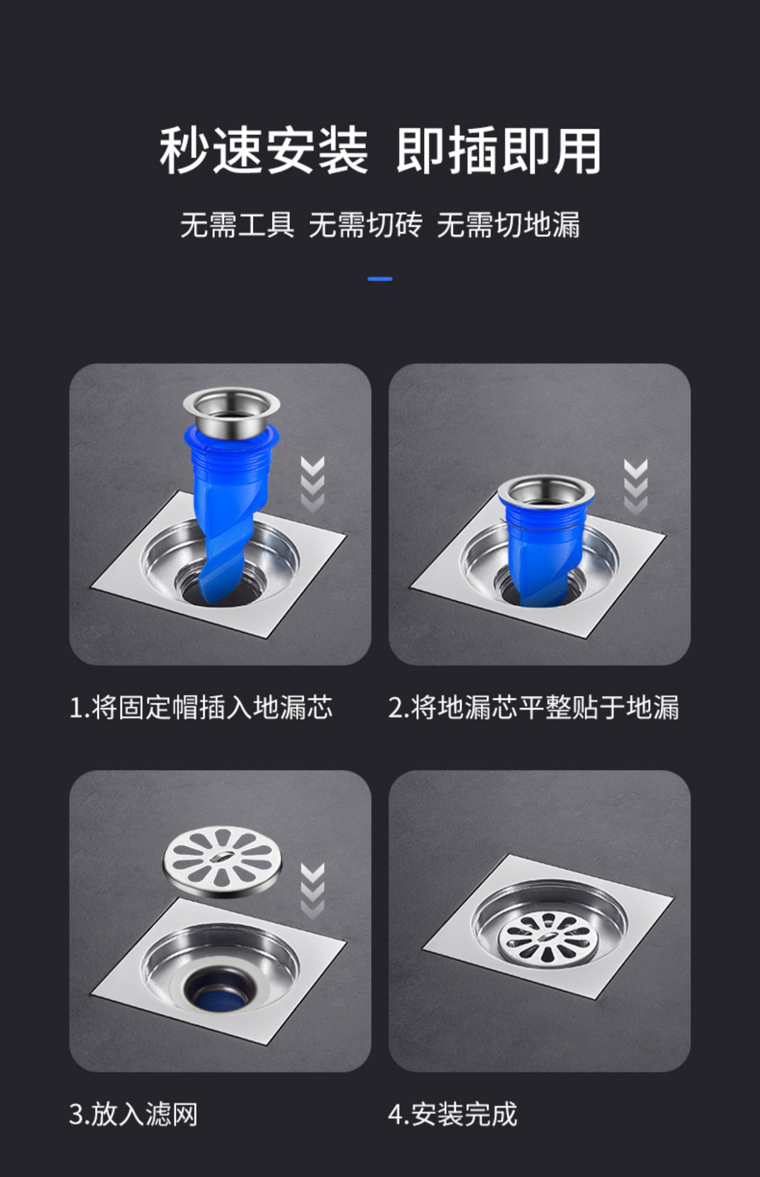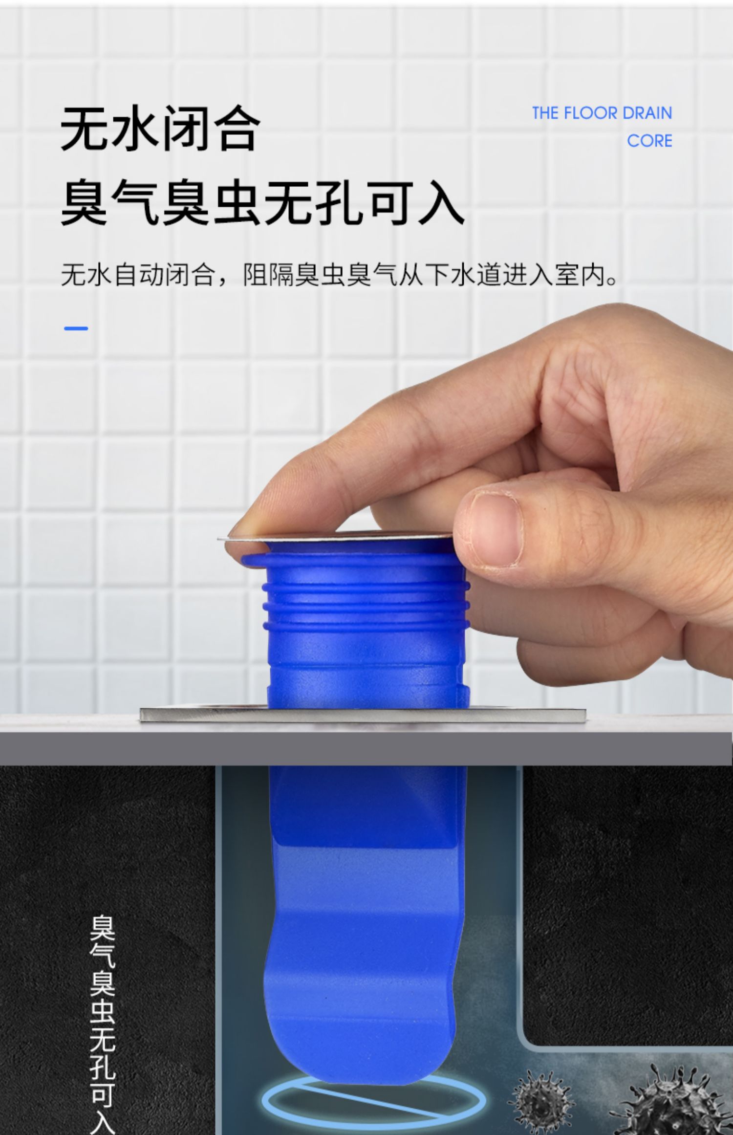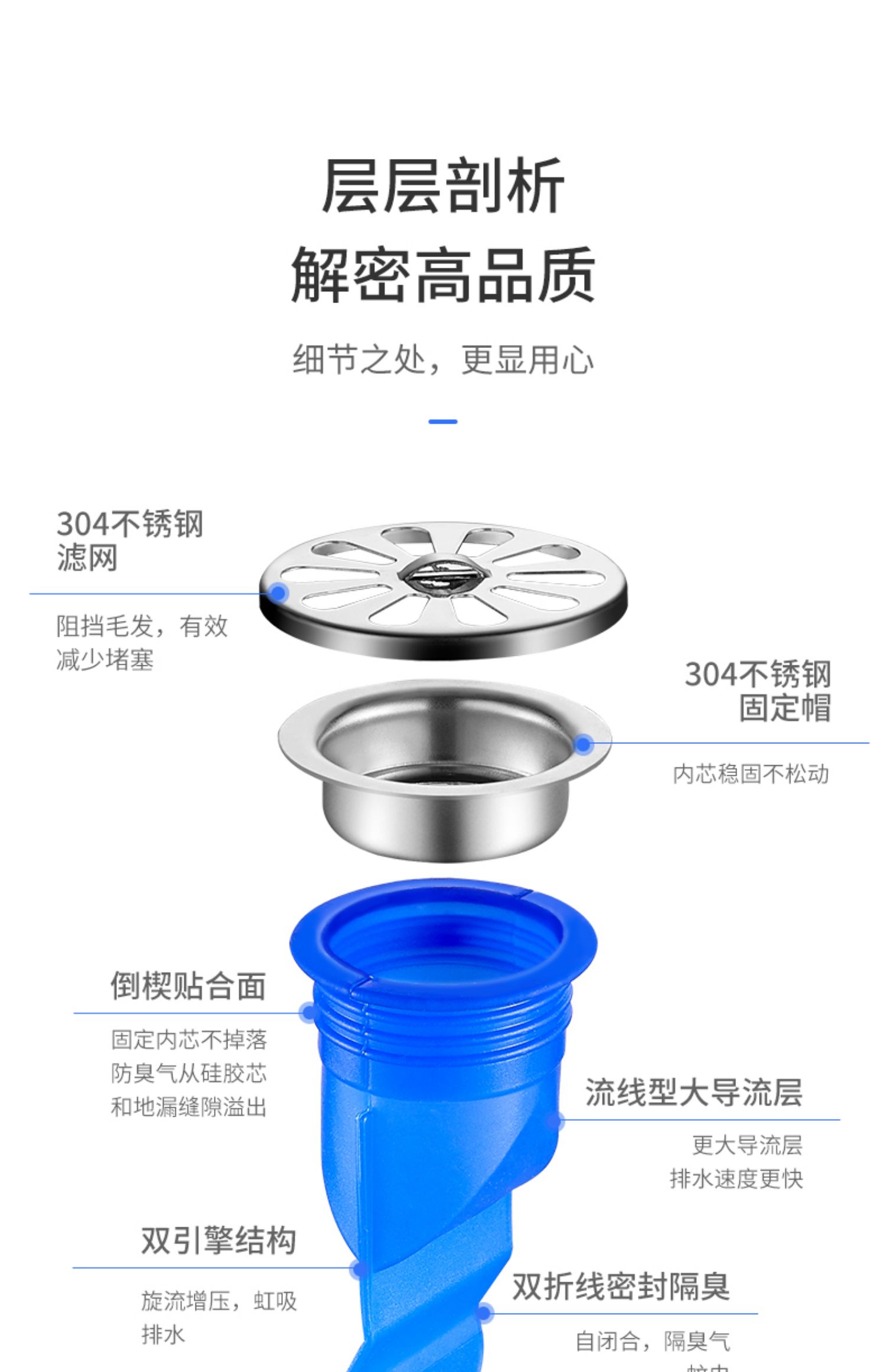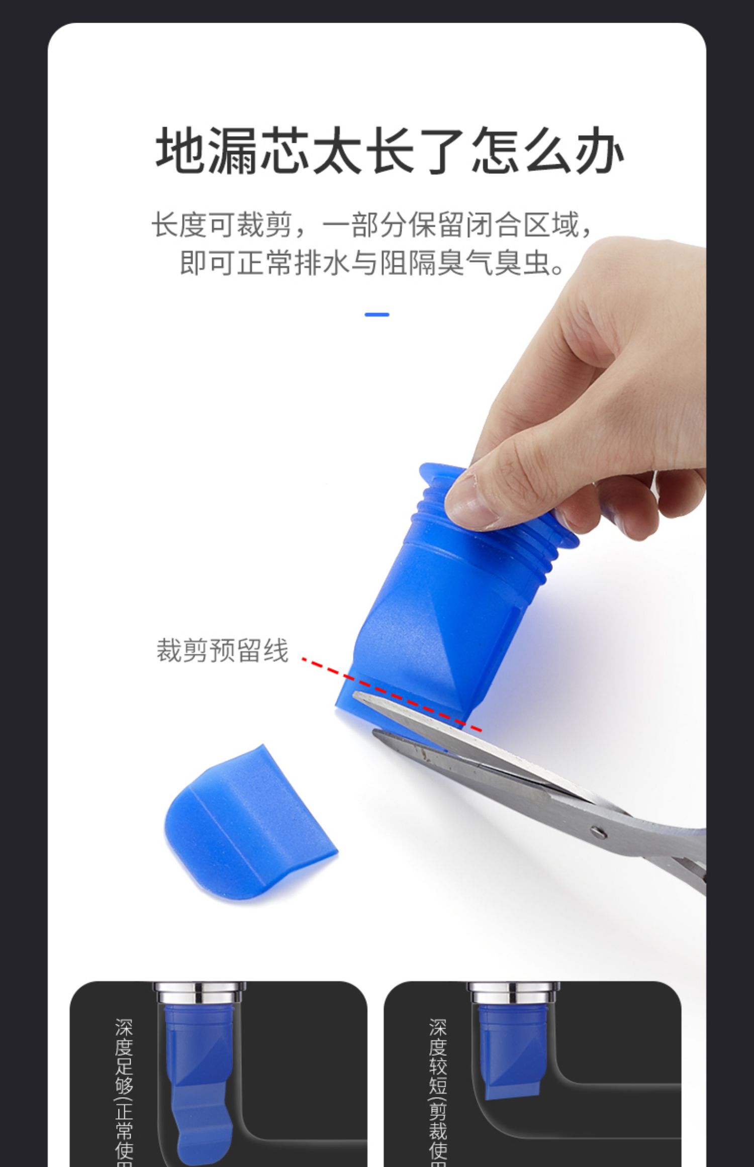 【买一送2,送变径圈和固定帽】硅胶防臭芯,外芯变径胶圈,适合常规地漏口径,外方式排水口,加强排水效率,不易堵塞,深水封防臭,即插即用。
