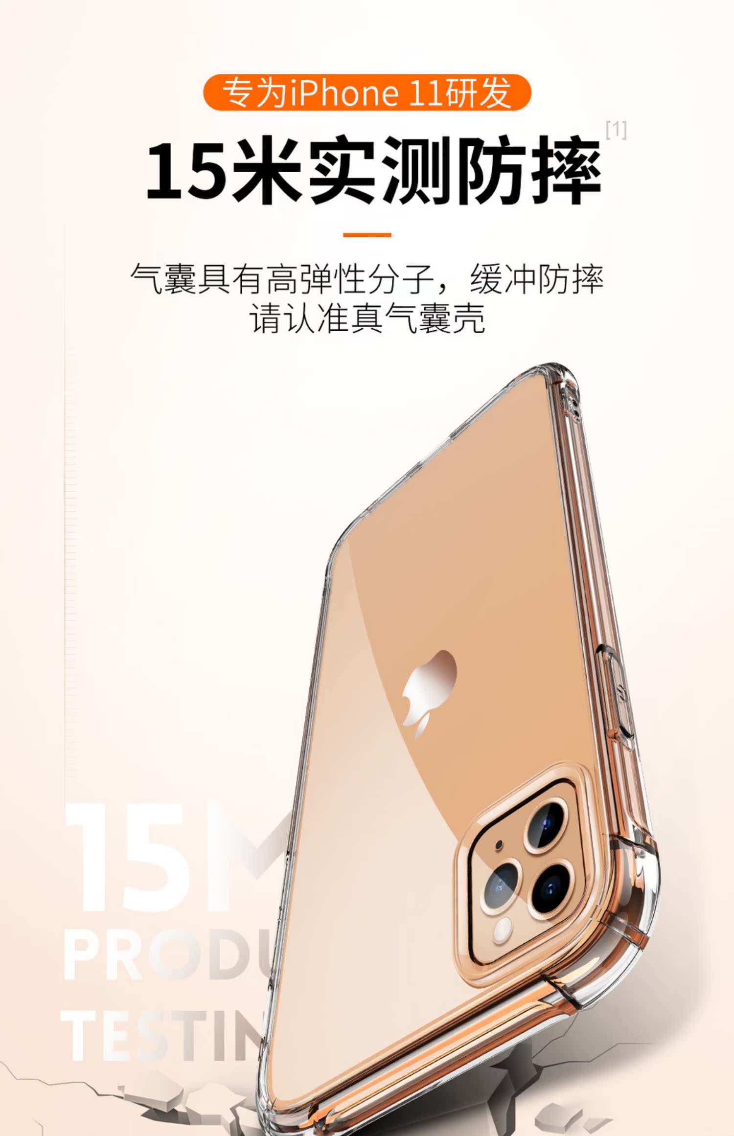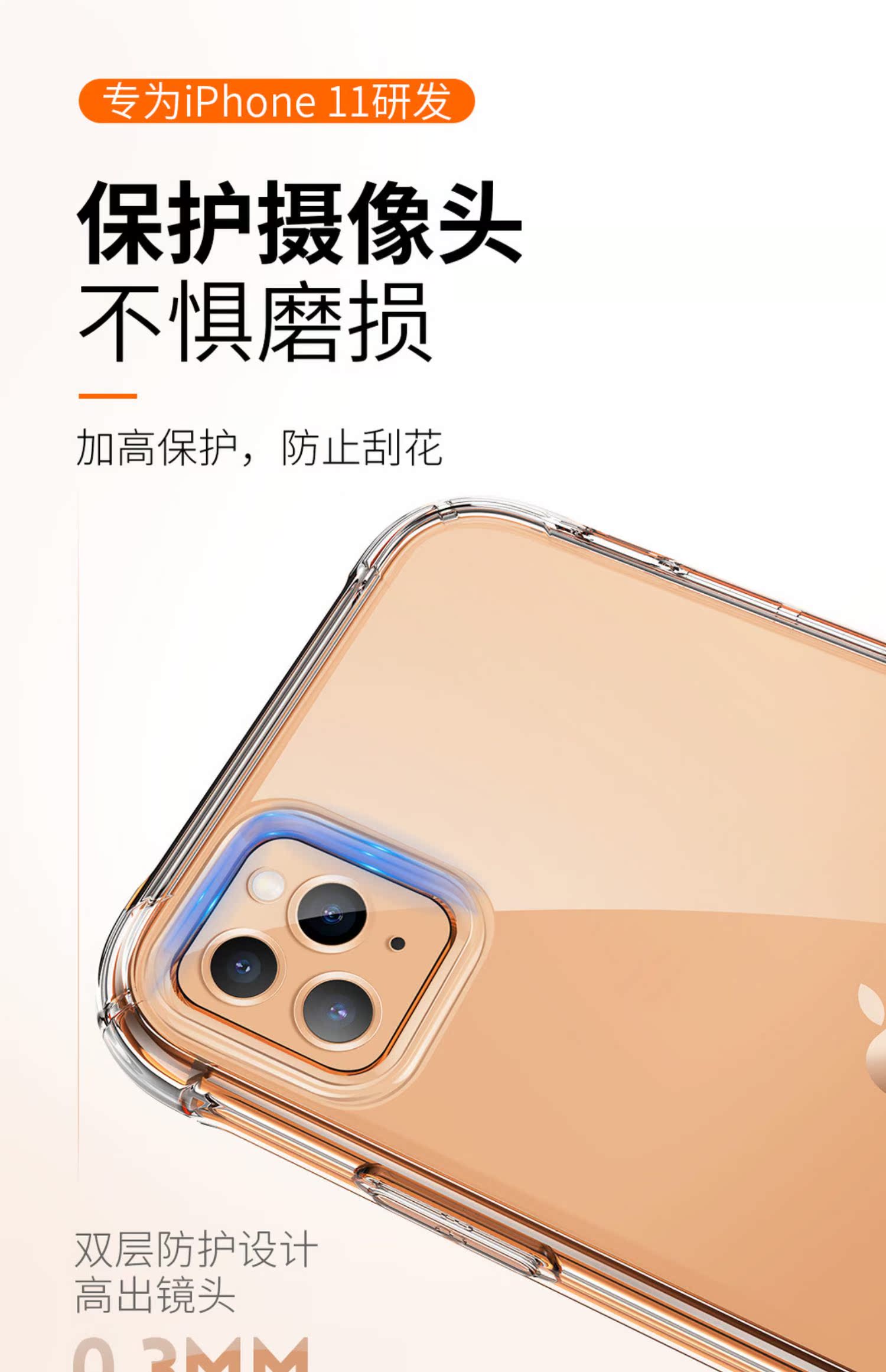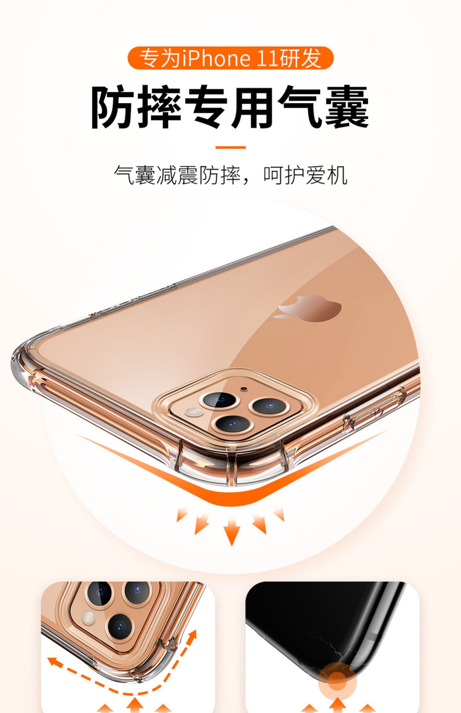 2020新款苹果系列防摔手机壳,全新升级,四角气囊防摔全包边保护屏幕犹如隐形,轻薄透明柔软,环保材质,无毒无味,高透亮,不易发黄,升级镜头保护圈,一体成型,舒适不刮手!高清透彻还原裸机美感。