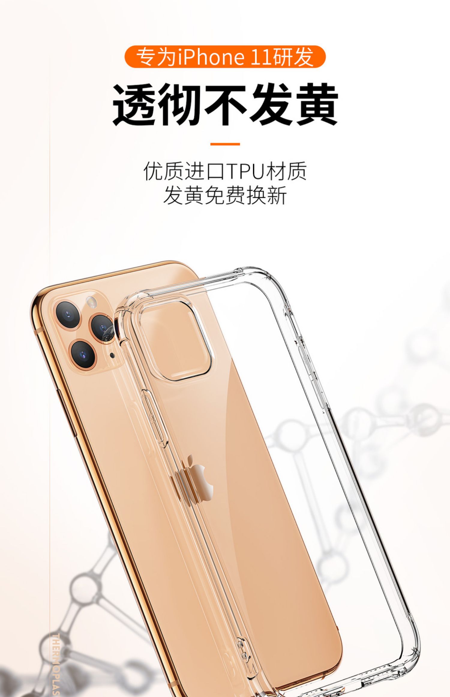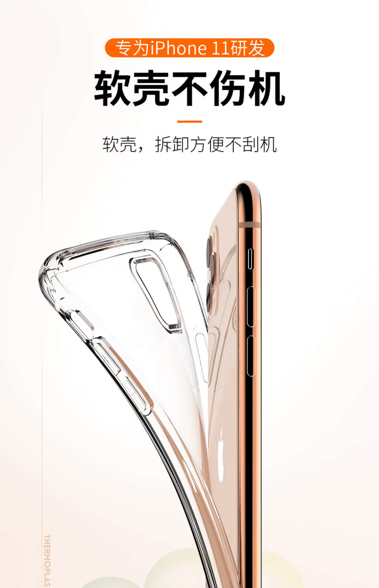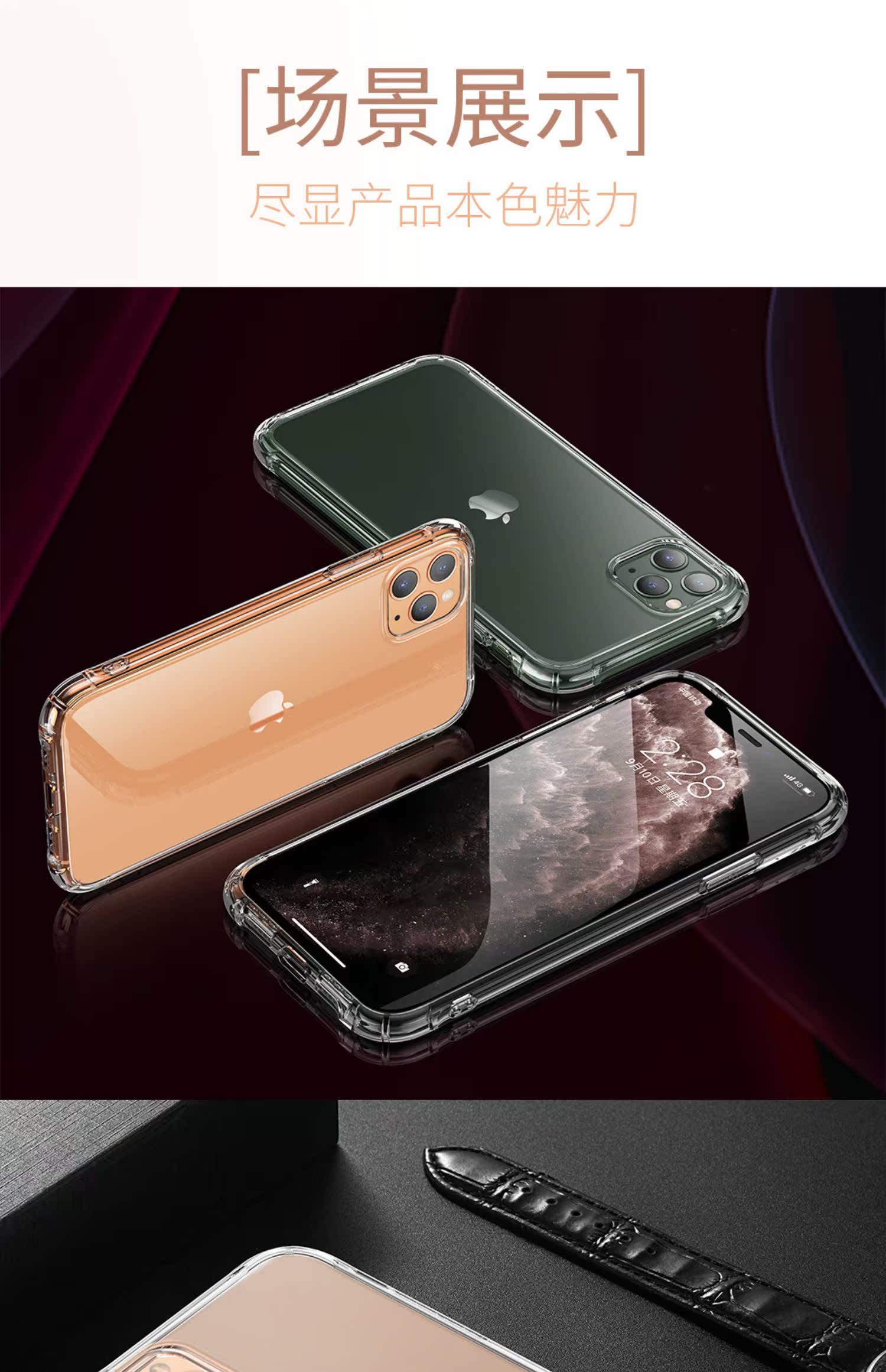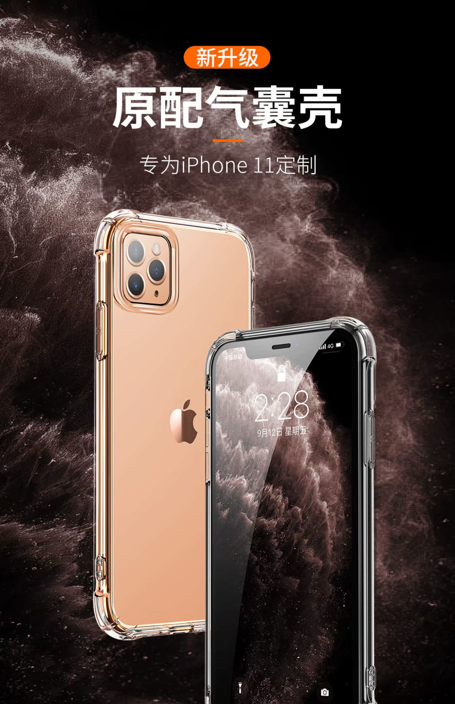 2020新款苹果系列防摔手机壳,全新升级,四角气囊防摔全包边保护屏幕犹如隐形,轻薄透明柔软,环保材质,无毒无味,高透亮,不易发黄,升级镜头保护圈,一体成型,舒适不刮手!高清透彻还原裸机美感。