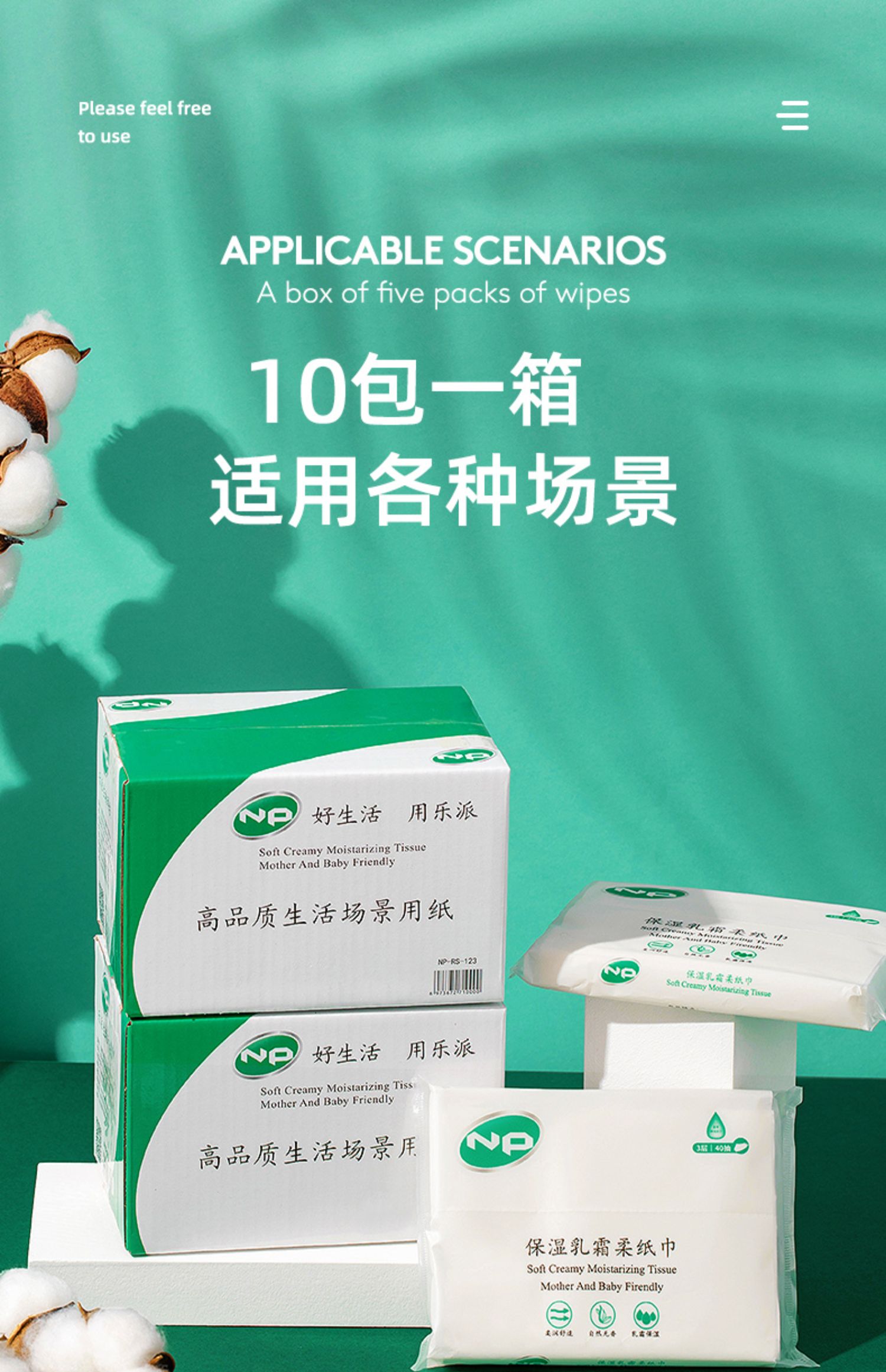 【np洗护旗舰店】单品4.9超高评分,超多复购的乐派乳霜纸,1箱10包*40抽。3层加厚,柔韧扯不断。不含荧光剂,不含漂白剂,通过SGS0刺激检测,柔润亲肤,干湿两用。只给宝宝zui好的。【正品保证】