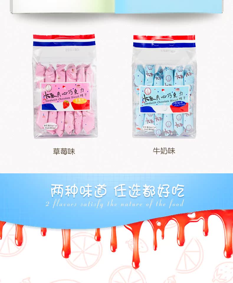 采用优质食材,巧克力夹心,草莓香草,蕴藏醇厚,香滑可口!独立小包装!零食或者早餐,随时随地乐享美味