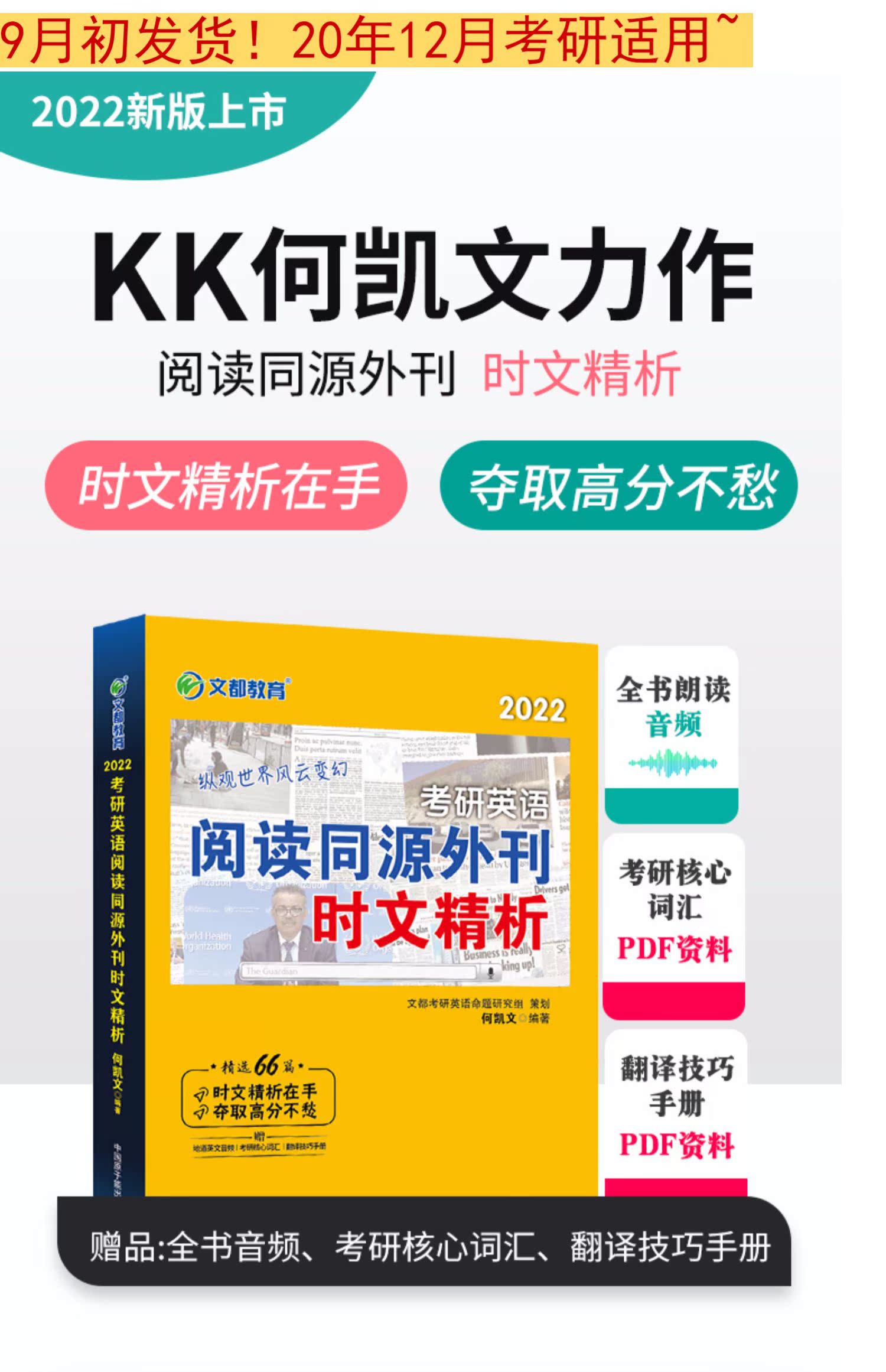 2022文都何凯文考研英语,阅读同源外刊时文精析,英语一、二通用,适用于12月份考研,可搭1575必考词汇。赠:全书音频、考研核心词汇、翻译技巧手册!