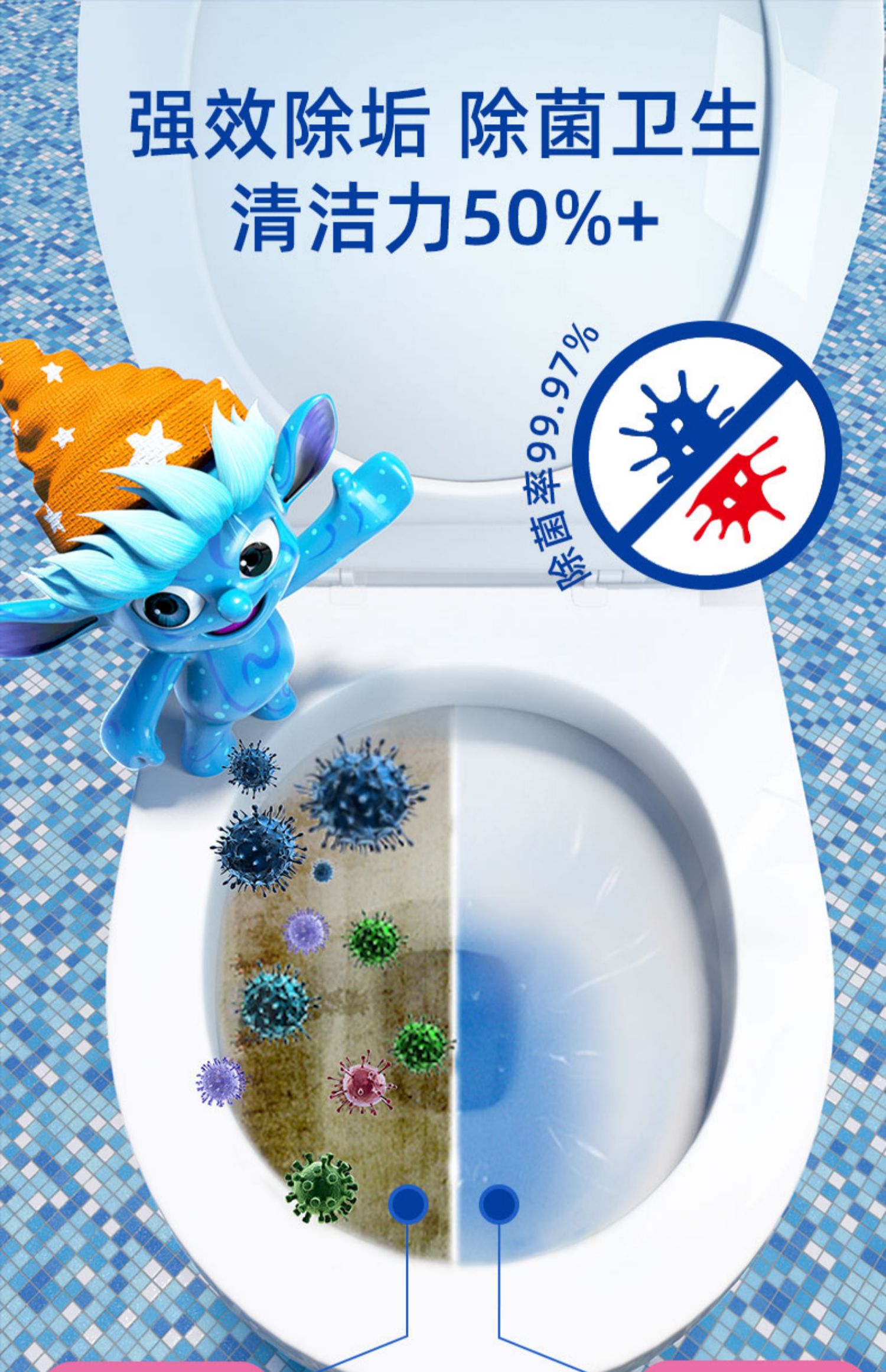 卫生间时不时有异味,尿垢难以清理?快用蓝洁精灵蓝泡泡清洁剂!除垢、除菌、除臭3效合1,清洁祛味,持久清新~1瓶可用3个月