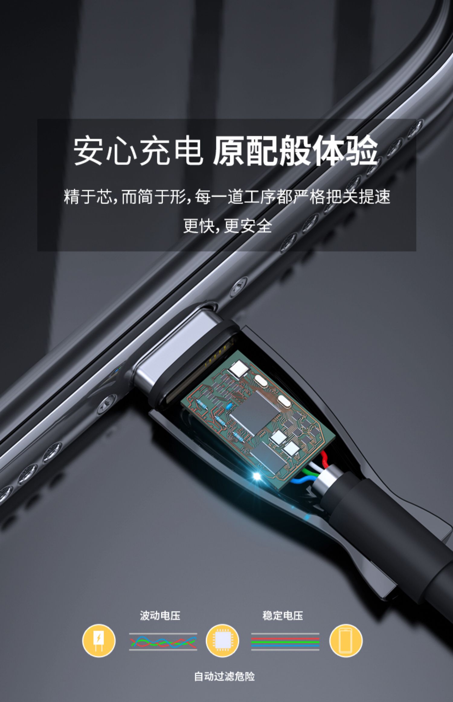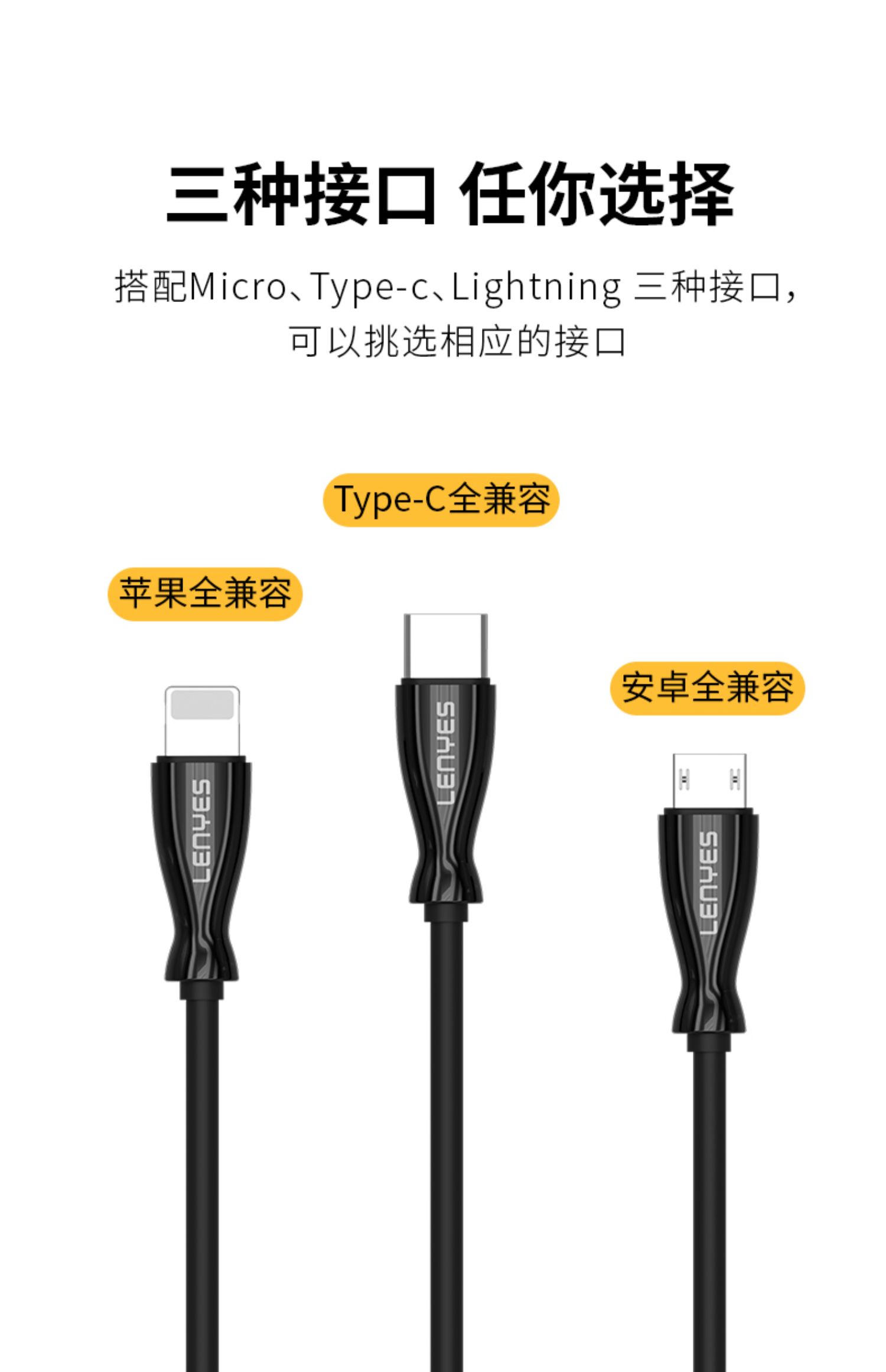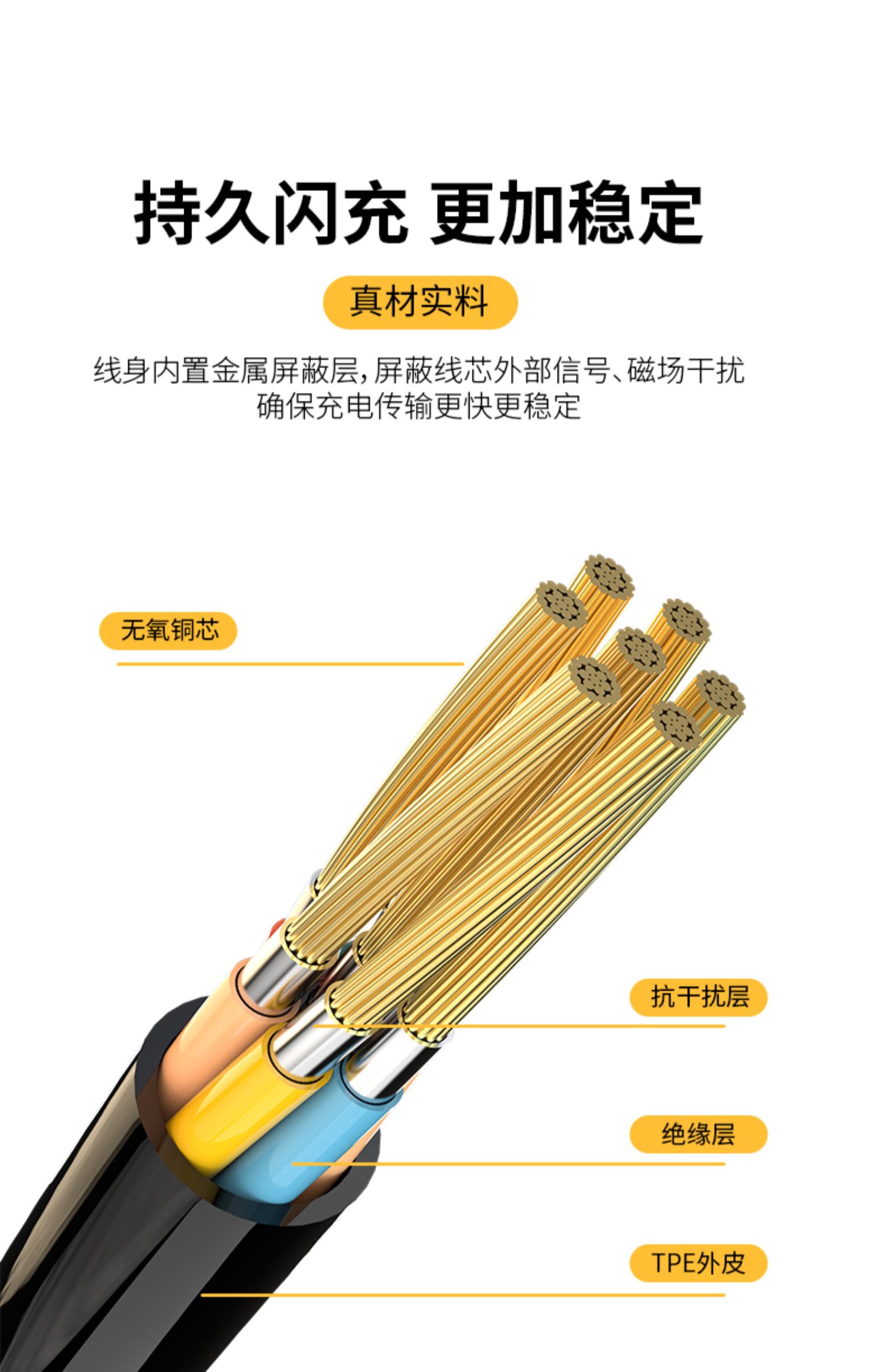 闪电快充,安全不伤机,坚韧耐用,无氧铜线芯提速40高效输出,效率大幅提升,让等待不再漫长,充电更省时!
