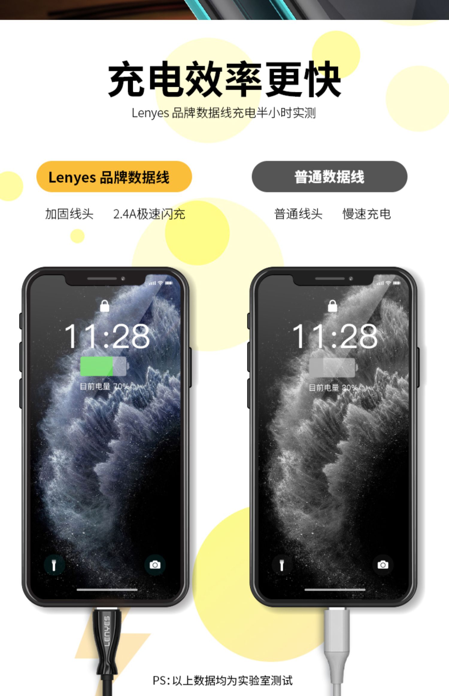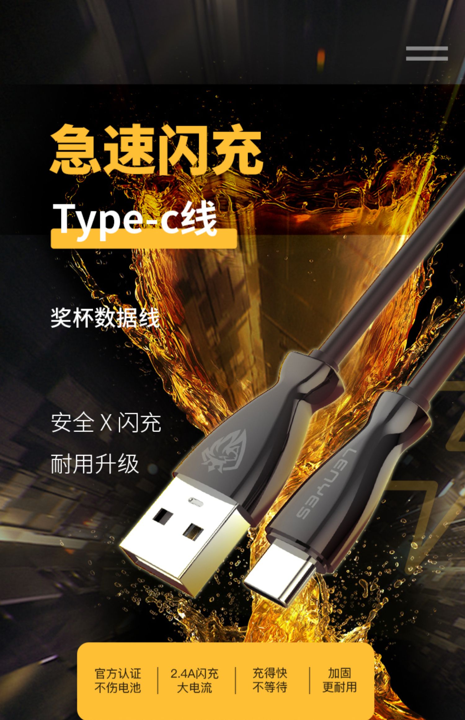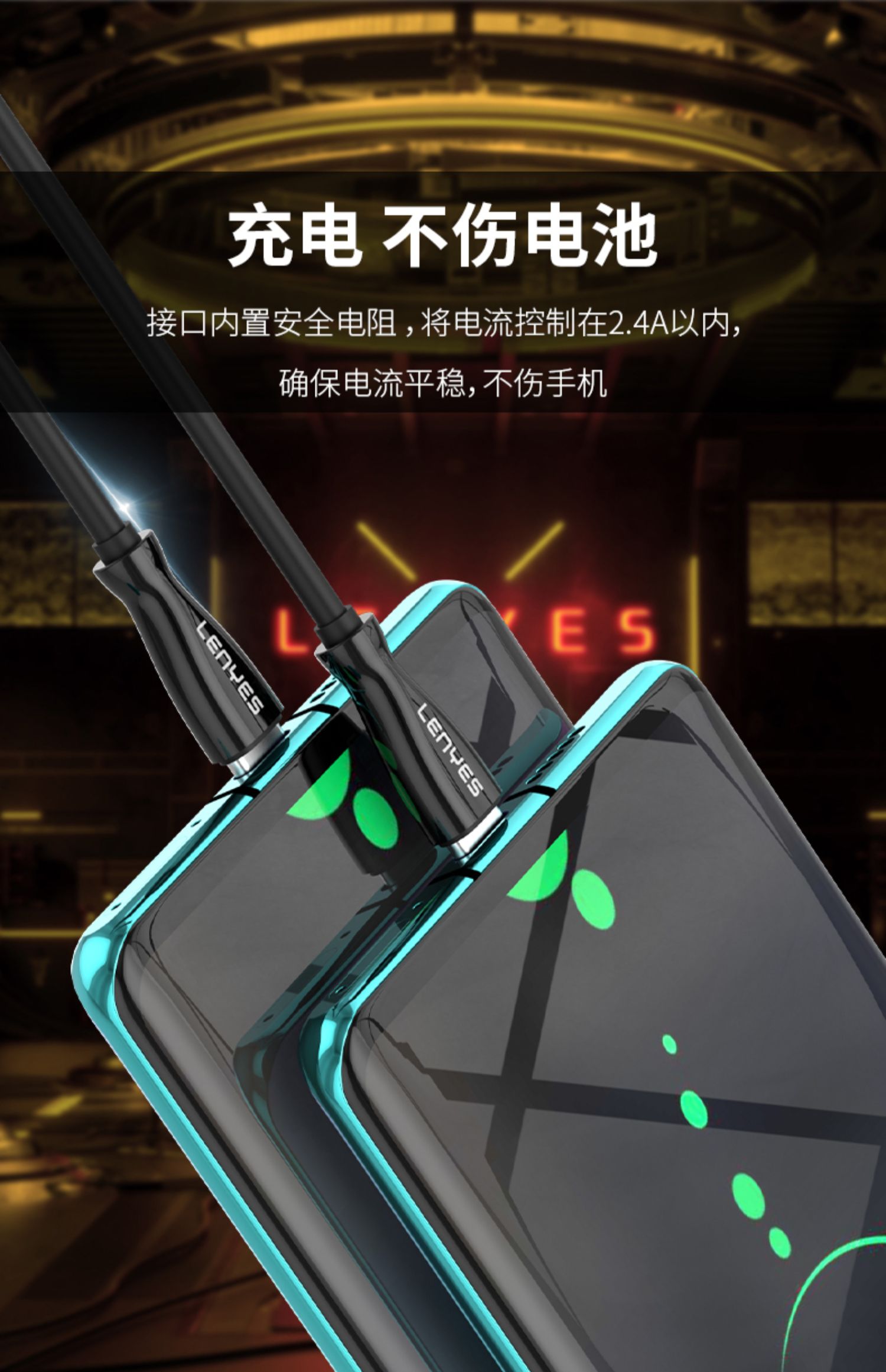 闪电快充,安全不伤机,坚韧耐用,无氧铜线芯提速40高效输出,效率大幅提升,让等待不再漫长,充电更省时!