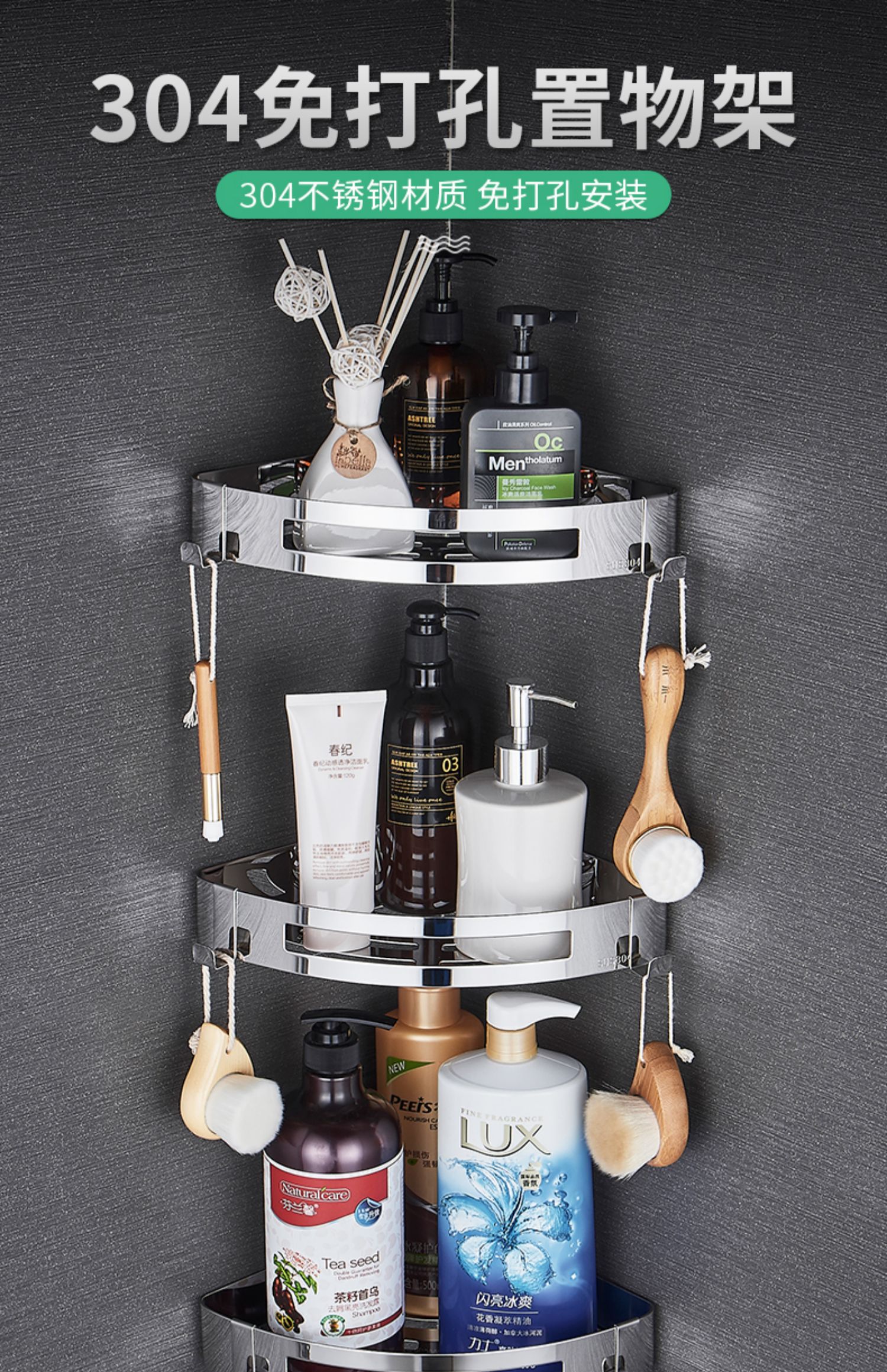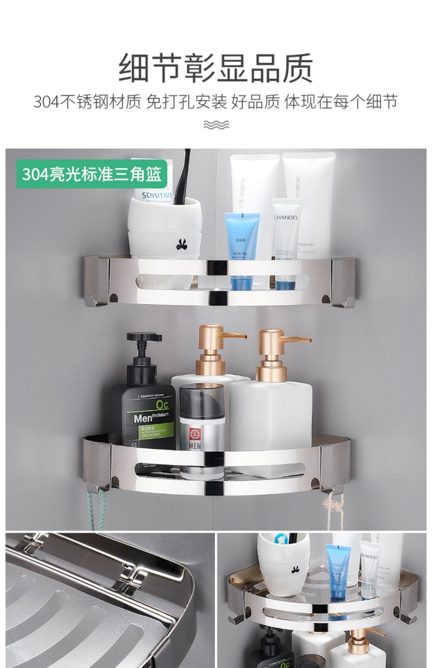 【免打孔】【掉落全赔】优惠促销活动速抢~201不锈钢浴室置物架,厕所卫生间免打孔三角篮,免打孔安装,小身体大容量,让你的井然有序~【增运费险】
