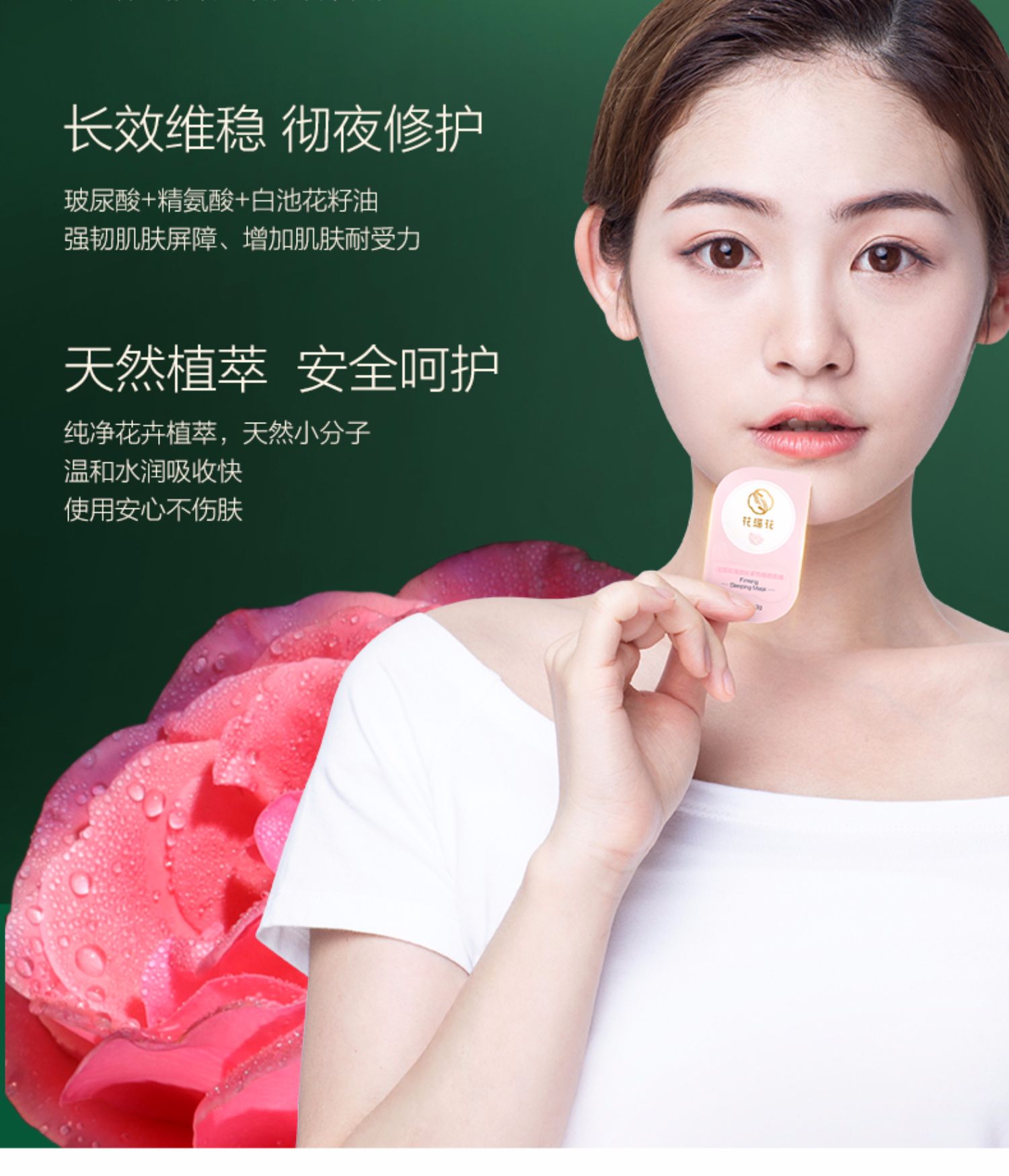 夜间修护,恢复稳定好肌肤,法国玫瑰睡眠面膜,及时水润,天然植萃,安全呵护!