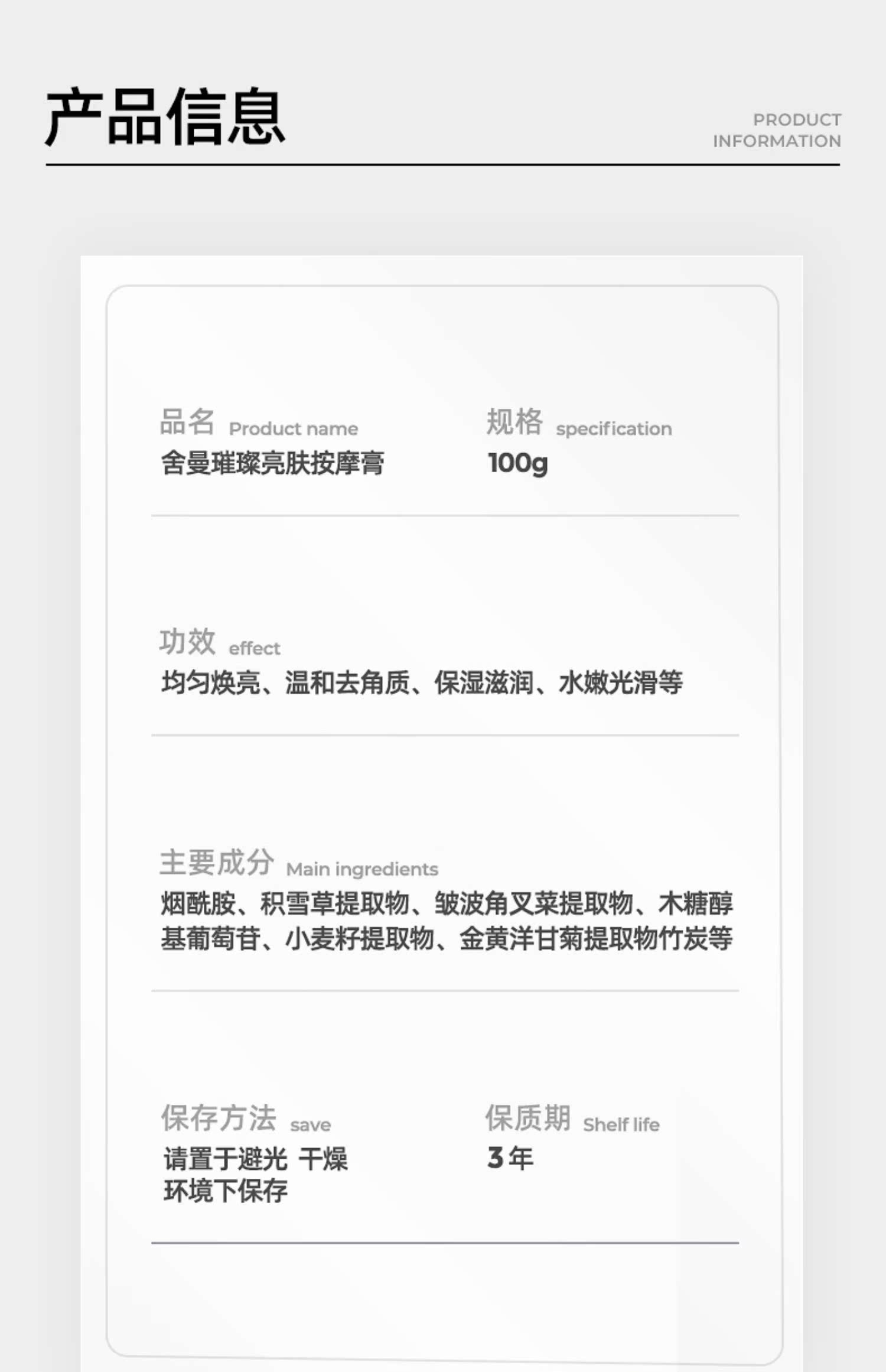 上下线美容院都在用!舍曼按摩膏,深层清洁,去角质,滋养嫩滑,天然植物成分,温和不刺激,女神必备,按摩无痛感,轻松还你嫩白肌肤!