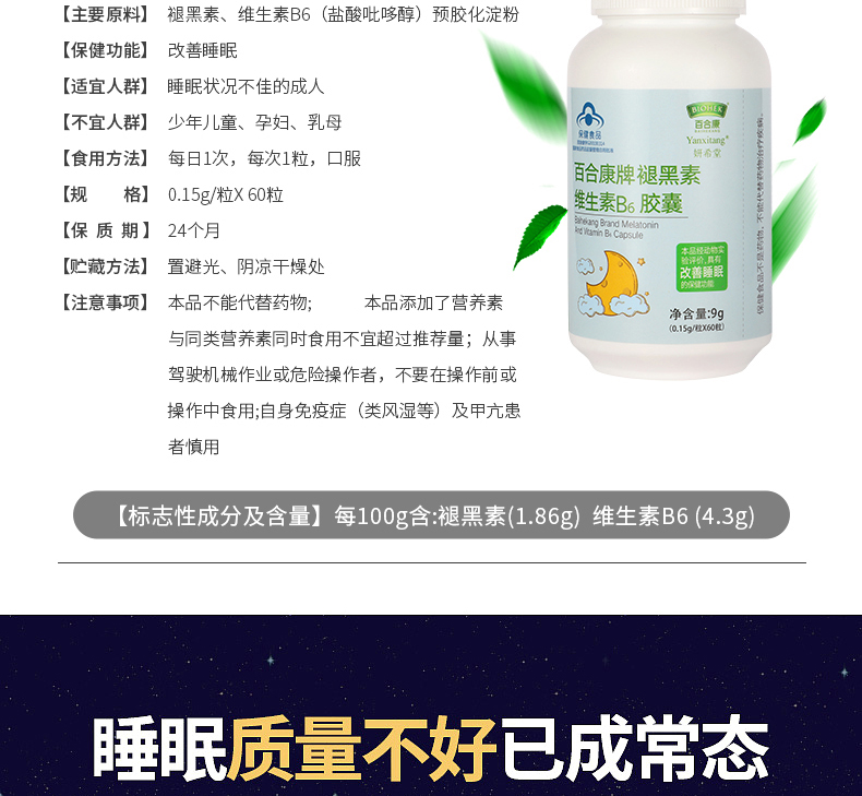 百合康!60片褪黑素维生素b6