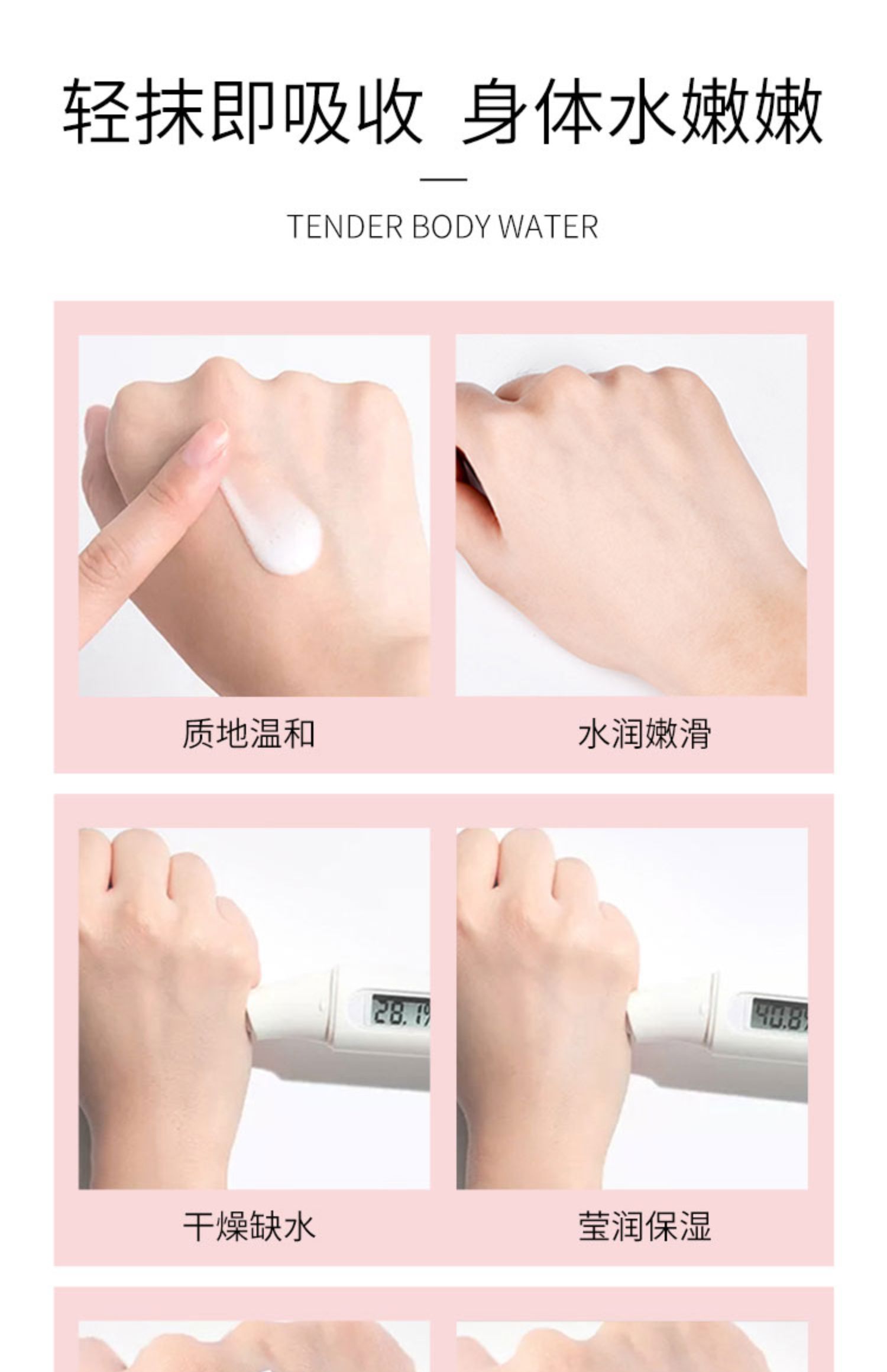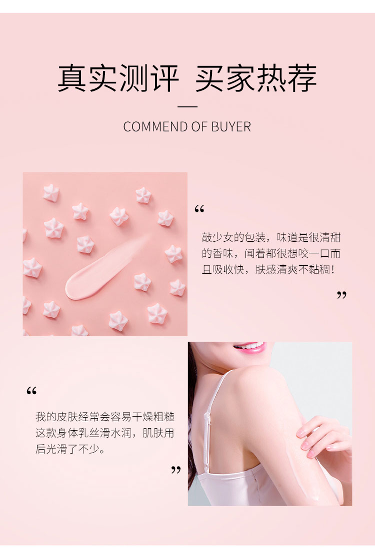 香体,补水,滋养肌肤!第二件0元!粉色包装瓶少女感,小巧精致,涂在身上清爽不油腻,保湿效果好,颜值高,还实惠,最重要是好用!