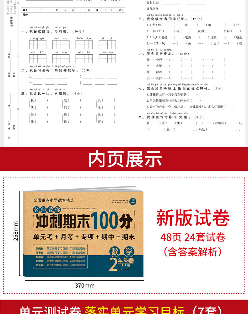 【新华书店正版】冲刺期末100分语文数学2本全套,2020新版二年级上册试卷,小学语文单元测试