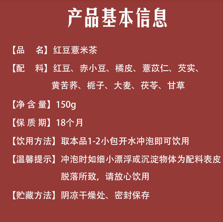 【8.8/袋150g超值装】真材实料,严选18种配料,去除湿热,排毒养颜,喝出轻盈体态!!红豆+薏米,祛湿