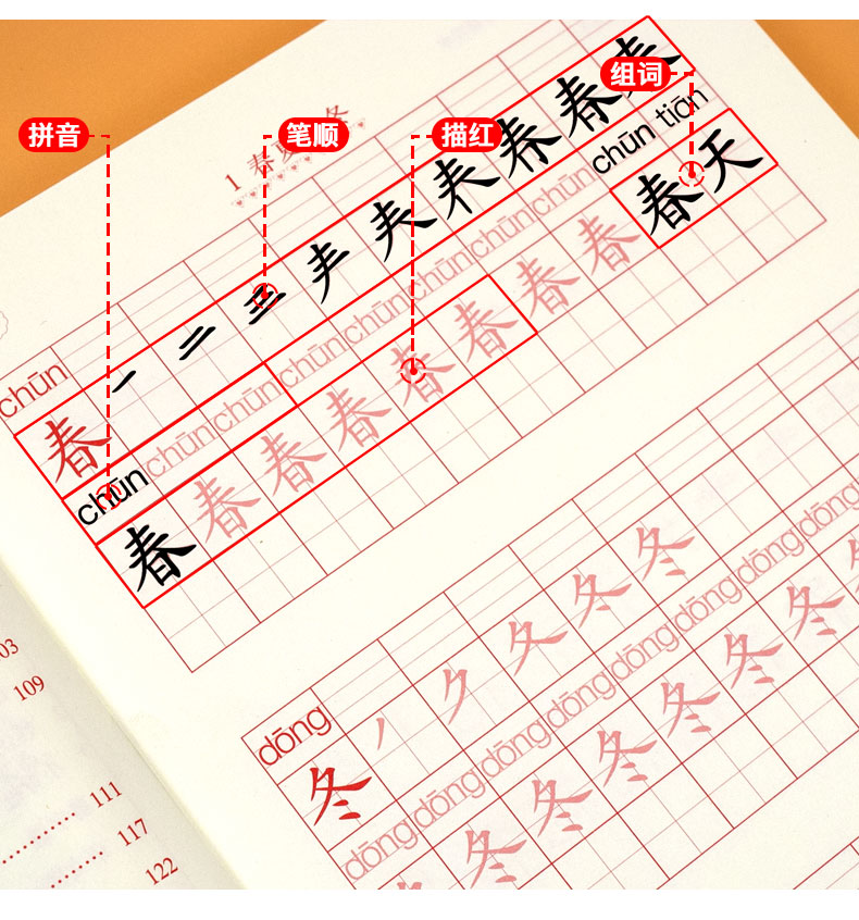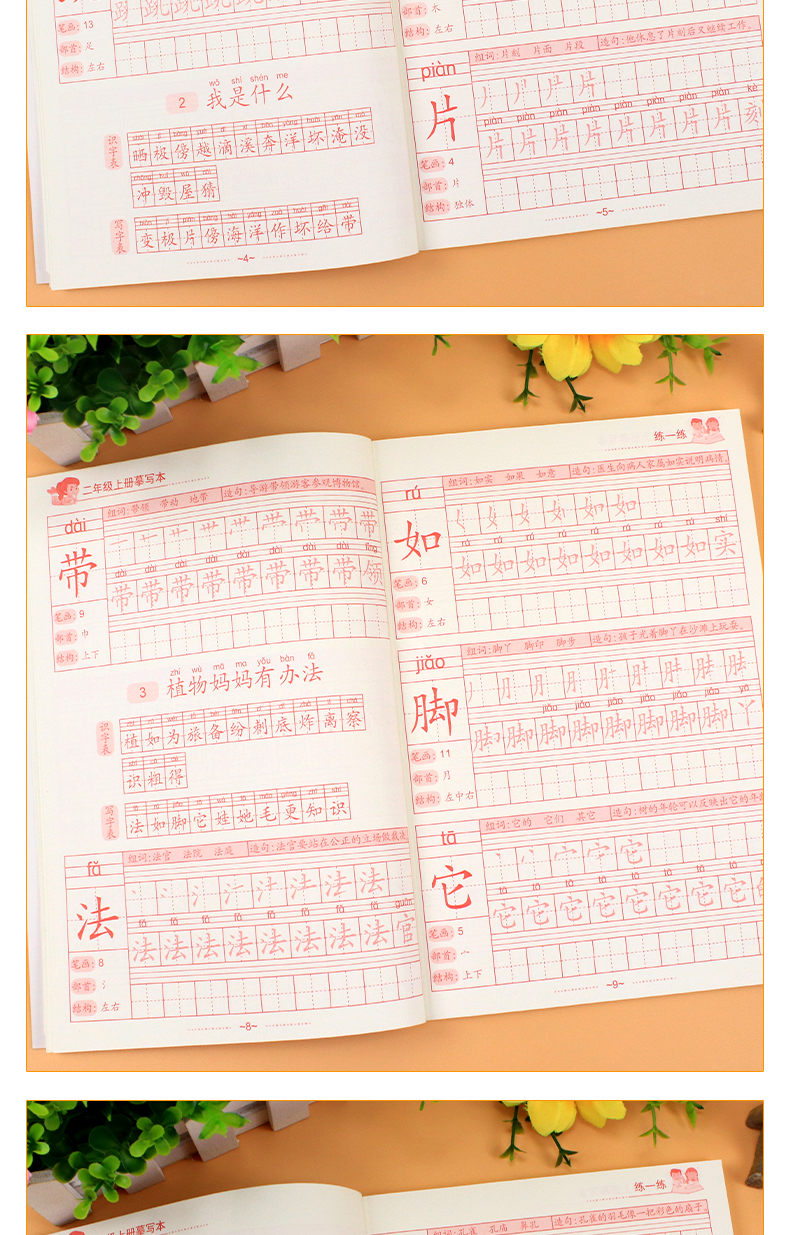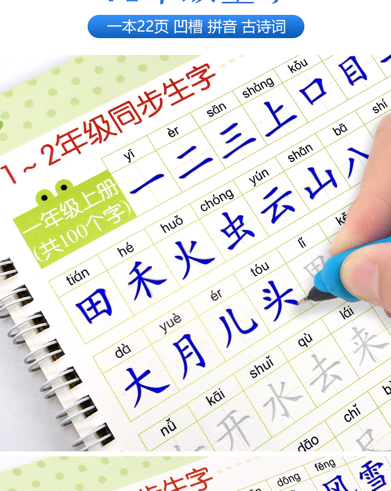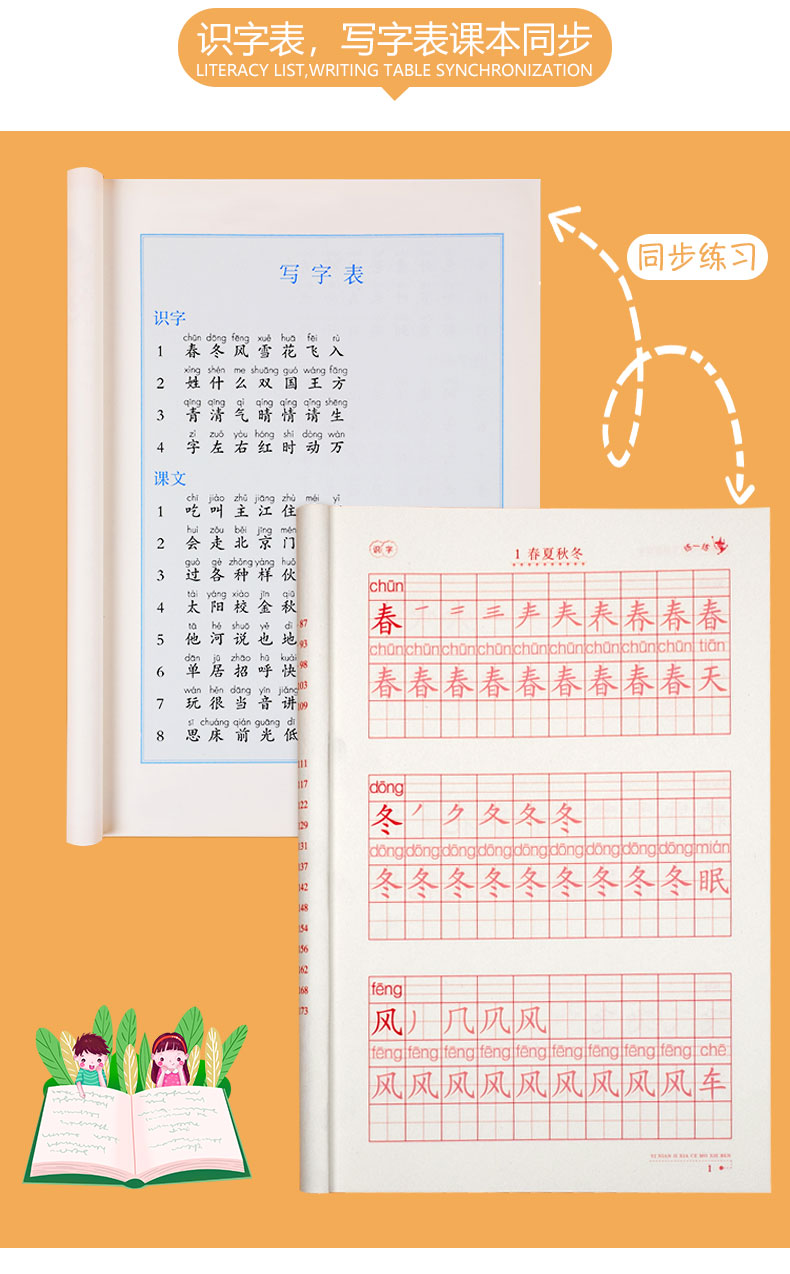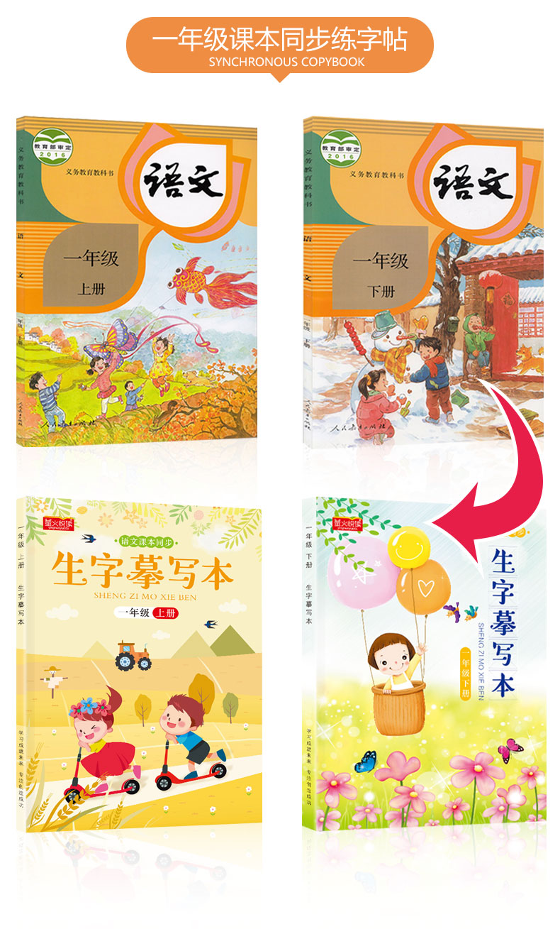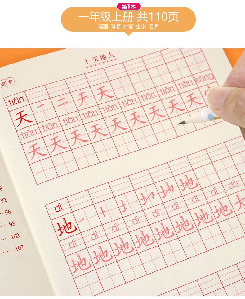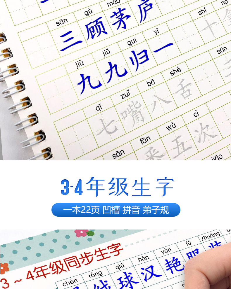 送【笔杆,握笔器,10支笔芯】快给孩子囤上,一至四年级练字帖!同步课本写字表,从拼音,笔顺,到组词等书写顺序,养成孩子写字好习惯!活动上下册带凹槽任选仅5.8元,抢!
