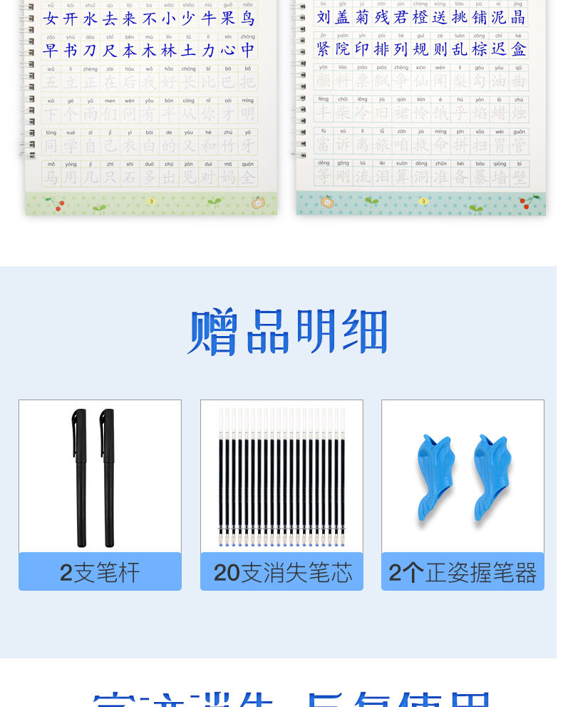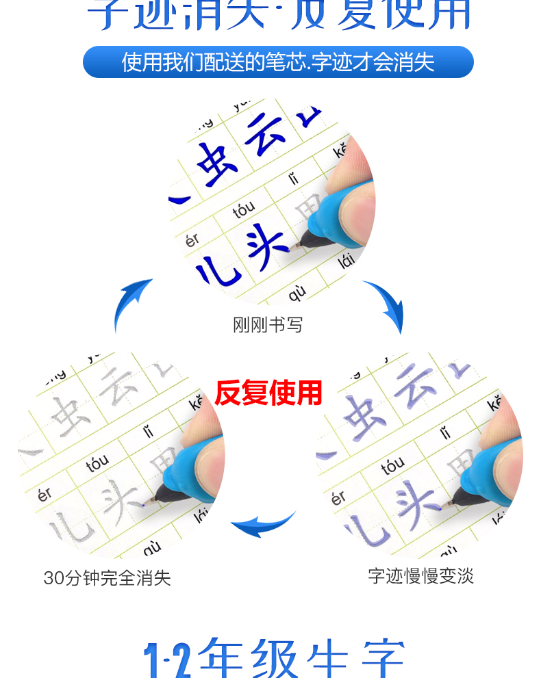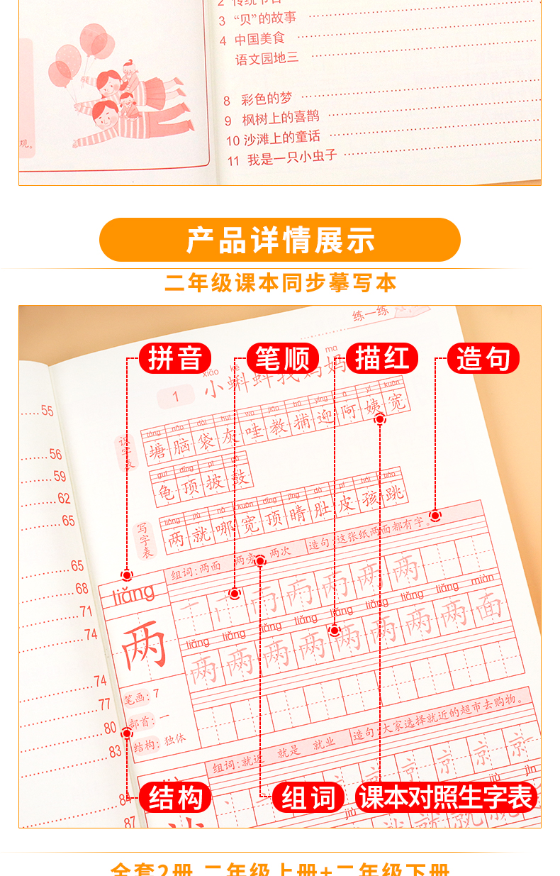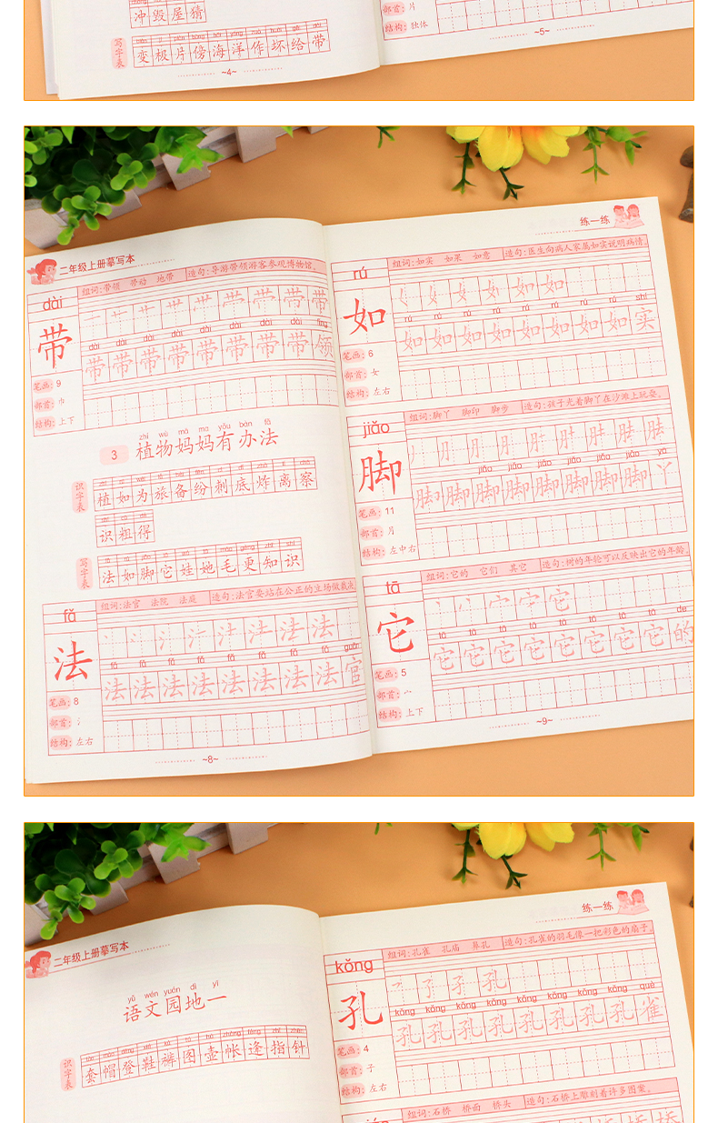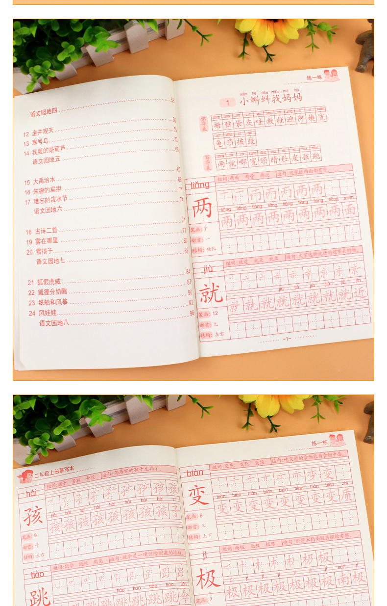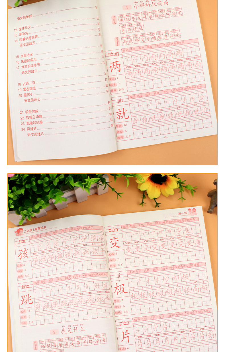 送【笔杆,握笔器,10支笔芯】快给孩子囤上,一至四年级练字帖!同步课本写字表,从拼音,笔顺,到组词等书写顺序,养成孩子写字好习惯!活动上下册带凹槽任选仅5.8元,抢!
