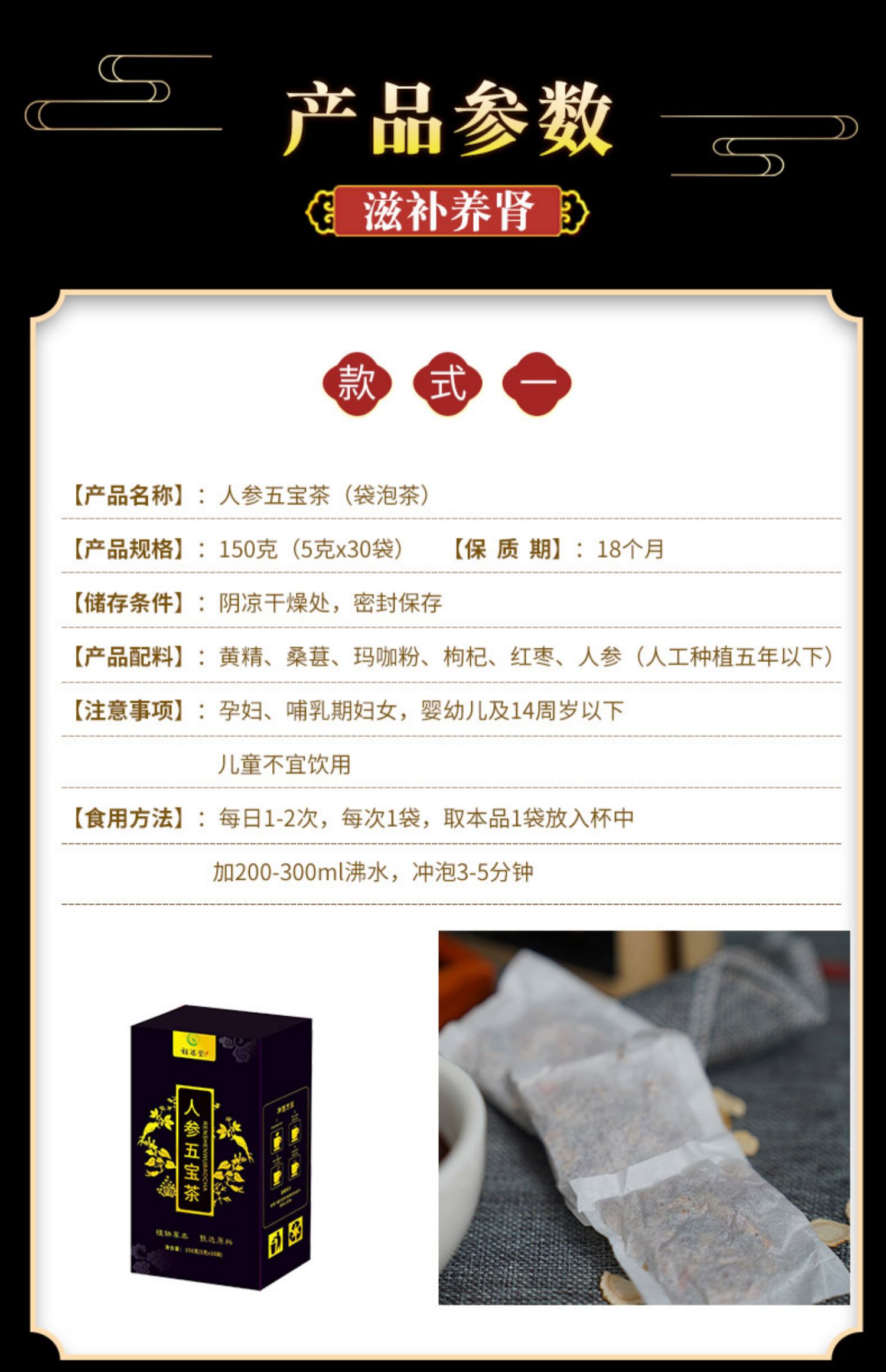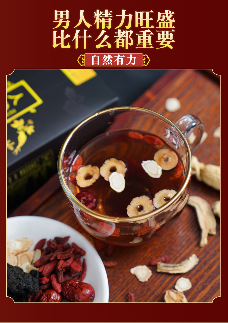 【立减2.4元】30包150克人参黄精枸杞茶,草本原料,科学配比,补肾护肝,壮阳固精,是一种对男性非常滋补的养身茶,独立小茶袋,轻松冲泡喝,喝出好精力!【赠运费险】