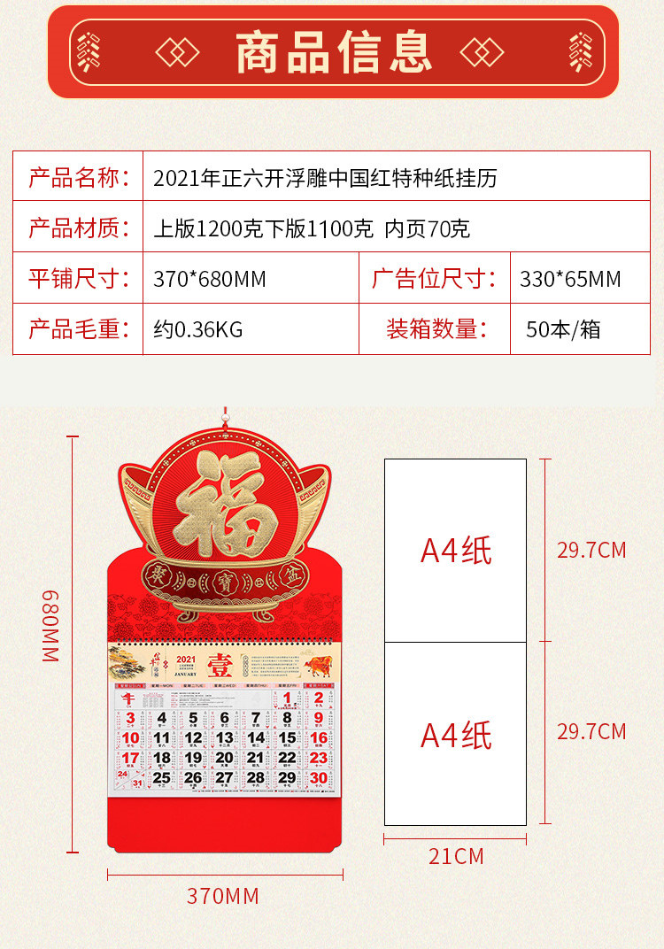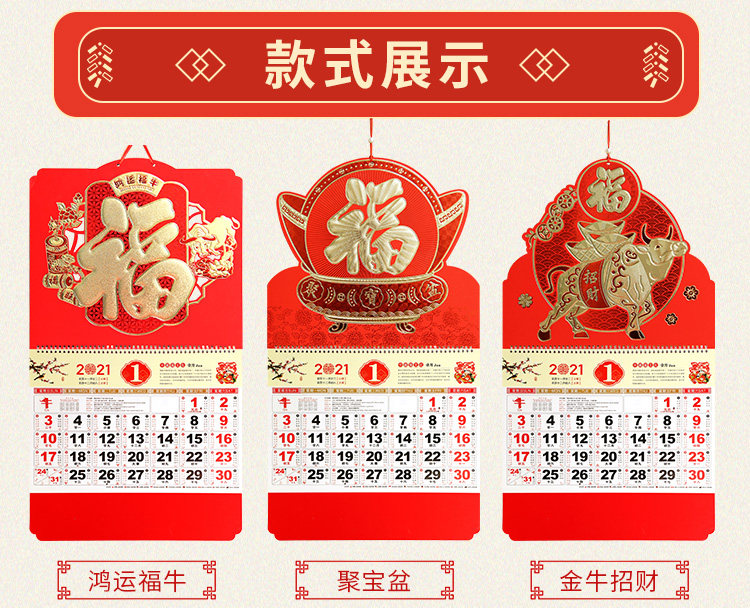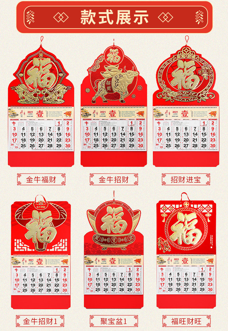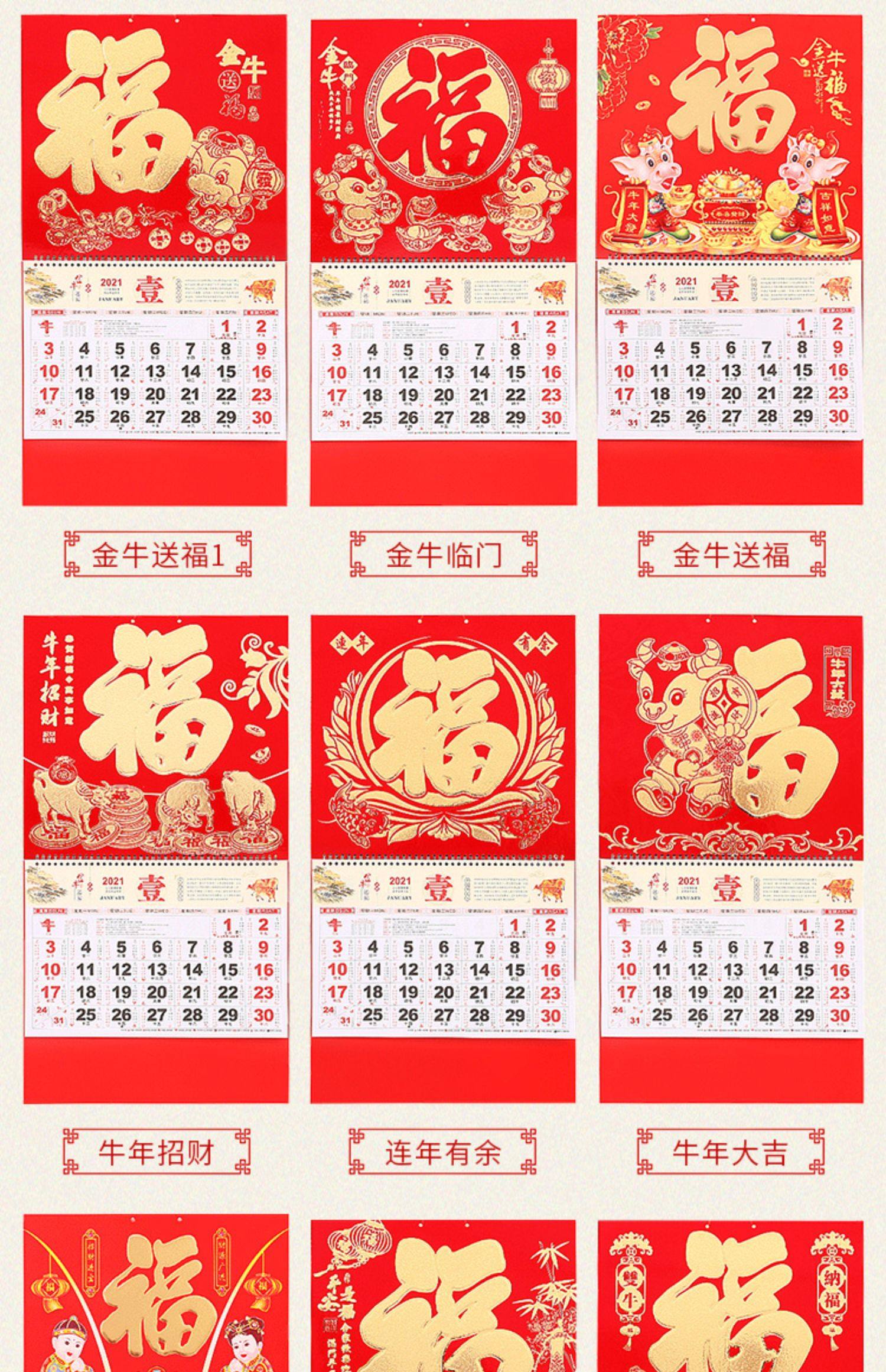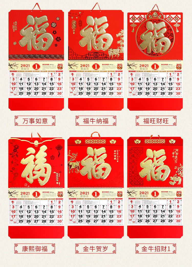 2021年牛年福字定制挂历