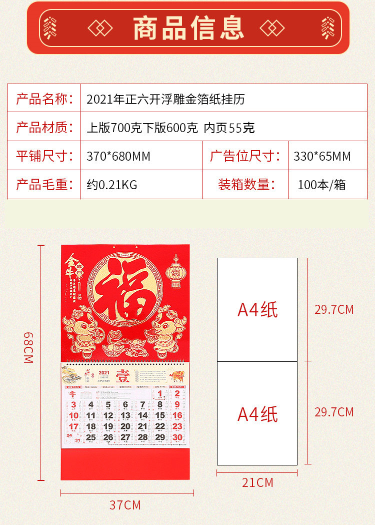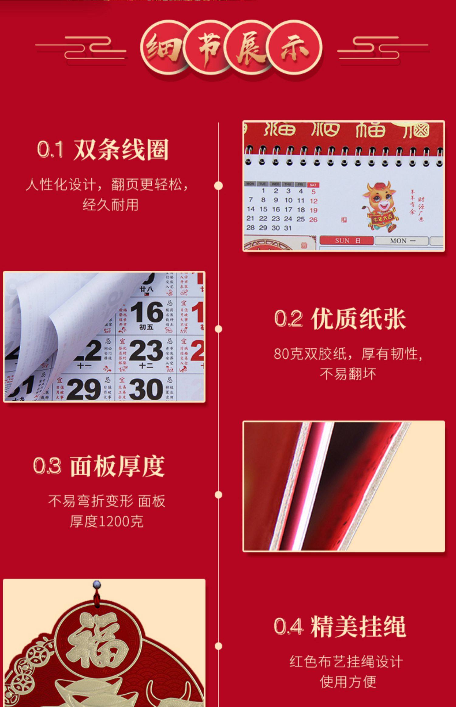 【2021年牛年挂历】吊牌月历,正六开金箔磨砂工艺,环保油墨,质量保证,颠覆价格,颜色鲜艳文字清晰,款式精美,牛年福气冲天!!速度抢!手慢无!!
