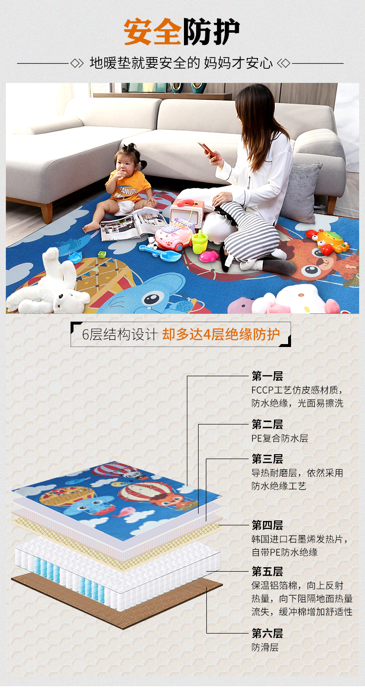 韩国进口石墨烯地暖垫,碳晶加热快速升温,均匀发热保暖,安全又可靠,节能省电无辐射,无异味不干燥,随心控制温度,使用更舒适,精心工艺,用心制造,不占空间。哪里想热就放哪里,老人小孩孕妇必备。