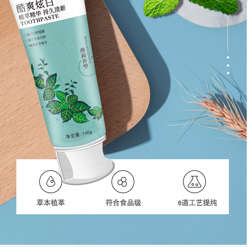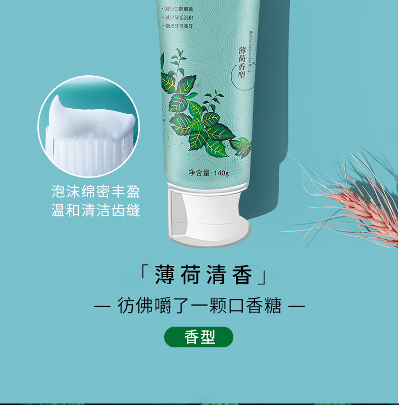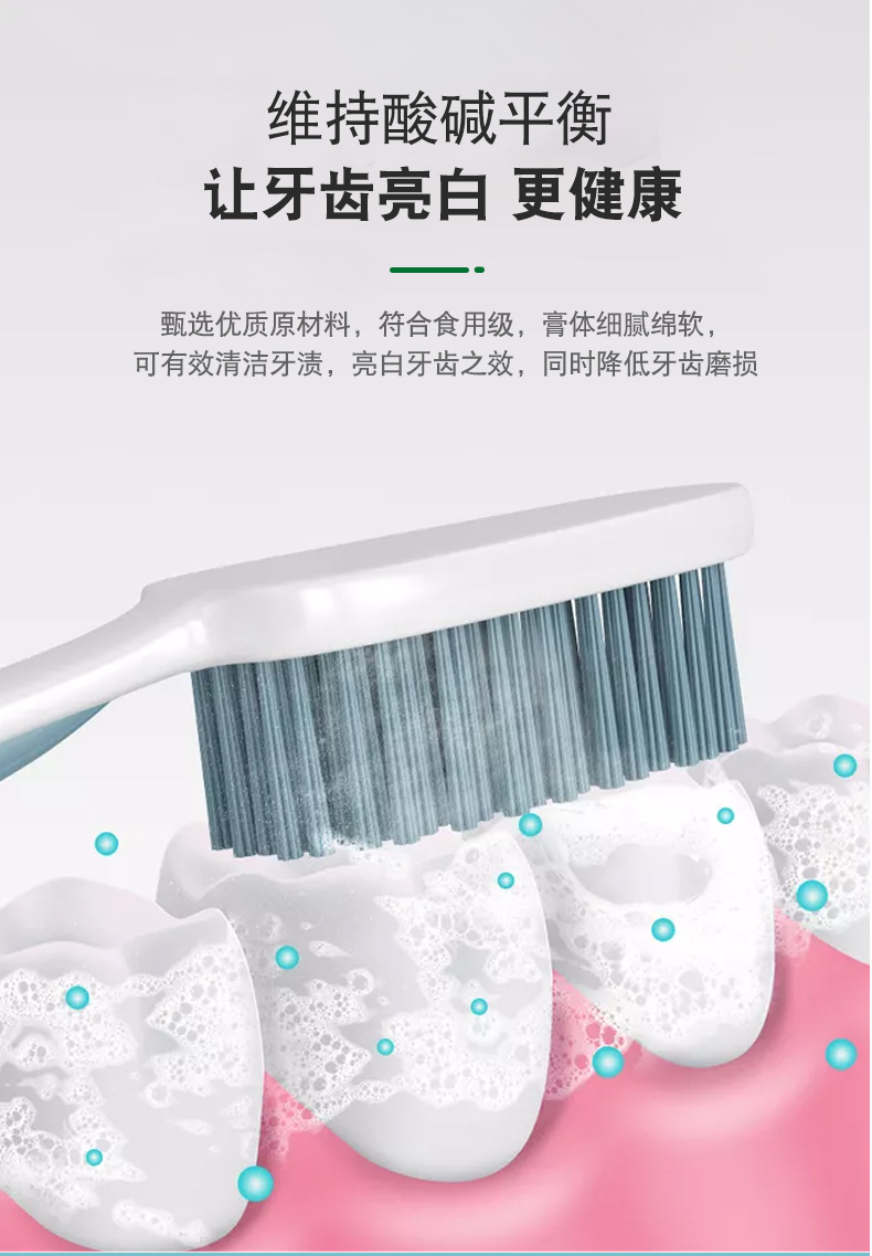 海盐与小苏打双重洁齿,帮助减少牙菌斑,调节口腔酸碱平衡,护齿健龈,牙齿自然白,拒绝大黄牙。